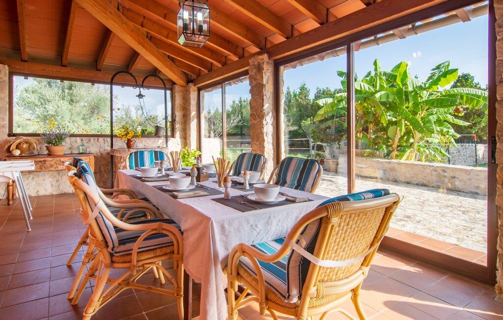 I vil opleve en sand charmeoffensiv, når I skal indrette dette feriehus. Naturstensfliser, fint træ og hvide vægge afspejler mallorcinsk tradition og samtidig en tidløs, rustik stil. Vinterhaven, egnet til alle årstider, med et langbord, vinrød glaseret væg og terracotta fliser giver direkte adgang til det fuldt udstyrede landhus køkken med træmøbler. Samtidig giver den lyse spisestue med talrige vinduespartier også adgang til den hyggelige, klimatiserede pejsestue med åbent galleri. Sidstnævnte tilbyder ekstra opbevaringsplads og et afslapningsområde. Apropos at sove - bag stuen finder I det første soveværelse med to enkeltsenge. Mellem dette og et andet soveværelse er der en gang og et moderne badeværelse med glasparti. Fra dette afslapningsrum fører en trappe til øverste etage til et tredje soveværelse med dobbeltseng med eget badeværelse med bruseniche. Nostalgiske detaljer gør dette charmerende feriehus for op til seks personer til et fantastisk sted med natur, kystflair og attraktionerne på et populært turiststed - kompromisløst afslappende!
