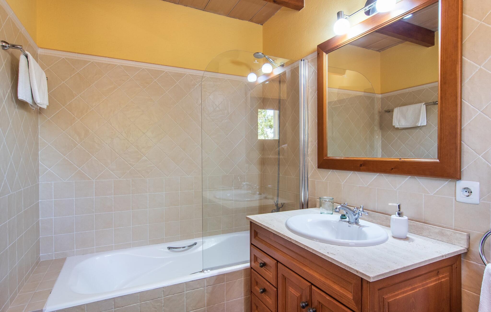 Hvis I leder efter en ideel base for at udforske øen og dens strande som en familie eller en lille gruppe, er feriehuset "Ca Na Neus Pollença" bestemt et godt valg med sit attraktive pris-ydelsesforhold. Udearealet i det smukke naturstenshus er meget velholdt, mens en have med middelhavsplanter og en smuk græsplæne omkranser huset. Den rummelige overdækkede terrasse ved siden af huset er et hyggeligt sted i skyggen og er udstyret med spiseplads og en hyggelig lille lounge. Lige foran den inviterer en rummelig solterrasse og en vidunderlig, lavvandet pool med jacuzzi-funktion til solbadning. Feriehuset har også udendørs bruser, murstensgrill og bordtennisbord. Det indre af feriehuset i stueetagen byder gæsterne velkommen med en venlig, åben opholdsstue, hvor et fuldt udstyret køkken, en spiseplads og den hyggelige stue flyder rumligt ind i hinanden. Det skrå tag med synlige træbjælker og en behagelig udsmykning i landlig stil sikrer en hjemlig følelse. De to komfortable soveområder er udstyret med aircondition og kan nemt mørklægges med rulleskodder. Derudover har begge soveværelser eget badeværelse en suite. Fincaen er beliggende i landlige omgivelser, ikke langt fra S'Albufera naturreservat i den nordøstlige del af Mallorca. Stranden i Pollença Bay er 8 minutter væk; Den 7 km lange sandstrand ved Alcúdia ligger kun 20 minutter væk. Butikker, restauranter og caféer findes i Pollença, 6 km væk, men også i den smukke havn i Puerto de Alcúdia, knap 10 km fra jeres feriehus.