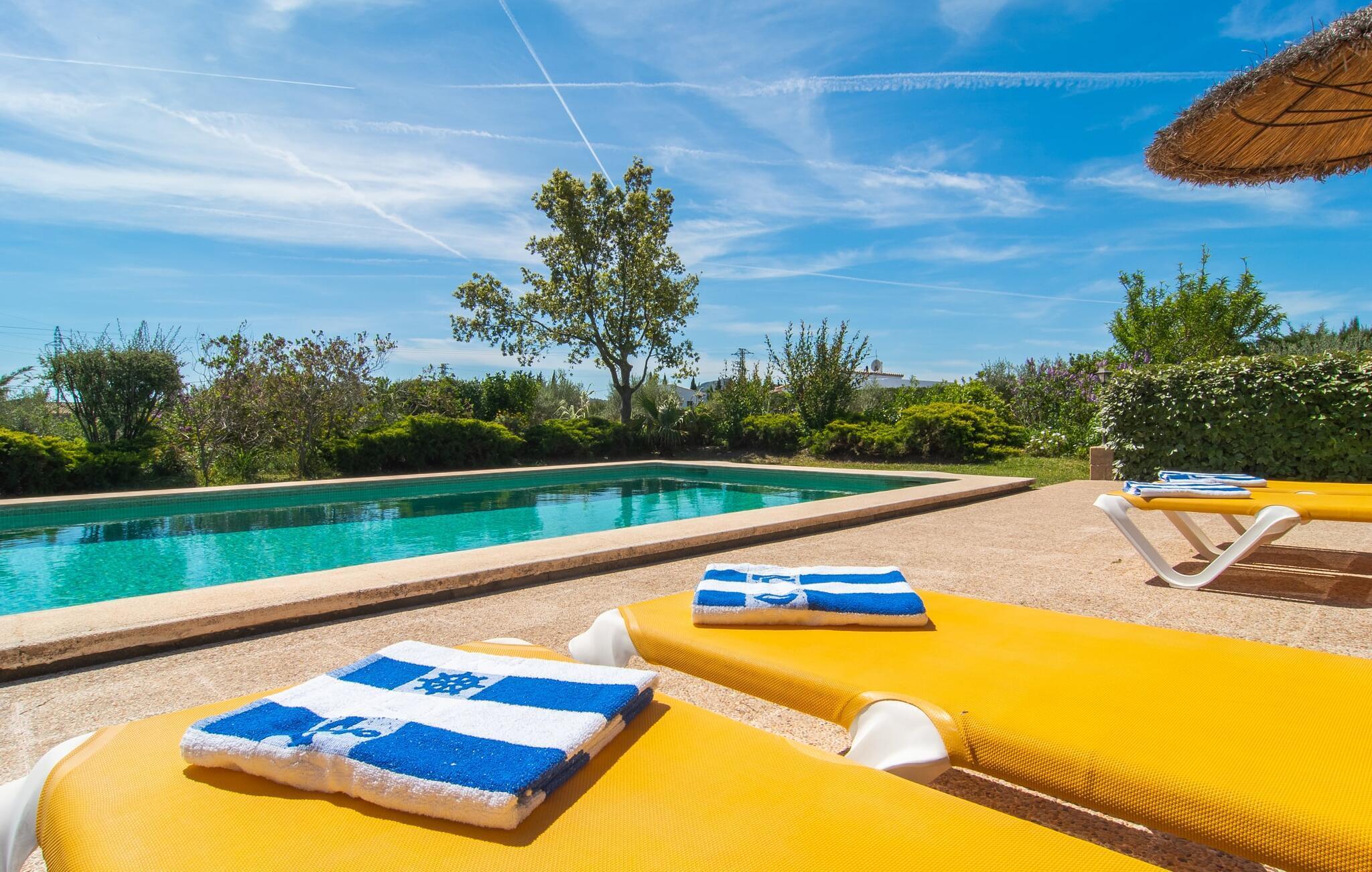 Hvis du leder efter en ideel base for at udforske øen og dens strande som en familie eller en lille gruppe, er feriehuset "Ca Na Neus Pollença" bestemt et godt valg med sit attraktive pris-ydelsesforhold. Dette er et Fincallorca feriehus. Udearealet i det smukke naturstenshus er meget velholdt, mens en have med middelhavsplanter og en smuk græsplæne omkranser huset. Den rummelige overdækkede terrasse ved siden af huset er et hyggeligt sted i skyggen og er udstyret med spiseplads og en hyggelig lille lounge. Lige foran den inviterer en rummelig solterrasse og en vidunderlig, lavvandet pool med jacuzzi-funktion til solbadning. Feriehuset har også udendørs bruser, murstensgrill og bordtennisbord. Det indre af feriehuset i stueetagen byder gæsterne velkommen med en venlig, åben opholdsstue, hvor et fuldt udstyret køkken, en spiseplads og den hyggelige stue flyder rumligt ind i hinanden. Det skrå tag med synlige træbjælker og en behagelig udsmykning i landlig stil sikrer en hjemlig følelse. De to komfortable soveområder er udstyret med aircondition og kan nemt mørklægges med rulleskodder. Derudover har begge soveværelser eget badeværelse en suite. Fincaen er beliggende i landlige omgivelser, ikke langt fra S'Albufera naturreservat i den nordøstlige del af Mallorca. Stranden i Pollença Bay er 8 minutter væk; Den 7 km lange sandstrand ved Alcúdia ligger kun 20 minutter væk. Butikker, restauranter og caféer findes i Pollença, 6 km væk, men også i den smukke havn i Puerto de Alcúdia, knap 10 km fra dit feriehus.