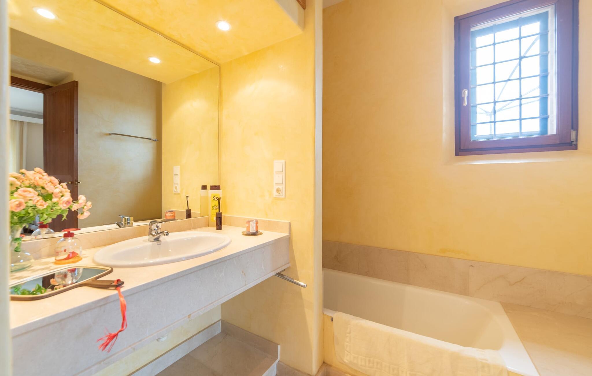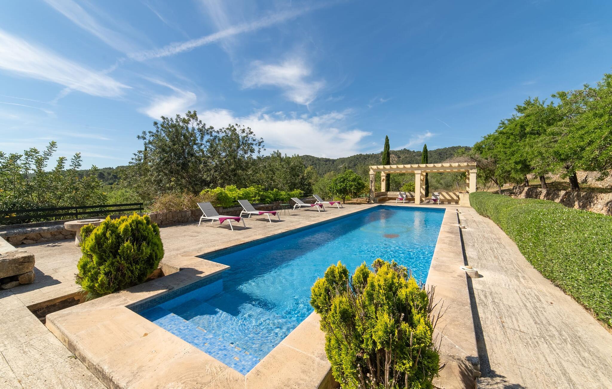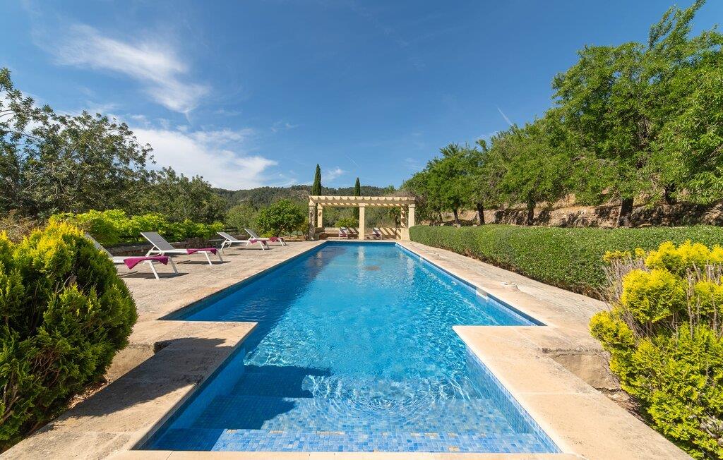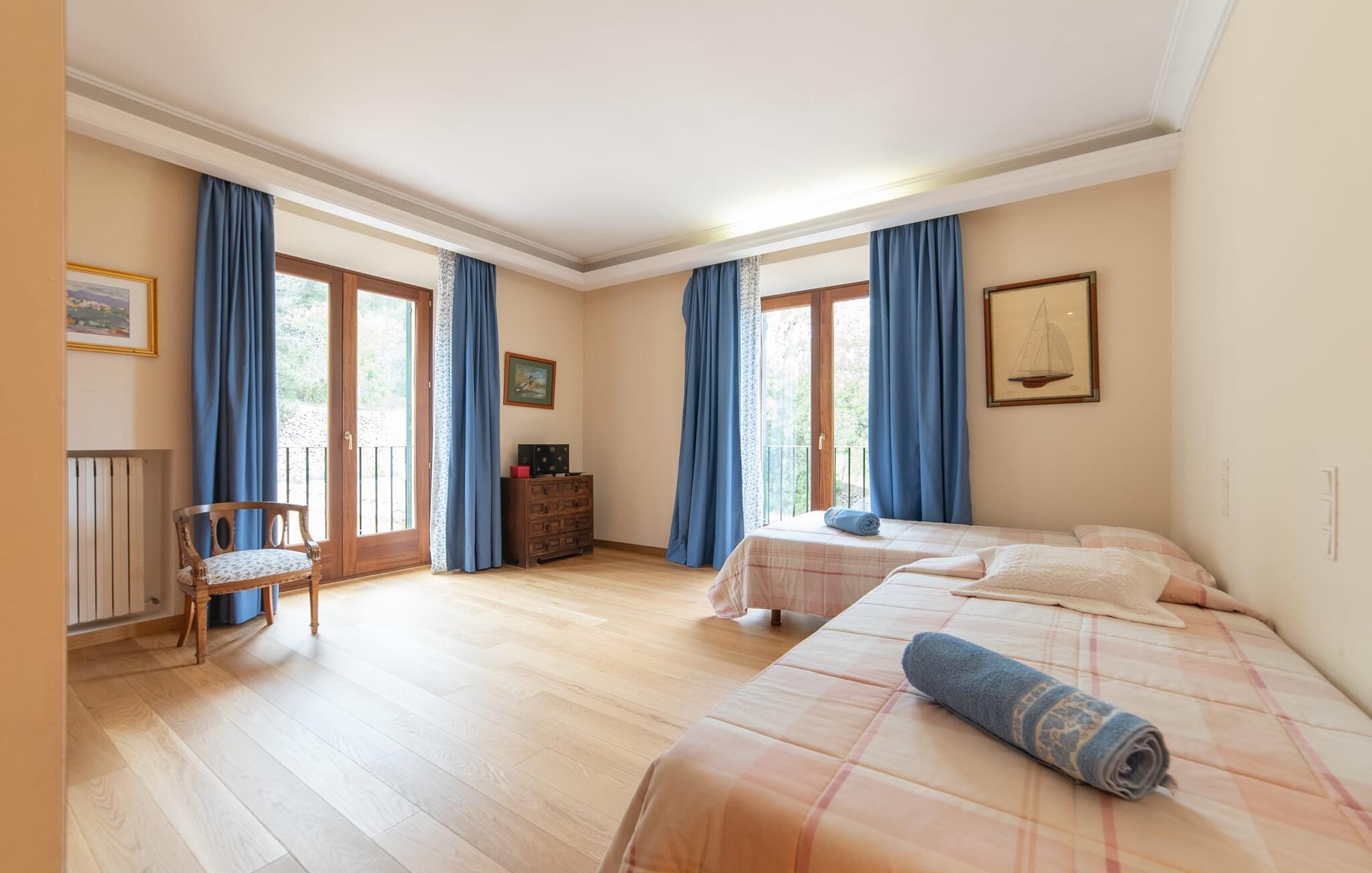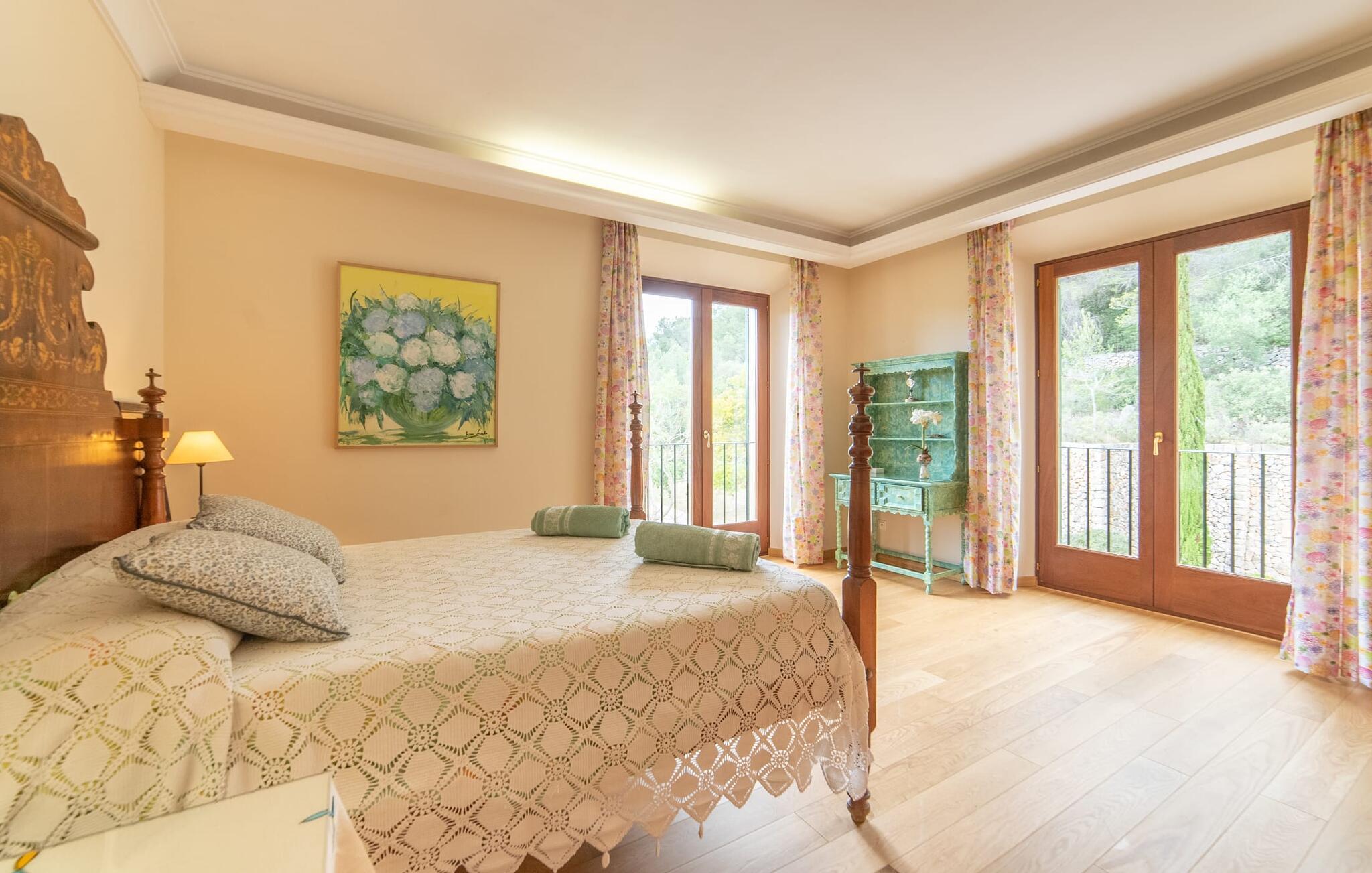 Dette charmerende feriehus på Mallorca er et ideelt sted for familier, par, der rejser sammen eller venner, der ønsker at nyde et par dage med afsondrethed og fred på landet. Der er masser af plads på den enorme plads til at nyde det hele fuldt ud. Middelhavsvegetation, små stier, nicher og mure inviterer jer til at blive ved med at lede efter nye steder at blive hængende. Der er også en gynge til de mindste. I kan også nyde hyggelige timer ved poolen. Det er ikke kun stort, men det er også fladt og har let tilgængelige trin. På solterrassen inviterer komfortable liggestole og murstensbænke jer til at slappe af. På den overdækkede terrasse lige ved siden af huset, som er beklædt med flodsten, kan I sidde sammen ved spisebordet eller i den hyggelige lounge. På grund af den naturlige beliggenhed kan der være geder i nærheden. For at forhindre dem i at komme ind på ejendommen er der en vagthund, som går i snor på et indhegnet område. Herfra kan I komme direkte ind i husets stilfulde og meget rummelige interiør. Den rummelige stue strækker sig over to boligplaner. I stueetagen er der en stor spisestue og en hyggelig stue med pejs og aircondition. På denne etage er der desuden et fuldt udstyret køkken, som også byder på god plads, og et hyggeligt soveværelse med dobbeltseng. Der er et smukt bibliotek på øverste etage af denne bondegård på Mallorca. Der er også fire hyggelige dobbeltværelser med hver sit badeværelse. Der er også en stor terrasse ovenpå, hvorfra I kan nyde en spektakulær udsigt. "Ca Nostra de Esporlas" - et fantastisk hjem for naturelskere, dem, der søger fred og ro og individualister! "Ca Nostra de Esporlas" er en charmerende bolig i den vestlige del af Mallorca. Der er afsondrethed og fred og et kæmpe udendørsområde. Stuehuset ligger 4 km fra Esporlas og godt 7 km fra Valdemossa og Palma. Det omkringliggende område inviterer jer til at tage på en række forskellige udflugter. I Esporlas kan I gøre jeres daglige indkøb, gå på marked eller gå på en af de hyggelige caféer. Bemærk venligst, at denne ejendom ikke accepterer ungdomsgrupper eller polterabender. En ungdomsgruppe på denne ejendom består af personer under 30 år. Book ikke denne ejendom, hvis I er en ungdomsgruppe eller polterabend, da jeres reservation vil blive afvist, når den er booket, hvilket også kan være tilfældet ved ankomst til ejendommen eller under jeres ophold, og I vil ikke modtage en refusion