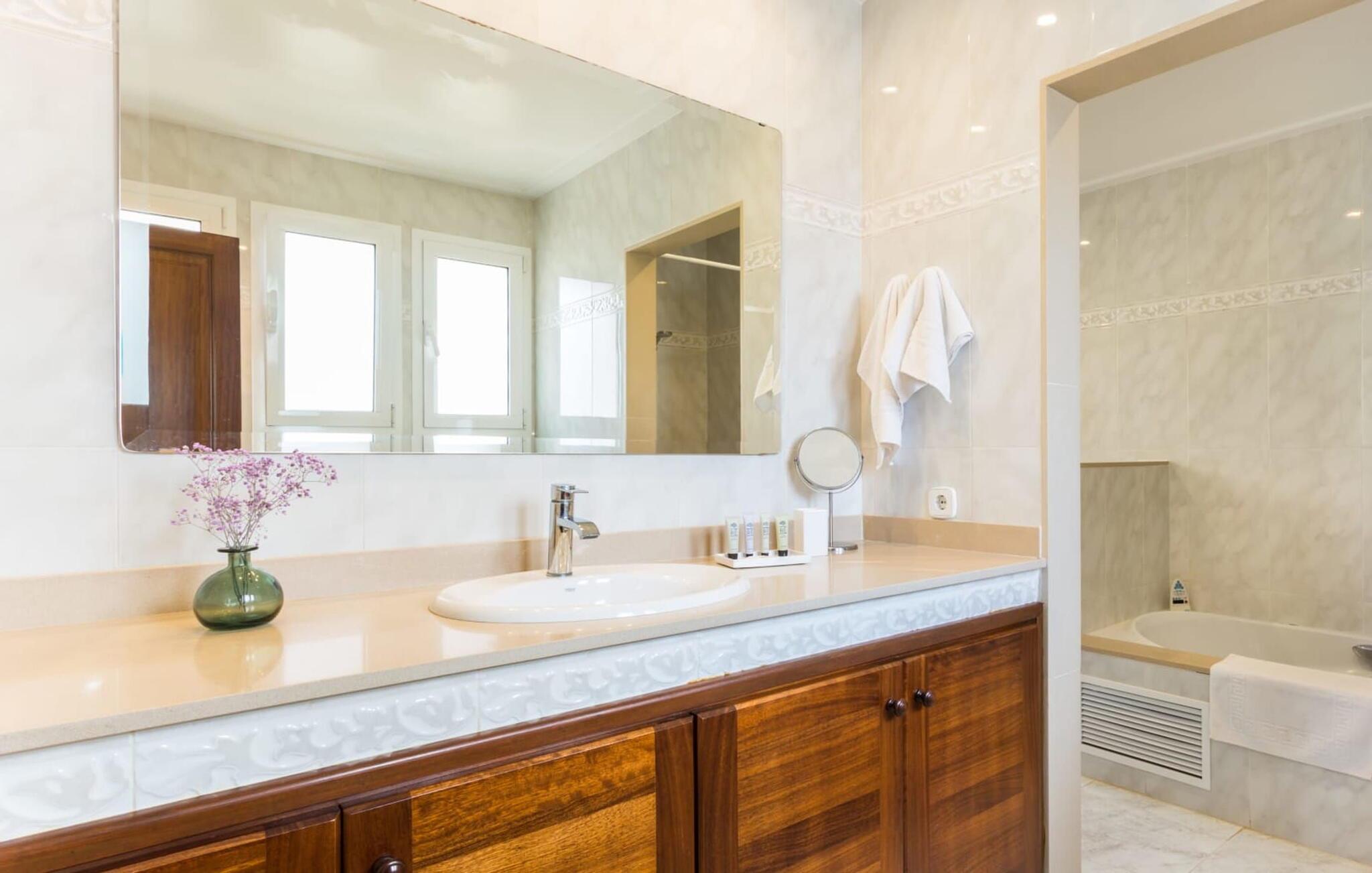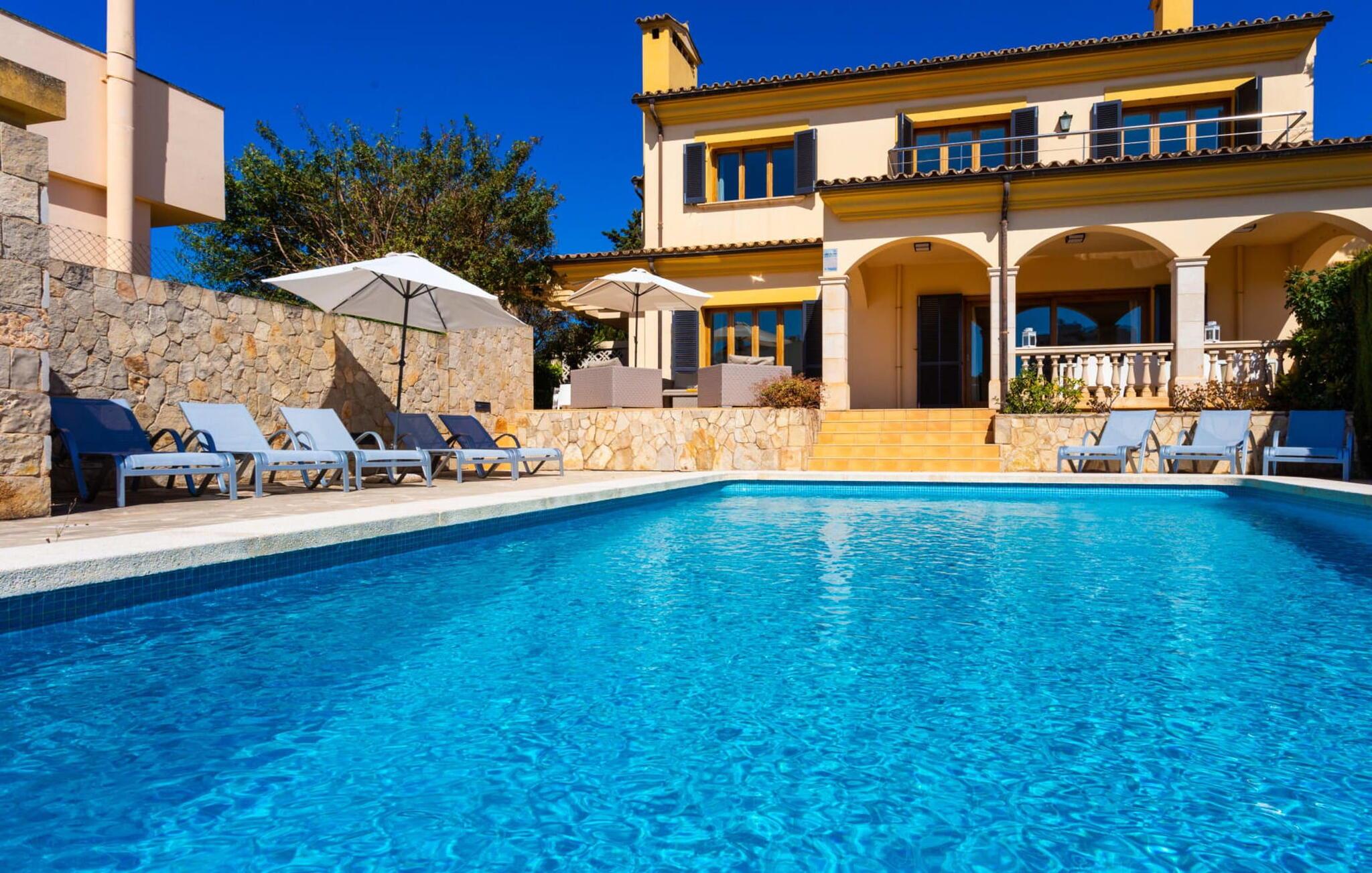 Et uforglemmeligt ophold med hele familien venter dig i denne luksuriøse villa med en fremragende beliggenhed. Ejendommen fremstår som typisk mallorcinsk arkitektur med bløde gule toner. Det store udendørsareal med dens række af terrasser og flere spisepladser samt grill er et sandt blikfang. En tæt hæk giver dig ikke kun fuldstændig privatliv, men fremhæver også havens vidunderlige grønne omgivelser. Et par trin fører direkte ned til hjertet af udendørsområdet: den store pool med omgivende loungeområde. Slap af på en af de mange komfortable liggestole under majestætiske palmer og den behagelige spanske sol. På særligt varme dage giver parasoller forfriskende skygge. Poolen er oplyst om natten, så du kan tage en forfriskende svømmetur selv i de sene timer. Dette er et Fincallorca feriehus. Interiøret er en strålende kombination af ultramoderne arkitektur og autentiske træmøbler. De lyse vægge harmonerer perfekt med de oplyste farveaccenter og giver rummene en elegant atmosfære. Det åbne opholds- og spiseområde byder dig velkommen med flere komfortable sofaer og et indbydende opholdsområde. Den stilrene tagbelysning fuldender den eksklusive atmosfære og de majestætiske glasvinduer giver dig en spektakulær udsigt over det udendørs område dekoreret med tropiske planter. Det store og fuldt udstyrede køkken har masser af plads til at tilberede lækre måltider og snacks. En marmortrappe fører op til næste etage med sine fire rummelige dobbeltværelser. Du kan forvente det højeste niveau af komfort i disse meget smagfuldt indrettede værelser. De moderne skabe giver masser af plads til din feriegarderobe eller købte souvenirs. Store glasdøre fører direkte ud til altanen, hvor du kan nyde et betagende panorama over byen med din varme kop kaffe om morgenen. Det enorme femte soveværelse strækker sig som et tårnværelse hen over anden sal. Hvis du ikke har noget imod rummets åbenhed, sover du virkelig som en konge heroppe. De fem elegante og lyse badeværelser er udstyret til en høj standard og tilbyder alt, hvad du kan ønske dig på ferien. Det ultramoderne badekar med spabad er et sandt højdepunkt og lover fuldstændig afslapning. Især familier vil sætte pris på nærheden til havet i denne eksklusive villa. Kun et par minutter adskiller dig fra det turkise hav og en uforglemmelig dag på stranden. Der er andre paradisiske bugter gemt langs kysten, som bare venter på at blive opdaget. Cala Millor har utallige shoppingmuligheder, restauranter, barer og caféer at tilbyde. Tennisbaner, minigolf og adskillige andre sports- og underholdningsmuligheder er også i umiddelbar nærhed. På byens ugentlige marked kan du forkæle dig selv med lokale kulinariske delikatesser og gennemse de maleriske gader efter souvenirs til dine kære derhjemme. Kun få meter fra det turkisblå hav venter den eksklusive villa "Ca Nostra" dig i den smukke kystby Cala Millor. Ud over talrige indkøbsmuligheder og restauranter finder du et populært ugentligt marked i dette paradisiske feriested. Den utrolige sandstrand Cala Millor ligger kun få minutters gang væk, og talrige andre bugter er også i nærheden.