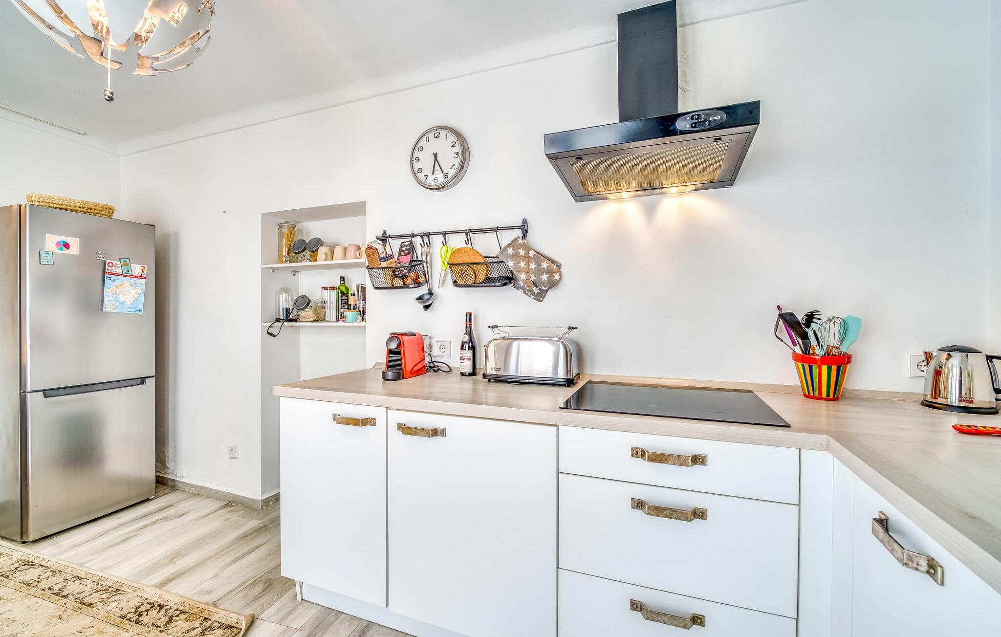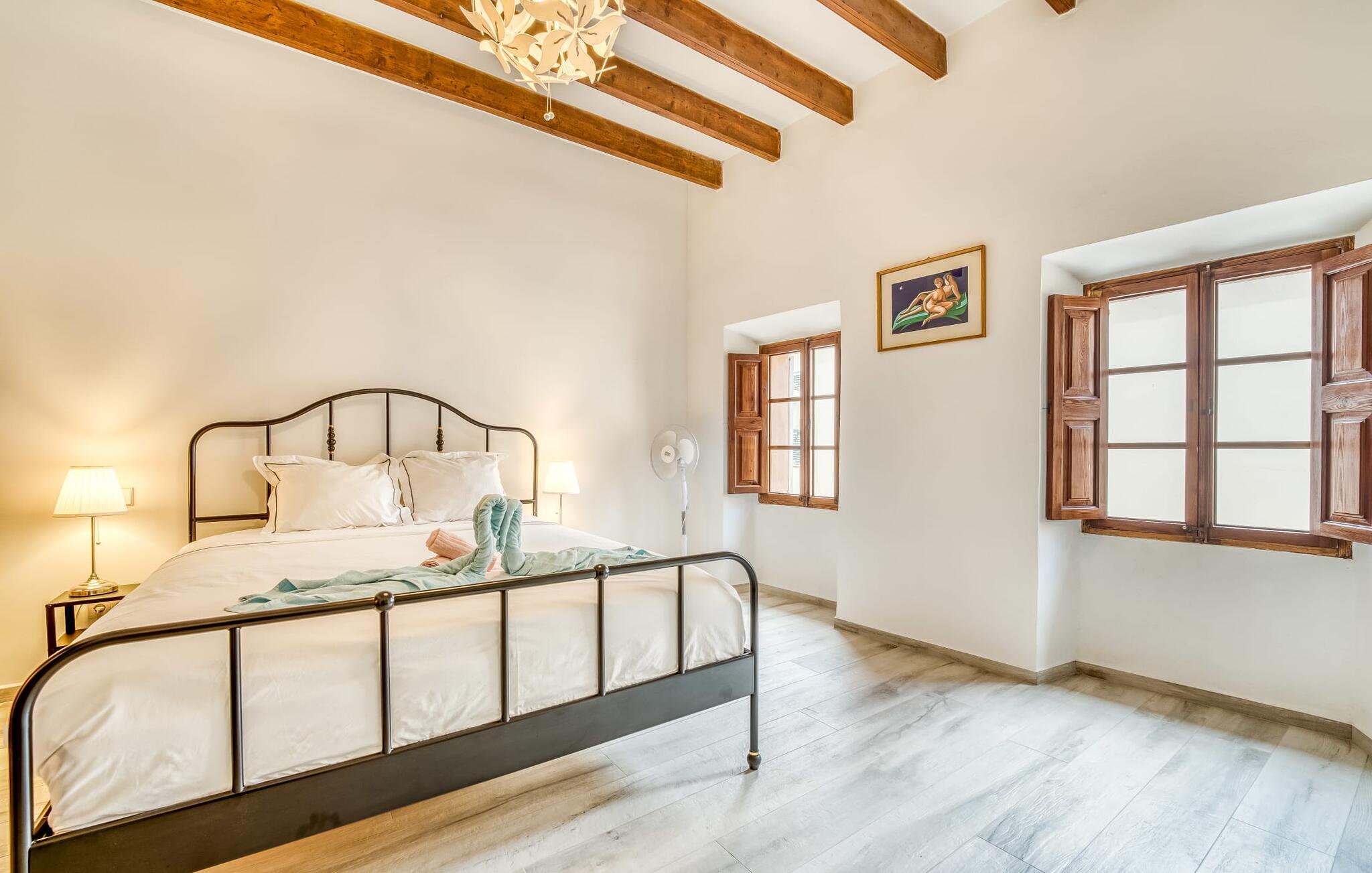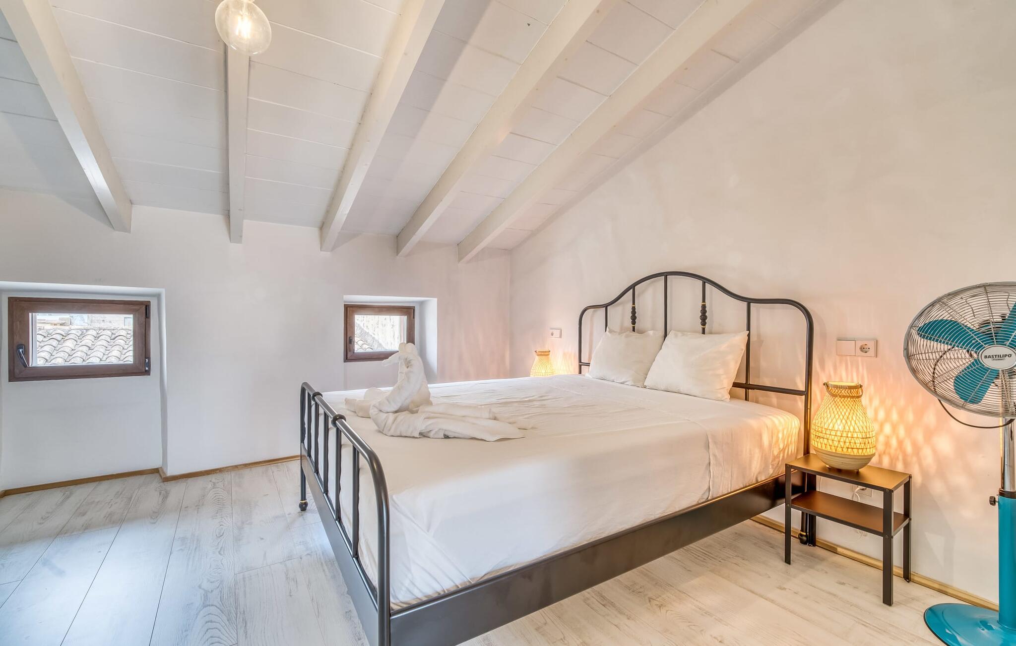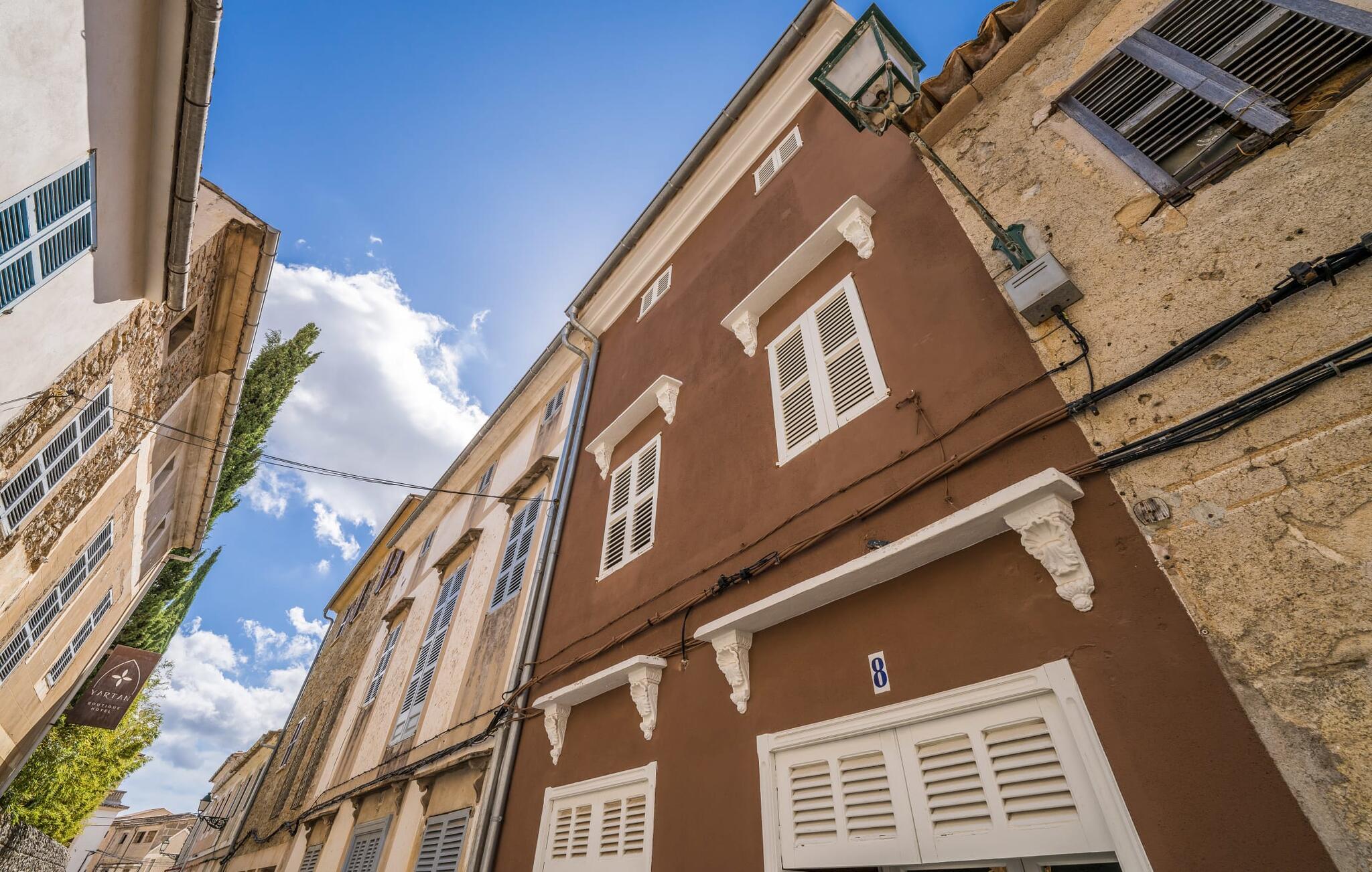 "Ca Sa Batlessa" er navnet på dette chokoladefarvede rækkehus med hvide skodder, beliggende i den historiske gamle bydel i middelalderlige Artà. Her kan I opleve en ferie væk fra masseturismen, når I slentrer gennem de smalle gader til slottet eller nyder markedets travlhed med omfattende shopping om tirsdagen. Det tre-etagers feriehus har tre terrasser, hvoraf den ene i stueetagen er delvist overdækket. Udover en udendørs spiseplads med lounge-flair i tilknytning til køkkenet, er her endda en pool - lille men flot og en absolut luksus selv for et rækkehus i en bygyde. Fra de to asfaltterrasser på de øverste etager har man udsigt over tagene i den maleriske by, det gamle bibliotek og byteatret. Den charmerende karakter af det traditionelle byhus er med succes understreget af urban chic med vintage-elementer. Huset, der er moderniseret til ferieformål, giver jer hurtigt følelsen af ikke bare at være på ferie, men af at være en del af hverdagen på Mallorca. Typiske og historiske træk er bevaret og kombineret med moderne komfort. Når man træder ind i huset, kommer man først ind i den smagfuldt indrettede spisestue. Herfra kommer I ind i den hyggelige stue med pejs, som giver udgang til terrassen og det fuldt udstyrede køkken, hvilket øger jeres feriekomfort yderligere. En trappe fører fra stuen til de øverste etager. På første sal er der et dobbeltværelse og et enkeltværelse. Det tredje soveværelse på loftet har en rummelig studiefølelse takket være opholdsområdet foran. Det eksklusive og rummelige badeværelse imponerer ligesom de øvrige rum i det indbydende feriehus med sit individuelle design med bruseniche og stenvask. "Ca Sa Batlessa" er særdeles velegnet til ferier med flere generationer. På grund af den ekstremt lave pris anbefales den også til to til tre personer. Et besøg i Artà er værd hele året rundt og især i den milde lavsæson! Det moderniserede byhus "Ca Sa Batlessa" imponerer med sin moderne-historiske indretning og sin egen pool. Beliggenheden kan med rette betegnes som fremragende, for det enkelte feriehus ligger på den østlige del af øen i den gamle bykerne i Artà. I bor midt i middelalderbyen og kan nå gågaden med sine smukke butikker, caféer, restauranter og det ugentlige marked til fods. Køreturen til Canyamel eller Cala Ratjada – og dermed til stranden – tager kun mellem 10 og 20 minutter.