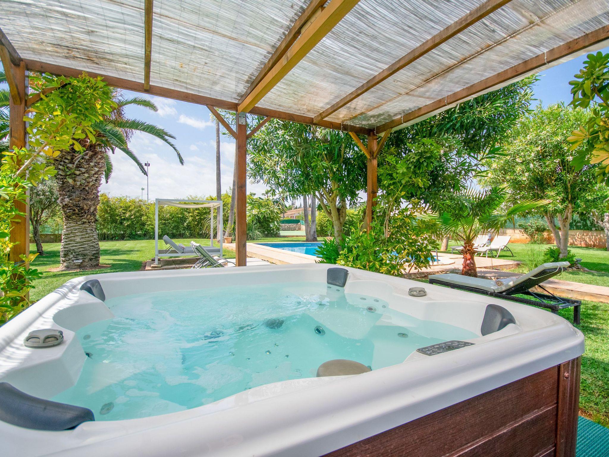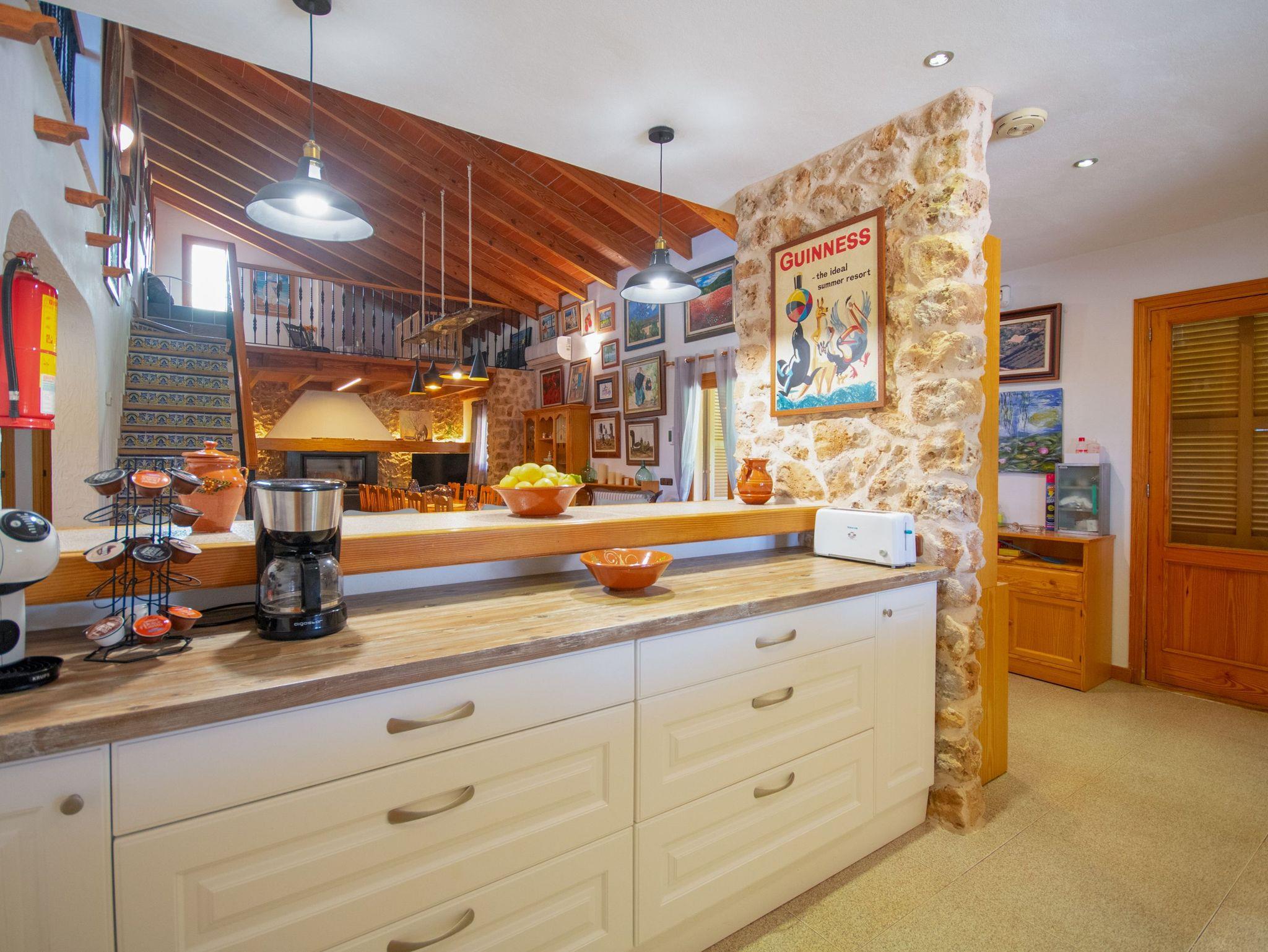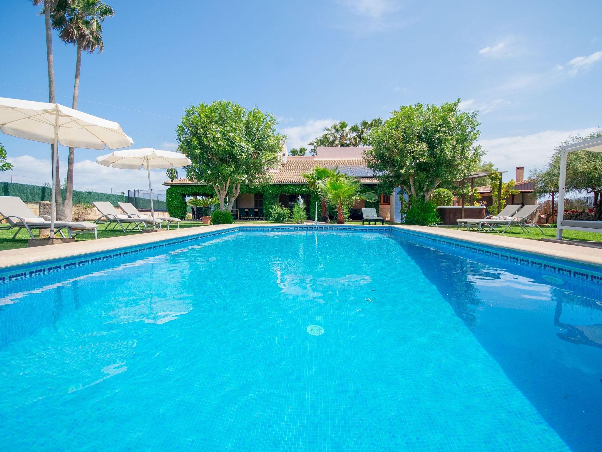 Ruhige strandnahe Finca Son Duri auch Ca Na Bisquerra genant, mit privatem Pool und privatem Tennisplatz für bis zu 8 Personen, mit Grillplatz und einem sehr gepflegtem Garten. Das Haus besteht aus 4 Schlafzimmern und 3 Bädern, sowie einem sehr grossen Wohn/Esszimmer mit offener, angrenzender Küche. Diese ist typisch mallorkinisch, dennoch voll ausgestattet.