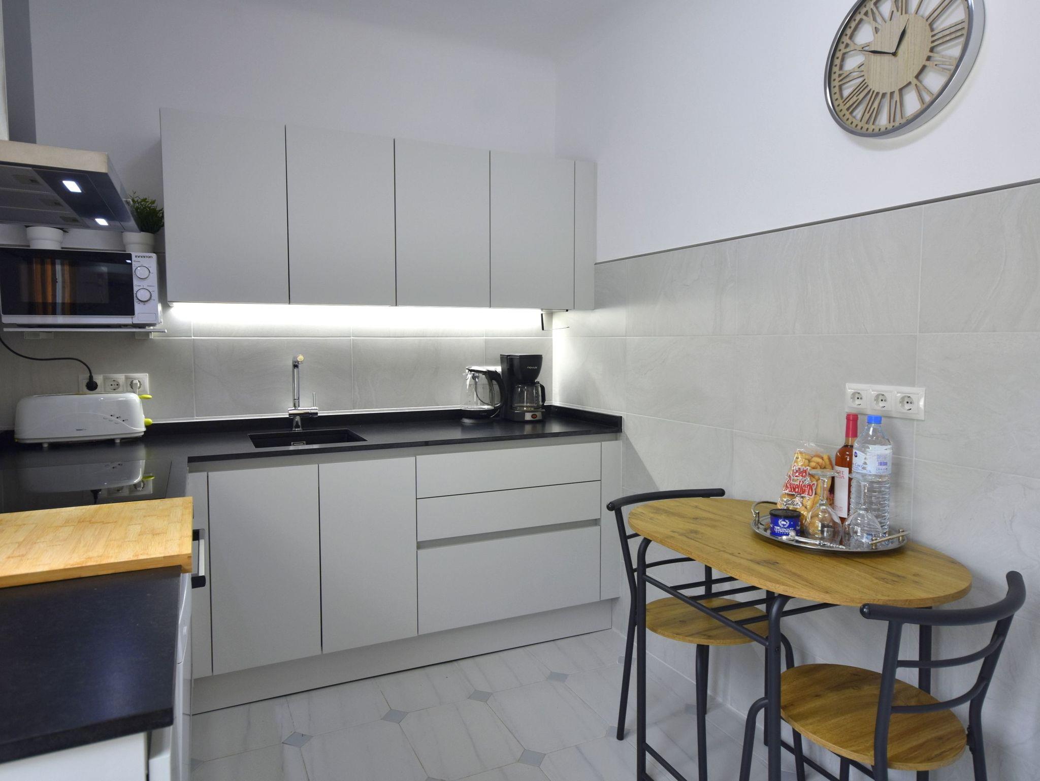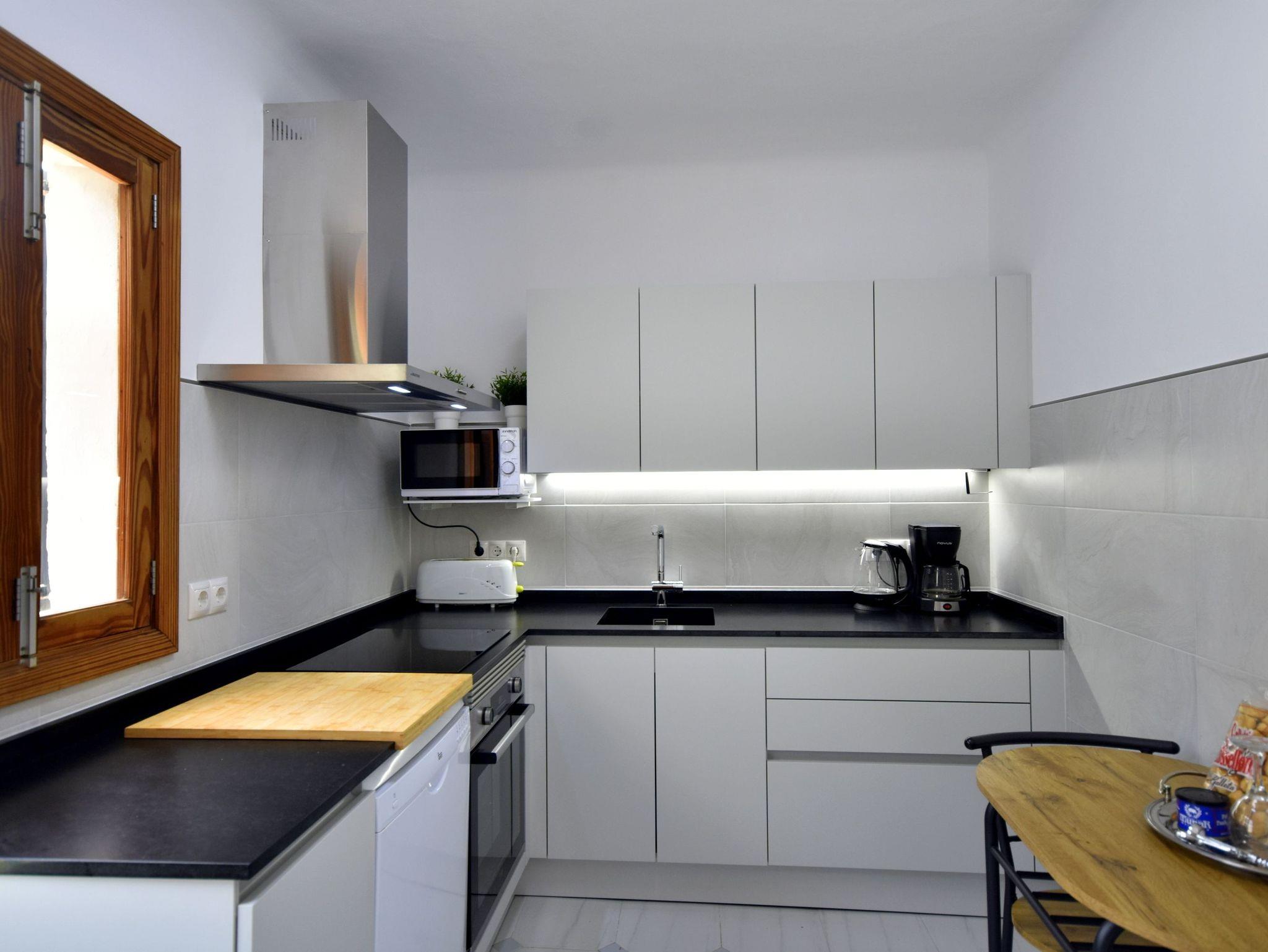 Die Küche im mallorquinischen Stil ist vollständig ausgestattet.