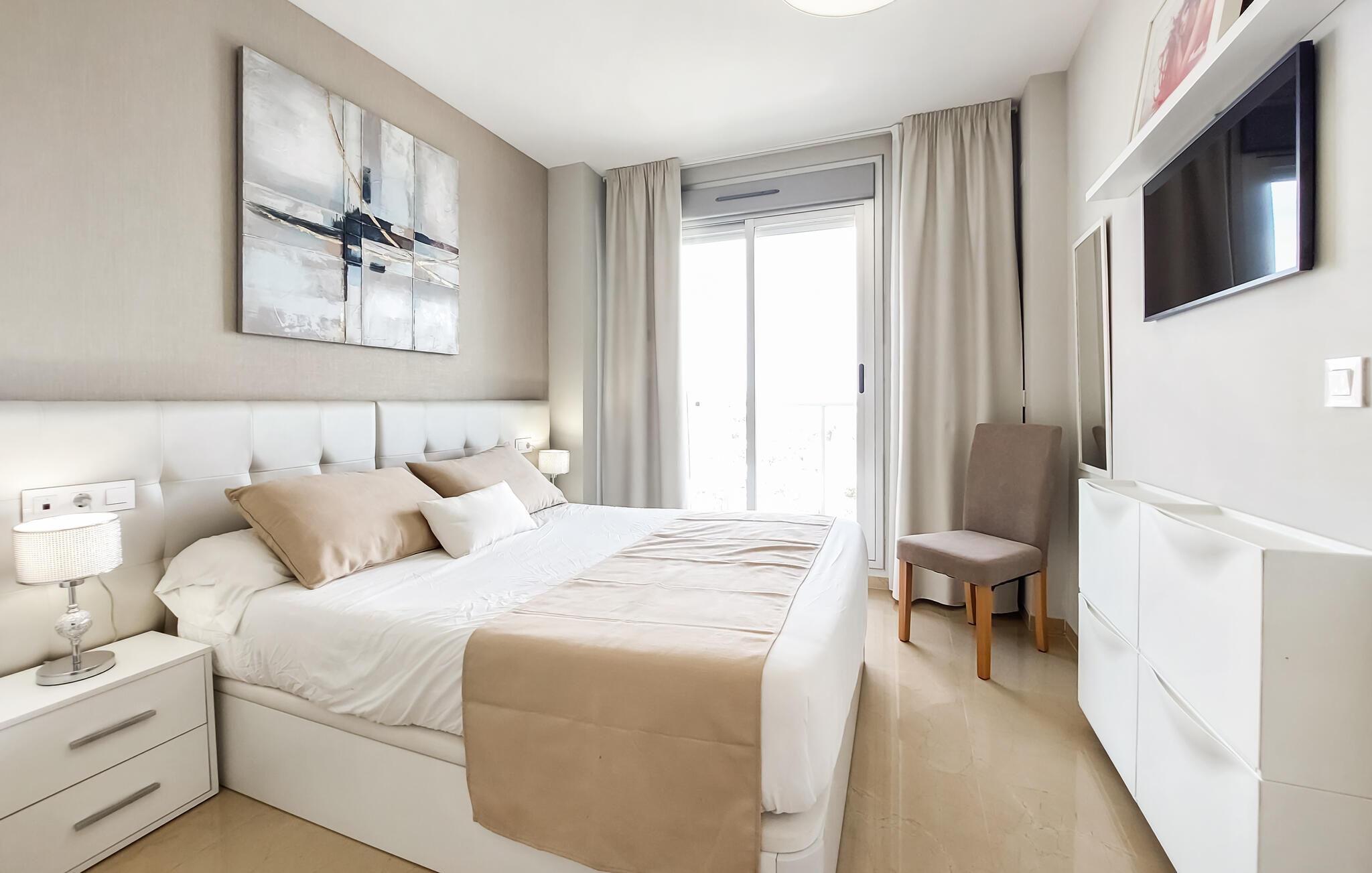 Brug kompleksets indbydende poolområde til sjove stunder og forfriskende svømmeture. Og gå til den nærliggende strand, kun et stenkast fra jeres lejlighed, og nyd det klare vand og det fine sand. Besøg også Parque Natural del Prat de Cabanes-Torreblanca, som er et smukt naturreservat. Eller tag en tur til Valencia og oplev den historiske gamle bydel, det imponerende L'Oceanogràfic akvarium og den futuristiske bydel med kunst og videnskab.