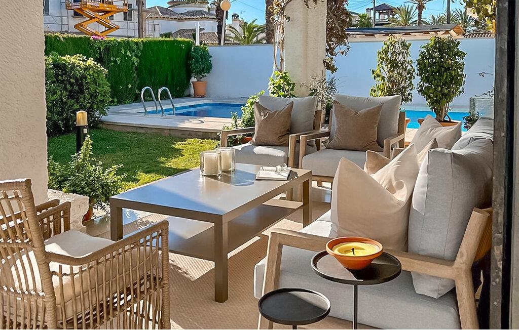 Dette smagfuldt indrettede feriehus i Cabo Roig byder på en indbydende og hyggelig atmosfære, der er perfekt til uforglemmelige øjeblikke med jeres nærmeste. Det komfortable opholdsområde med brændeovn lægger op til afslapning, mens det veludstyrede køkken og den rummelige spisestue skaber rammerne for hyggelige måltider. Tilbring afslappede stunder på terrasserne, i den velholdte have eller tag en forfriskende dukkert i swimmingpoolen – ideelt til solrige dage og lune aftener.
