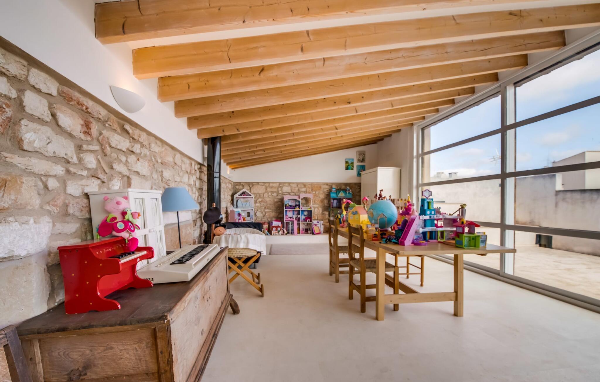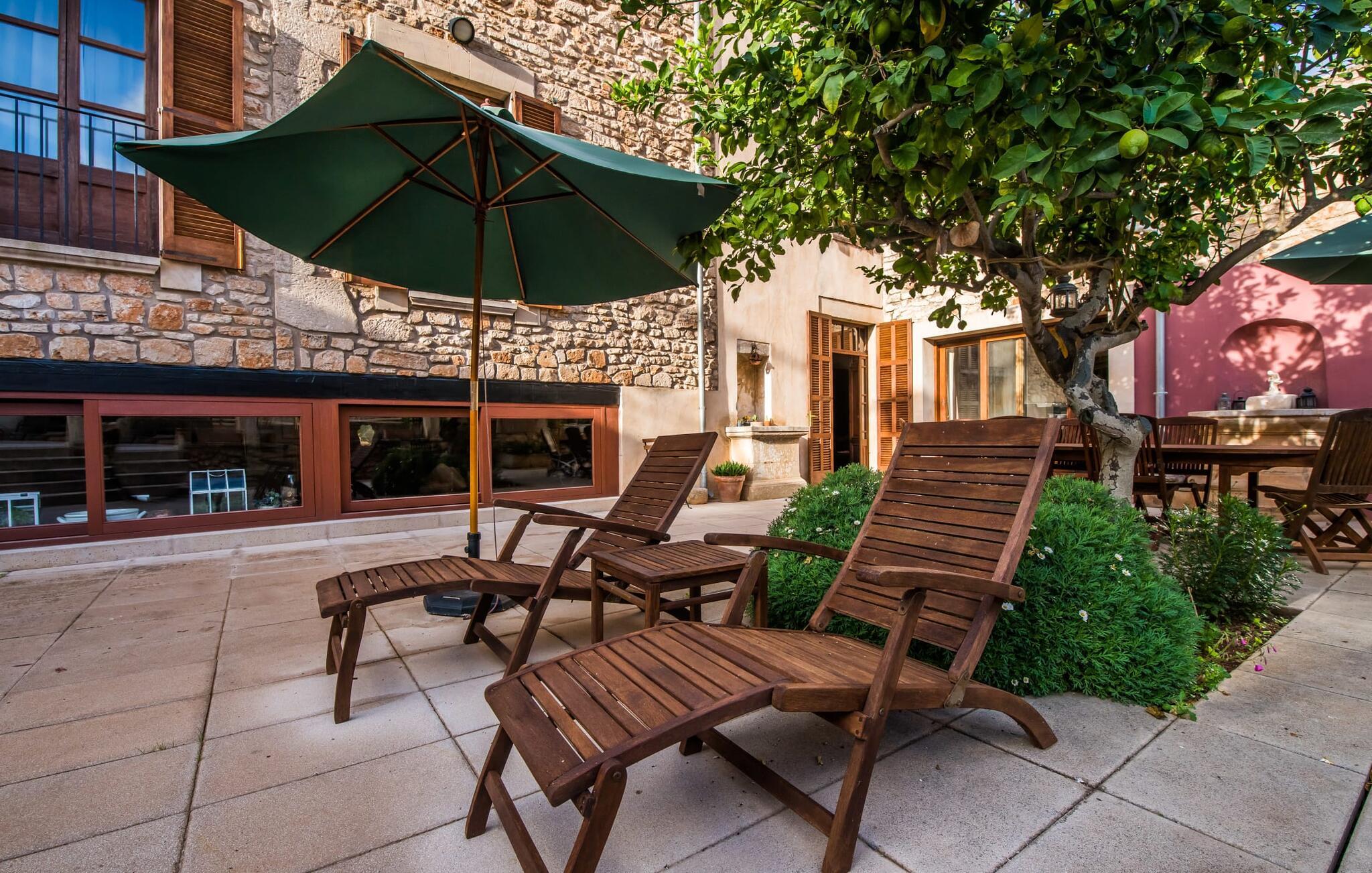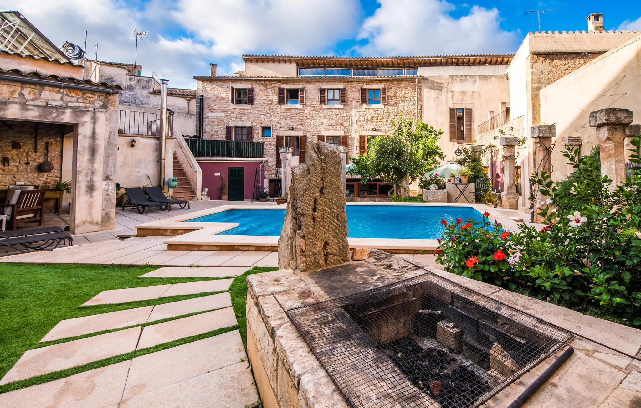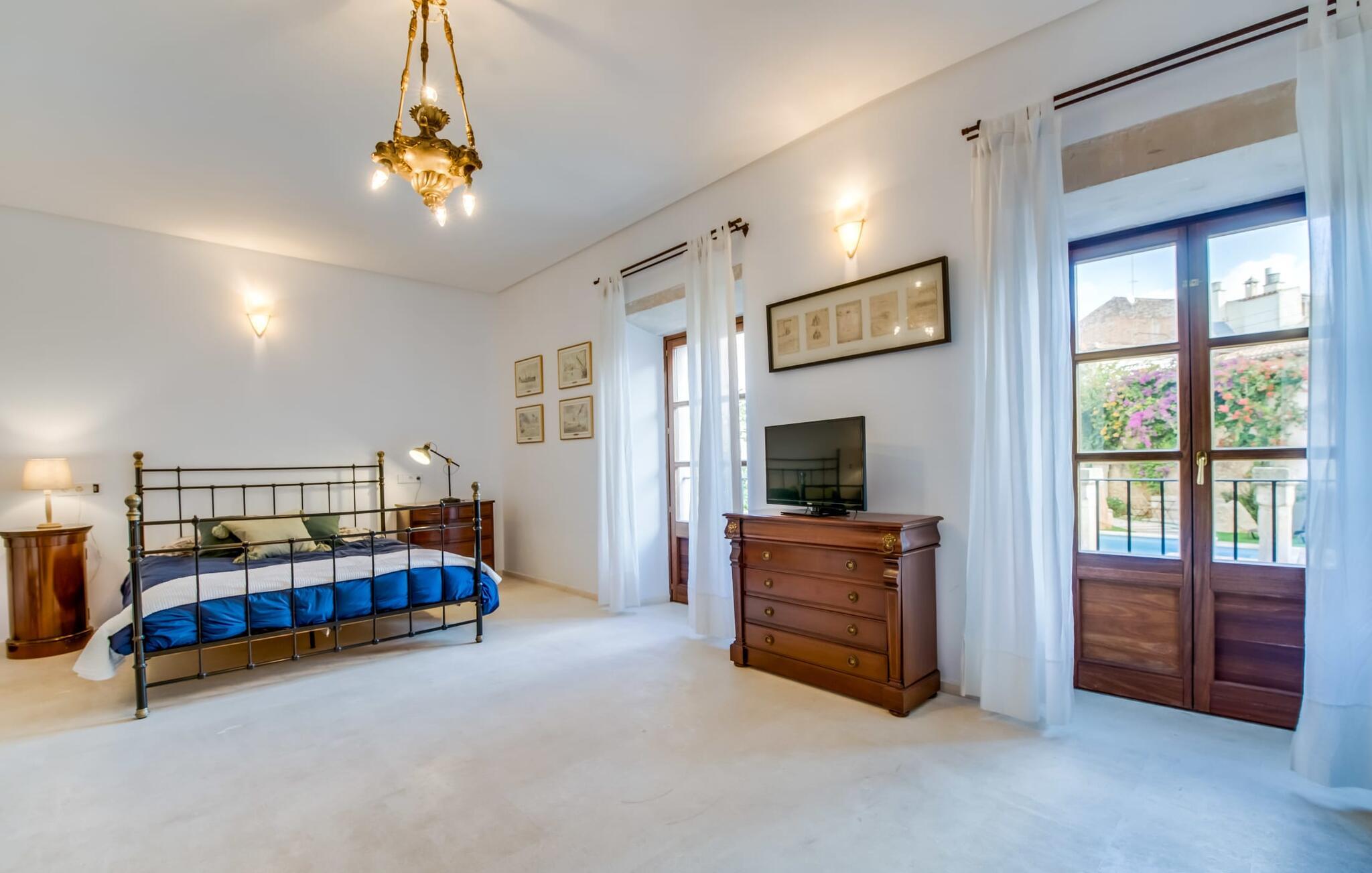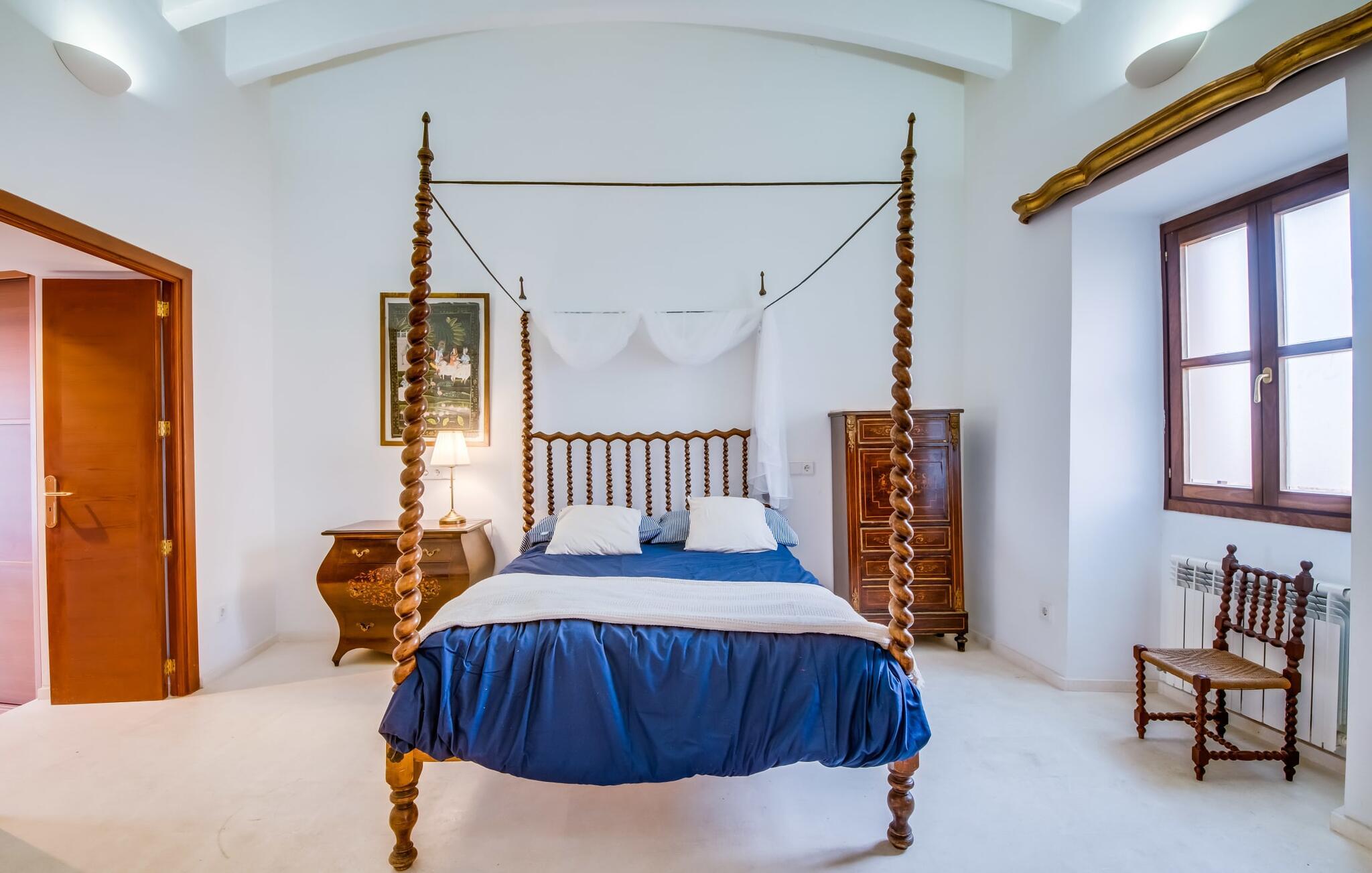 Attributten byhus beskriver næsten utilstrækkeligt den overvældende skønhed ved den traditionelle ejendom "Cal Senyor Damia". Denne statelige ejendom med mere end 600 m² boligareal er et af de gyldne sandstenshuse, som I normalt kun kan beundre udefra på en dagstur til Santanyí. Hvad man ikke kan se udefra, er den indre gårdhave, som er fuldstændig beskyttet mod indsyn, i al sin pragt. Dette tilbyder et privat tilbagetog i en utrolig charmerende atmosfære. I vil lære det "rigtige" Mallorca at kende i dets spændende historie. "Cal Senyor Damia" fortæller os noget om det ikke altid stille liv i byen - hvordan det var i går, og hvordan det stadig er i dag. Frodige blomstrende planter, citrustræer og utallige planter dekorerer den historiske sandsten og tilbyder jer vidunderlig privatliv. Flotte siddepladser langs gamle mure, terrasser, caféborde og en muret grill giver den indre gårdhave sit smukke udseende. Lyset og atmosfæren forstærkes af ældgamle relikvier som søjler, gårdspringvand, landbrugsredskaber og en overdækket lounge. I har valget mellem flere spiseområder for at nyde de solide lækkerier fra murstensgrillen på ethvert tidspunkt af dagen. Selvfølgelig kan I også gøre dette indendørs, i en atmosfære, der ikke er mindre euforisk. Mares buer, stenbrud, hvælvede lofter, forskudte niveauer er grundlaget for dette traditionelle mallorcanske feriehus af absolut højeste klasse. Kombinationen mellem antikke detaljer og moderne komfort, mellem barok og moderne design, er særlig vellykket. I skal blot bukke under for denne charmerende offensiv, der venter jer på tværs af hele lejeområdet på generøse 636 m² fordelt på fire etager. I stueplan er der foyer svarende til bygningens status, lys stue med udsigt til den indre gårdhave, hyggelig pejsestue, fuldt udstyret køkken-alrum med de mest moderne bekvemmeligheder samt gæstetoilet. Sovepladserne er fordelt på de tre øverste etager i etager. Soveværelserne opfylder ikke kun deres oprindelige formål, men er også steder for tilbagetog på grund af deres størrelse. De er også udstyret med tv, nogle med pejse, siddepladser og walk-in closet mv. Tagstudiet byder også på et kæmpe værelse med fitness- og legeredskaber på baggrund af en stor terrasse. Sørg for at tage et kig på badeværelserne – cool design med et konkret look og highlights som brusekabiner og badekarret indlejret i gulvet venter på jer. Dette spektakulære rækkehus med sin gennemtænkte indretning er ideel til flere familier - nyd jeres ferie! Det nænsomt renoverede feriehus "Cal Senyor Damia" giver et indblik i Mallorcas byliv med sin historisk designede, ø-typiske gårdhave. Beliggende midt i den rolige kunstnerlandsby Santanyí i den sydøstlige del af Mallorca, kan I lære dette populære sted at kende til fods. I bør ikke gå glip af det ugentlige marked på lørdag. På grund af den centrale beliggenhed behøver I kun lejebilen for at udforske området eller besøge den turkise badebugt Cala Santanyí, som kun ligger 8 minutter væk.