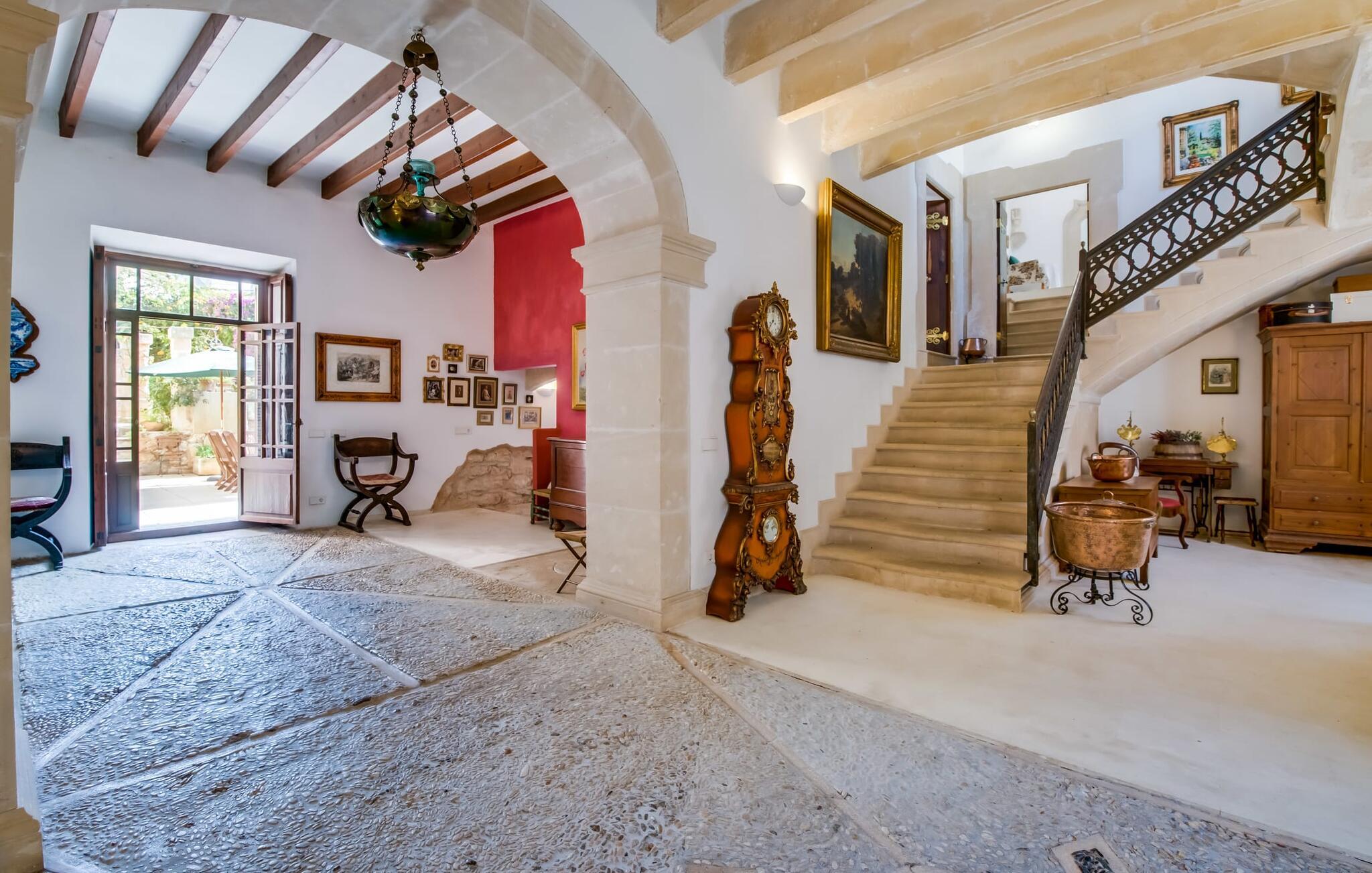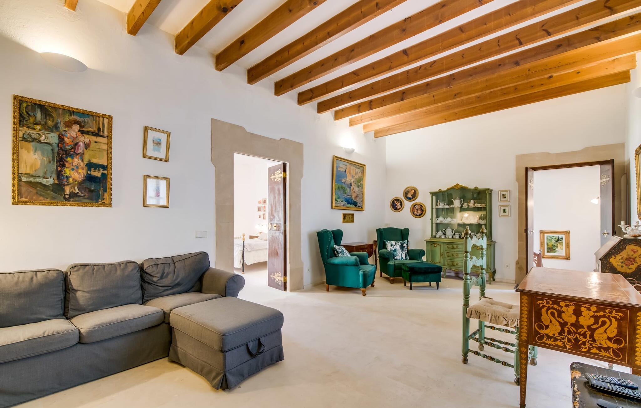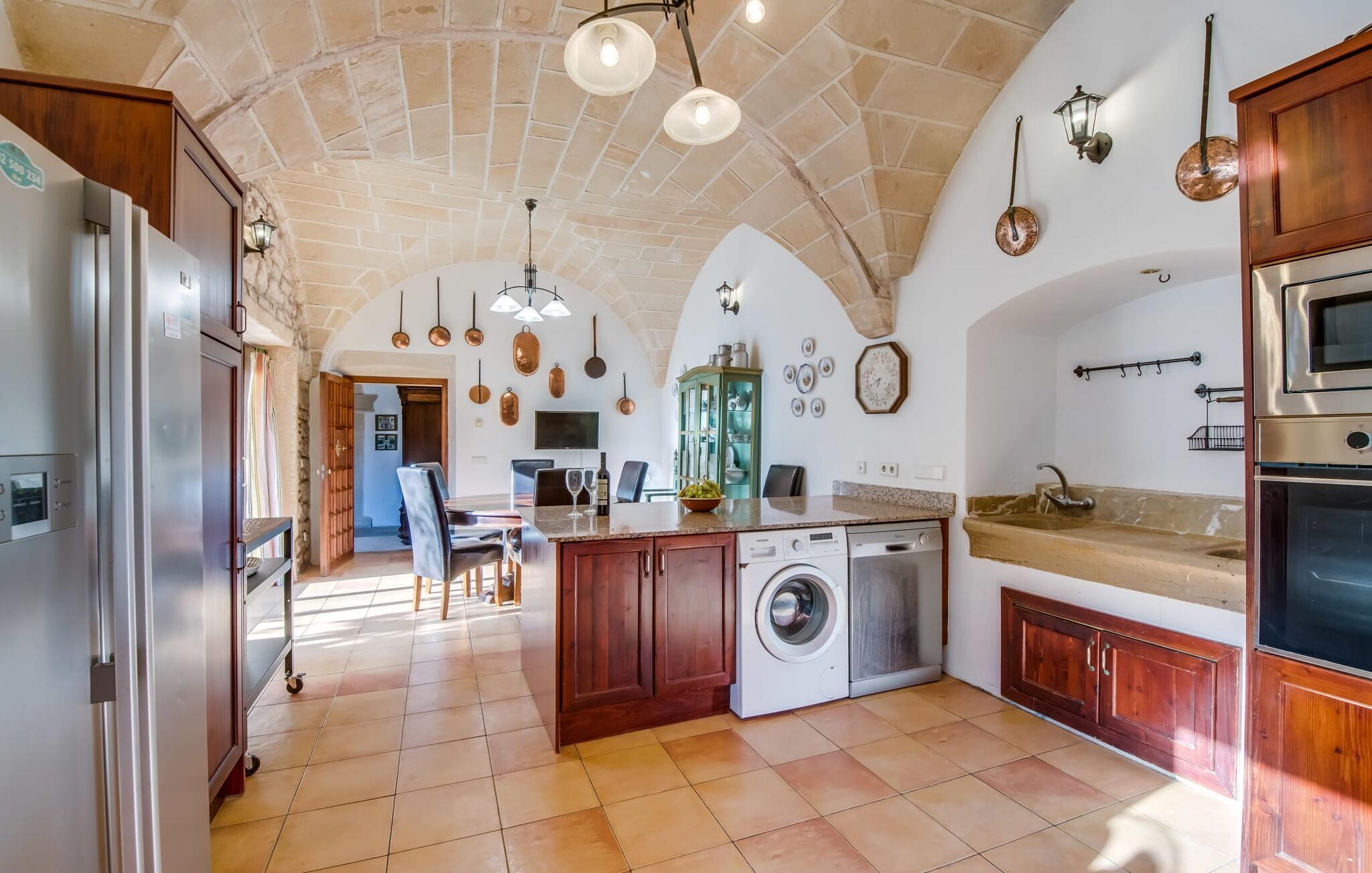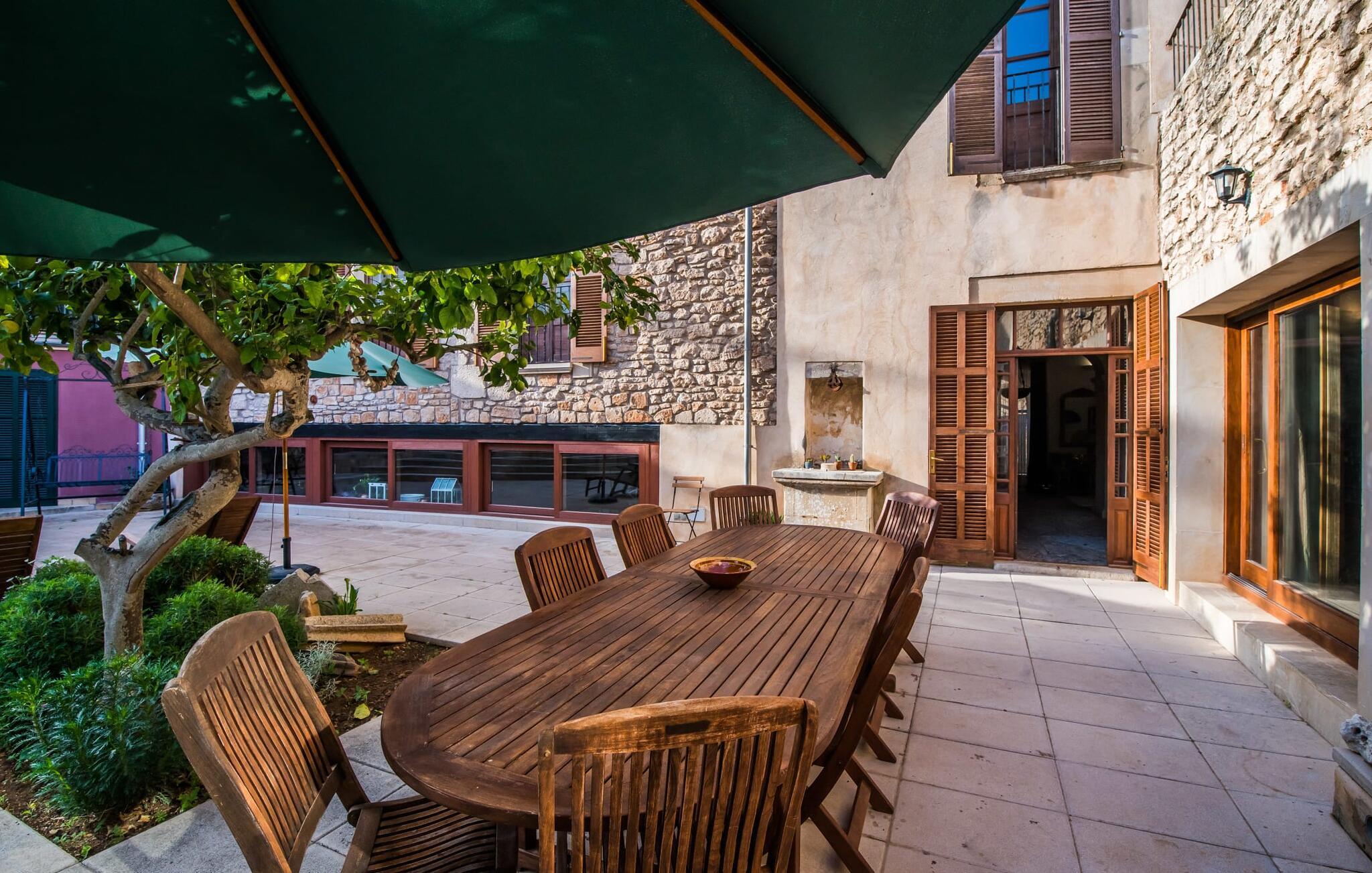 Attributten byhus beskriver næsten utilstrækkeligt den overvældende skønhed ved den traditionelle ejendom "Cal Senyor Damia". Denne statelige ejendom med mere end 600 m² boligareal er et af de gyldne sandstenshuse, som I normalt kun kan beundre udefra på en dagstur til Santanyí. Hvad man ikke kan se udefra, er den indre gårdhave, som er fuldstændig beskyttet mod indsyn, i al sin pragt. Dette tilbyder et privat tilbagetog i en utrolig charmerende atmosfære. I vil lære det "rigtige" Mallorca at kende i dets spændende historie. "Cal Senyor Damia" fortæller os noget om det ikke altid stille liv i byen - hvordan det var i går, og hvordan det stadig er i dag. Frodige blomstrende planter, citrustræer og utallige planter dekorerer den historiske sandsten og tilbyder jer vidunderlig privatliv. Flotte siddepladser langs gamle mure, terrasser, caféborde og en muret grill giver den indre gårdhave sit smukke udseende. Lyset og atmosfæren forstærkes af ældgamle relikvier som søjler, gårdspringvand, landbrugsredskaber og en overdækket lounge. I har valget mellem flere spiseområder for at nyde de solide lækkerier fra murstensgrillen på ethvert tidspunkt af dagen. Selvfølgelig kan I også gøre dette indendørs, i en atmosfære, der ikke er mindre euforisk. Mares buer, stenbrud, hvælvede lofter, forskudte niveauer er grundlaget for dette traditionelle mallorcanske feriehus af absolut højeste klasse. Kombinationen mellem antikke detaljer og moderne komfort, mellem barok og moderne design, er særlig vellykket. I skal blot bukke under for denne charmerende offensiv, der venter jer på tværs af hele lejeområdet på generøse 636 m² fordelt på fire etager. I stueplan er der foyer svarende til bygningens status, lys stue med udsigt til den indre gårdhave, hyggelig pejsestue, fuldt udstyret køkken-alrum med de mest moderne bekvemmeligheder samt gæstetoilet. Sovepladserne er fordelt på de tre øverste etager i etager. Soveværelserne opfylder ikke kun deres oprindelige formål, men er også steder for tilbagetog på grund af deres størrelse. De er også udstyret med tv, nogle med pejse, siddepladser og walk-in closet mv. Tagstudiet byder også på et kæmpe værelse med fitness- og legeredskaber på baggrund af en stor terrasse. Sørg for at tage et kig på badeværelserne – cool design med et konkret look og highlights som brusekabiner og badekarret indlejret i gulvet venter på jer. Dette spektakulære rækkehus med sin gennemtænkte indretning er ideel til flere familier - nyd jeres ferie! Det nænsomt renoverede feriehus "Cal Senyor Damia" giver et indblik i Mallorcas byliv med sin historisk designede, ø-typiske gårdhave. Beliggende midt i den rolige kunstnerlandsby Santanyí i den sydøstlige del af Mallorca, kan I lære dette populære sted at kende til fods. I bør ikke gå glip af det ugentlige marked på lørdag. På grund af den centrale beliggenhed behøver I kun lejebilen for at udforske området eller besøge den turkise badebugt Cala Santanyí, som kun ligger 8 minutter væk.