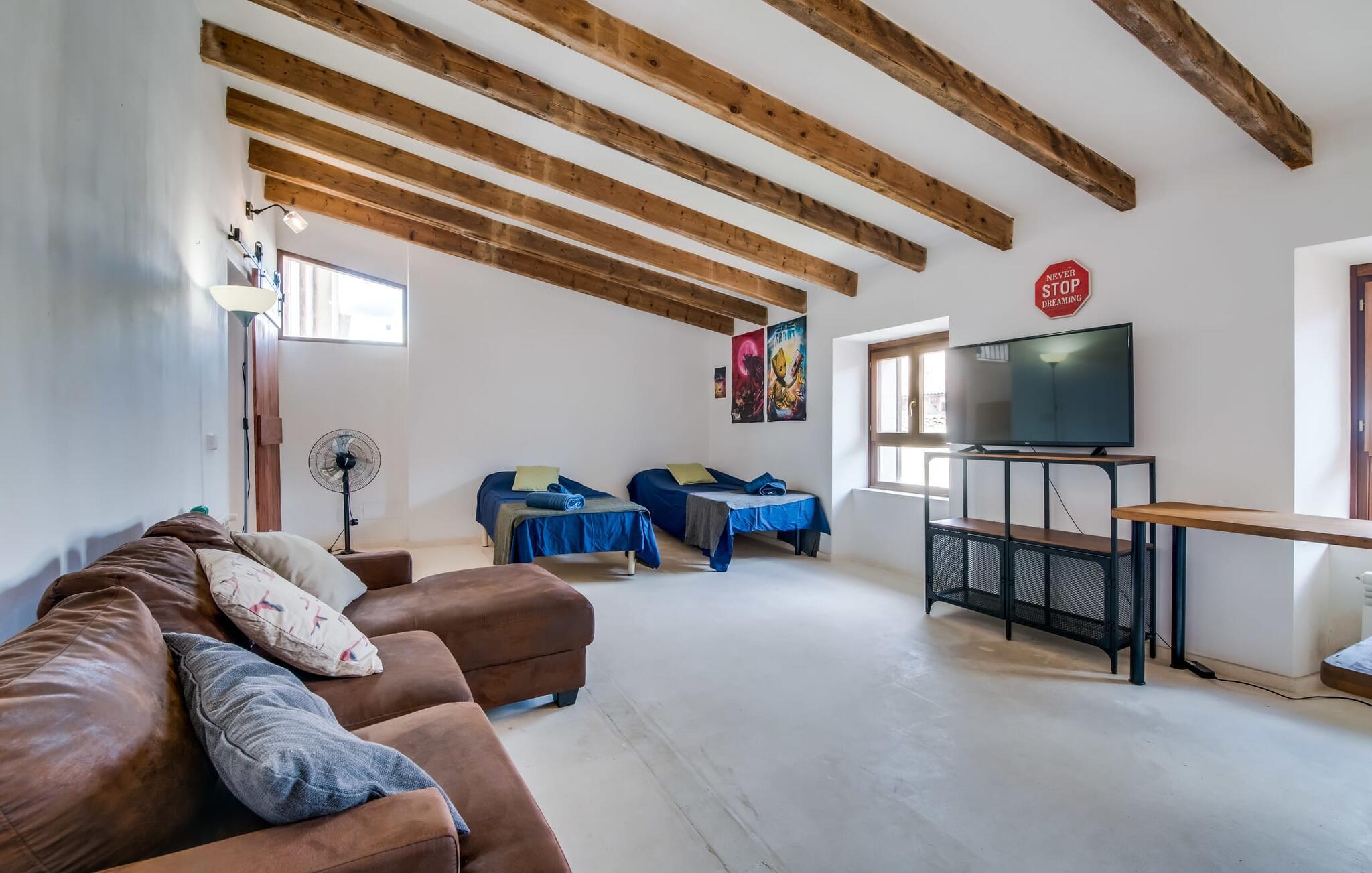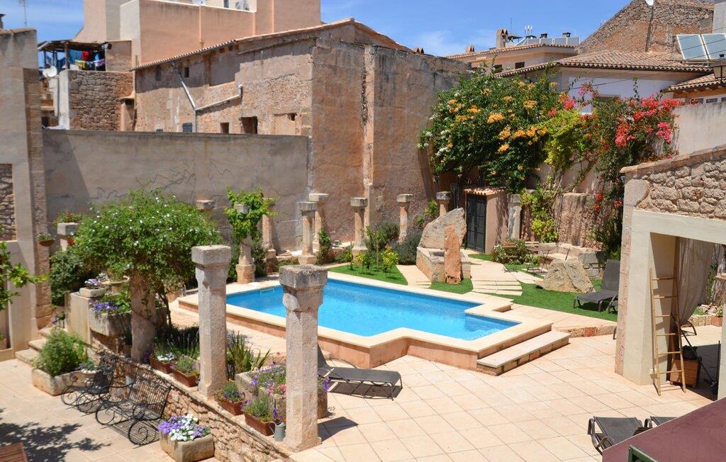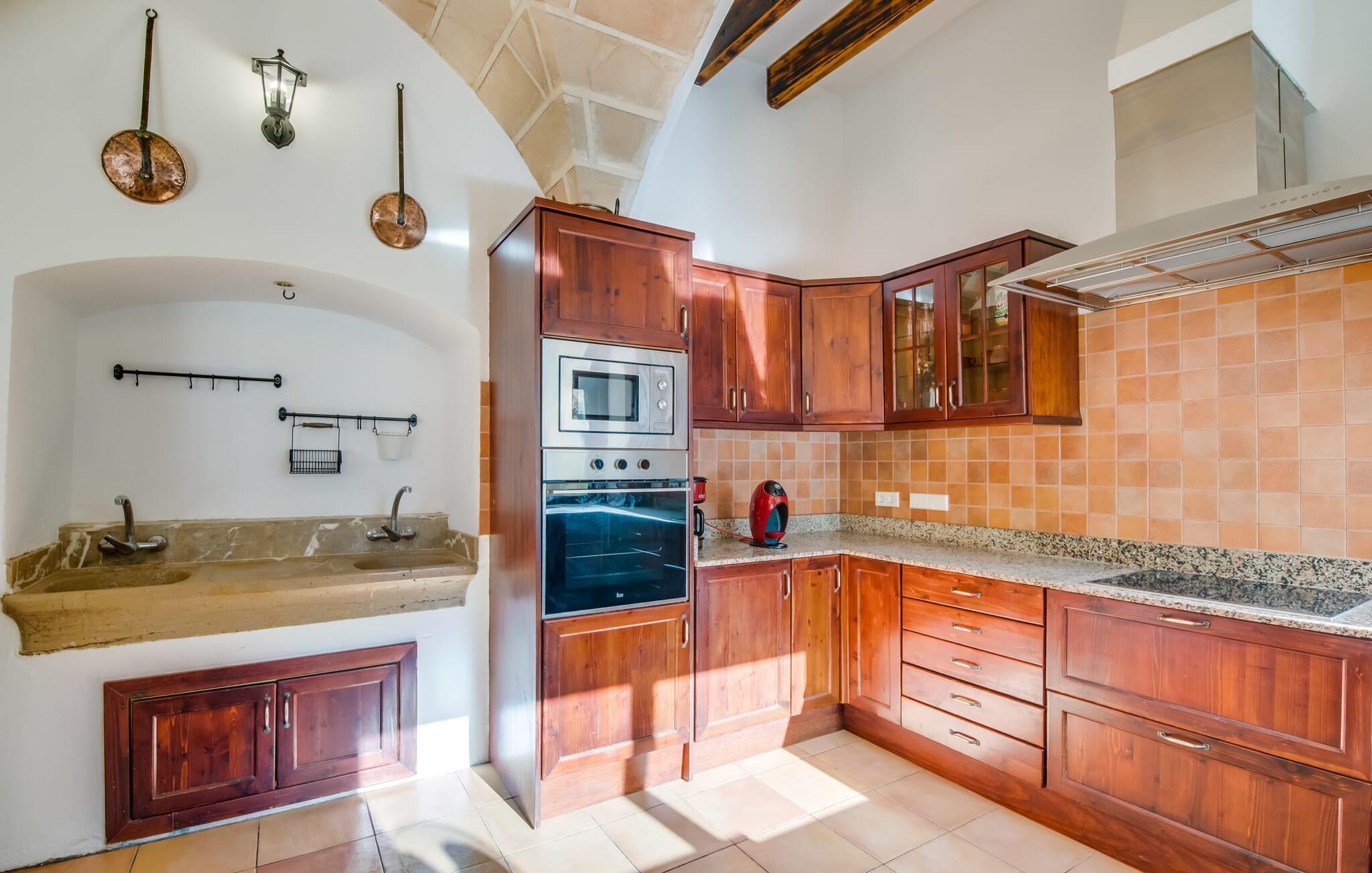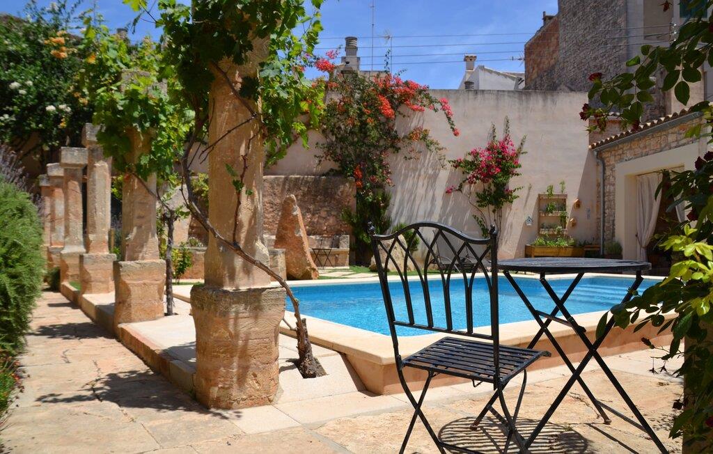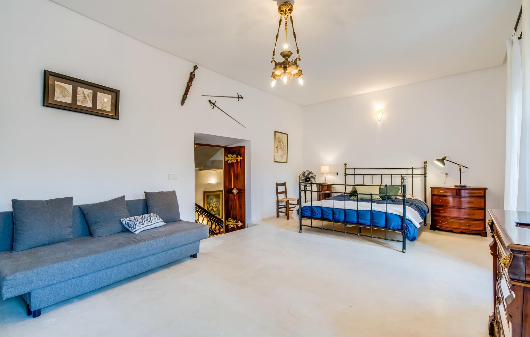 Attributten byhus beskriver næsten utilstrækkeligt den overvældende skønhed ved den traditionelle ejendom "Cal Senyor Damia". Denne statelige ejendom med mere end 600 m² boligareal er et af de gyldne sandstenshuse, som I normalt kun kan beundre udefra på en dagstur til Santanyí. Hvad man ikke kan se udefra, er den indre gårdhave, som er fuldstændig beskyttet mod indsyn, i al sin pragt. Dette tilbyder et privat tilbagetog i en utrolig charmerende atmosfære. I vil lære det "rigtige" Mallorca at kende i dets spændende historie. "Cal Senyor Damia" fortæller os noget om det ikke altid stille liv i byen - hvordan det var i går, og hvordan det stadig er i dag. Frodige blomstrende planter, citrustræer og utallige planter dekorerer den historiske sandsten og tilbyder jer vidunderlig privatliv. Flotte siddepladser langs gamle mure, terrasser, caféborde og en muret grill giver den indre gårdhave sit smukke udseende. Lyset og atmosfæren forstærkes af ældgamle relikvier som søjler, gårdspringvand, landbrugsredskaber og en overdækket lounge. I har valget mellem flere spiseområder for at nyde de solide lækkerier fra murstensgrillen på ethvert tidspunkt af dagen. Selvfølgelig kan I også gøre dette indendørs, i en atmosfære, der ikke er mindre euforisk. Mares buer, stenbrud, hvælvede lofter, forskudte niveauer er grundlaget for dette traditionelle mallorcanske feriehus af absolut højeste klasse. Kombinationen mellem antikke detaljer og moderne komfort, mellem barok og moderne design, er særlig vellykket. I skal blot bukke under for denne charmerende offensiv, der venter jer på tværs af hele lejeområdet på generøse 636 m² fordelt på fire etager. I stueplan er der foyer svarende til bygningens status, lys stue med udsigt til den indre gårdhave, hyggelig pejsestue, fuldt udstyret køkken-alrum med de mest moderne bekvemmeligheder samt gæstetoilet. Sovepladserne er fordelt på de tre øverste etager i etager. Soveværelserne opfylder ikke kun deres oprindelige formål, men er også steder for tilbagetog på grund af deres størrelse. De er også udstyret med tv, nogle med pejse, siddepladser og walk-in closet mv. Tagstudiet byder også på et kæmpe værelse med fitness- og legeredskaber på baggrund af en stor terrasse. Sørg for at tage et kig på badeværelserne – cool design med et konkret look og highlights som brusekabiner og badekarret indlejret i gulvet venter på jer. Dette spektakulære rækkehus med sin gennemtænkte indretning er ideel til flere familier - nyd jeres ferie! Det nænsomt renoverede feriehus "Cal Senyor Damia" giver et indblik i Mallorcas byliv med sin historisk designede, ø-typiske gårdhave. Beliggende midt i den rolige kunstnerlandsby Santanyí i den sydøstlige del af Mallorca, kan I lære dette populære sted at kende til fods. I bør ikke gå glip af det ugentlige marked på lørdag. På grund af den centrale beliggenhed behøver I kun lejebilen for at udforske området eller besøge den turkise badebugt Cala Santanyí, som kun ligger 8 minutter væk.