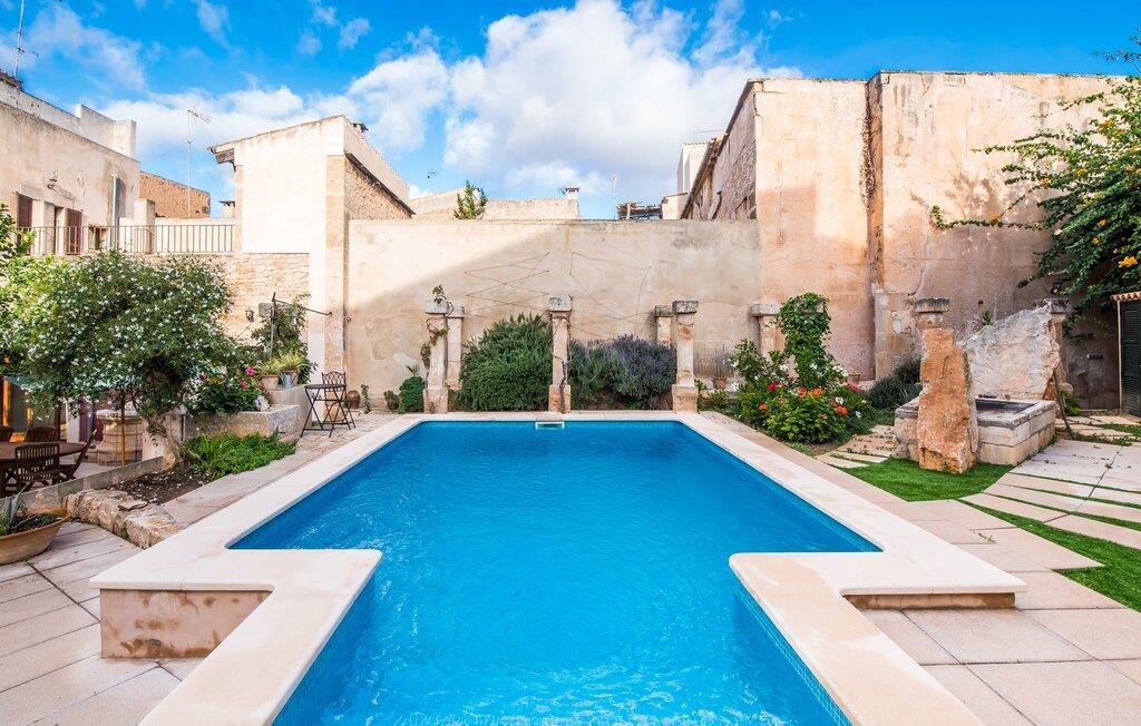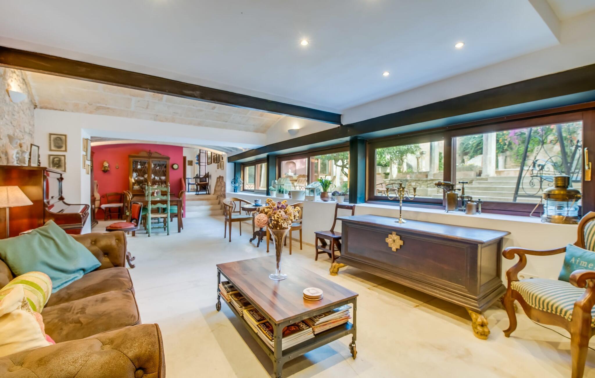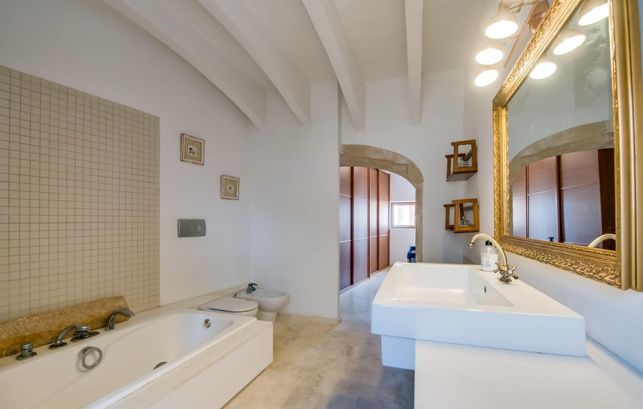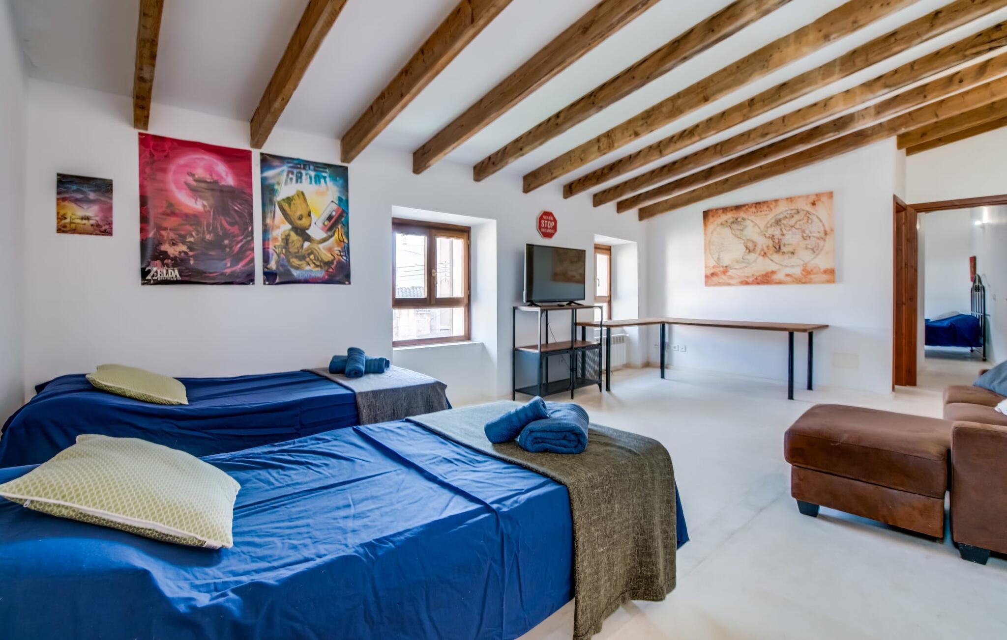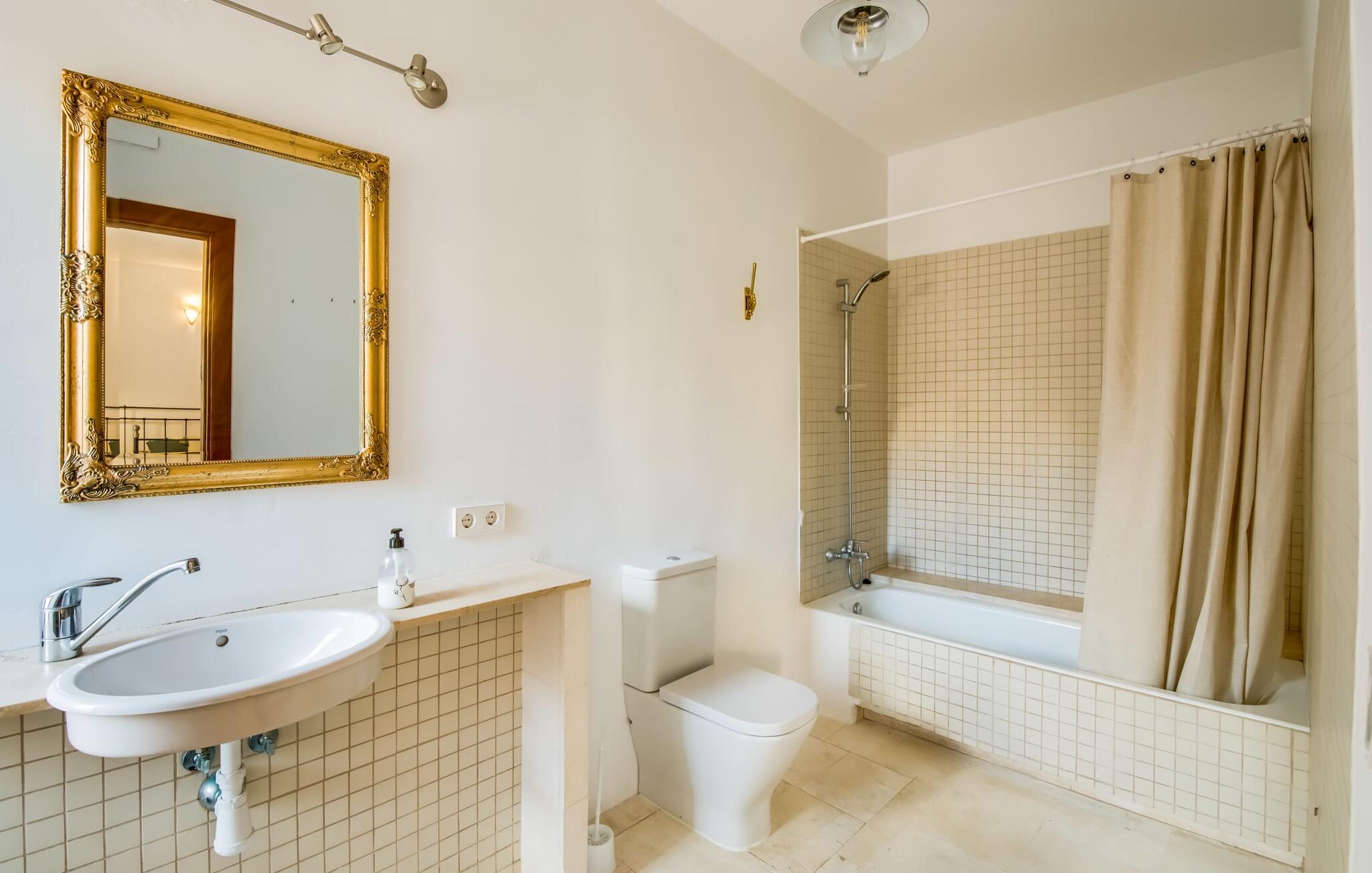 Attributten byhus beskriver næsten utilstrækkeligt den overvældende skønhed ved den traditionelle ejendom "Cal Senyor Damia". Denne statelige ejendom med mere end 600 m² boligareal er et af de gyldne sandstenshuse, som I normalt kun kan beundre udefra på en dagstur til Santanyí. Hvad man ikke kan se udefra, er den indre gårdhave, som er fuldstændig beskyttet mod indsyn, i al sin pragt. Dette tilbyder et privat tilbagetog i en utrolig charmerende atmosfære. I vil lære det "rigtige" Mallorca at kende i dets spændende historie. "Cal Senyor Damia" fortæller os noget om det ikke altid stille liv i byen - hvordan det var i går, og hvordan det stadig er i dag. Frodige blomstrende planter, citrustræer og utallige planter dekorerer den historiske sandsten og tilbyder jer vidunderlig privatliv. Flotte siddepladser langs gamle mure, terrasser, caféborde og en muret grill giver den indre gårdhave sit smukke udseende. Lyset og atmosfæren forstærkes af ældgamle relikvier som søjler, gårdspringvand, landbrugsredskaber og en overdækket lounge. I har valget mellem flere spiseområder for at nyde de solide lækkerier fra murstensgrillen på ethvert tidspunkt af dagen. Selvfølgelig kan I også gøre dette indendørs, i en atmosfære, der ikke er mindre euforisk. Mares buer, stenbrud, hvælvede lofter, forskudte niveauer er grundlaget for dette traditionelle mallorcanske feriehus af absolut højeste klasse. Kombinationen mellem antikke detaljer og moderne komfort, mellem barok og moderne design, er særlig vellykket. I skal blot bukke under for denne charmerende offensiv, der venter jer på tværs af hele lejeområdet på generøse 636 m² fordelt på fire etager. I stueplan er der foyer svarende til bygningens status, lys stue med udsigt til den indre gårdhave, hyggelig pejsestue, fuldt udstyret køkken-alrum med de mest moderne bekvemmeligheder samt gæstetoilet. Sovepladserne er fordelt på de tre øverste etager i etager. Soveværelserne opfylder ikke kun deres oprindelige formål, men er også steder for tilbagetog på grund af deres størrelse. De er også udstyret med tv, nogle med pejse, siddepladser og walk-in closet mv. Tagstudiet byder også på et kæmpe værelse med fitness- og legeredskaber på baggrund af en stor terrasse. Sørg for at tage et kig på badeværelserne – cool design med et konkret look og highlights som brusekabiner og badekarret indlejret i gulvet venter på jer. Dette spektakulære rækkehus med sin gennemtænkte indretning er ideel til flere familier - nyd jeres ferie! Det nænsomt renoverede feriehus "Cal Senyor Damia" giver et indblik i Mallorcas byliv med sin historisk designede, ø-typiske gårdhave. Beliggende midt i den rolige kunstnerlandsby Santanyí i den sydøstlige del af Mallorca, kan I lære dette populære sted at kende til fods. I bør ikke gå glip af det ugentlige marked på lørdag. På grund af den centrale beliggenhed behøver I kun lejebilen for at udforske området eller besøge den turkise badebugt Cala Santanyí, som kun ligger 8 minutter væk.