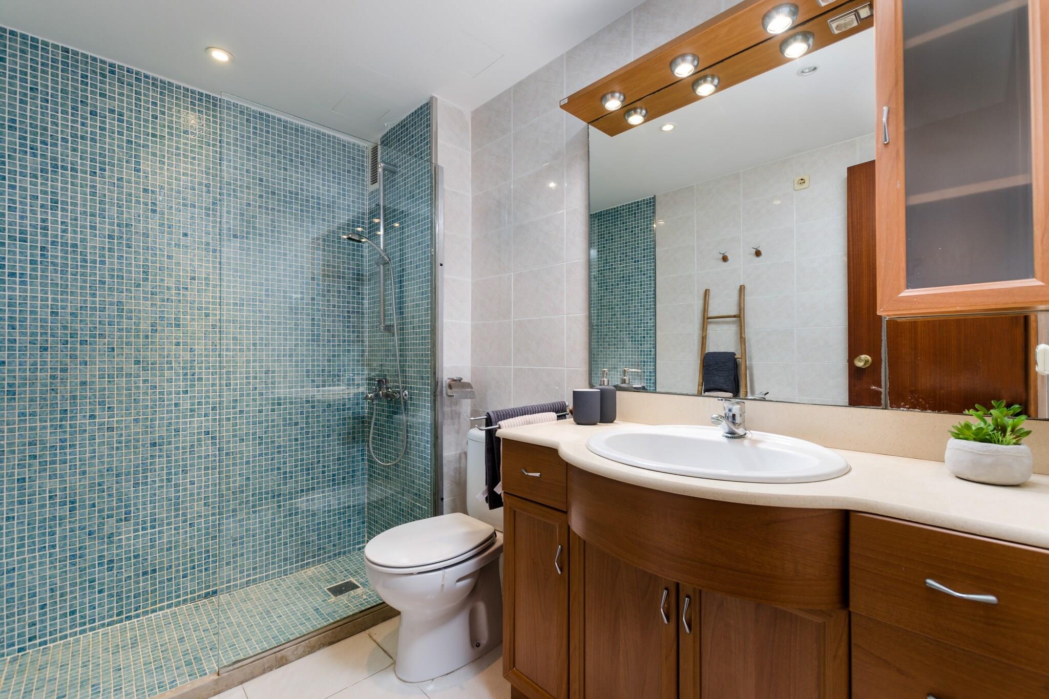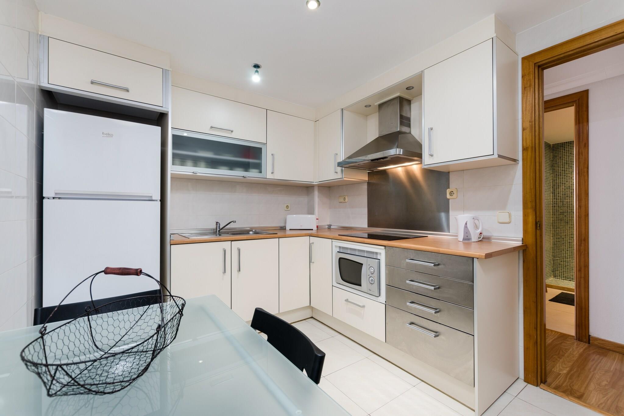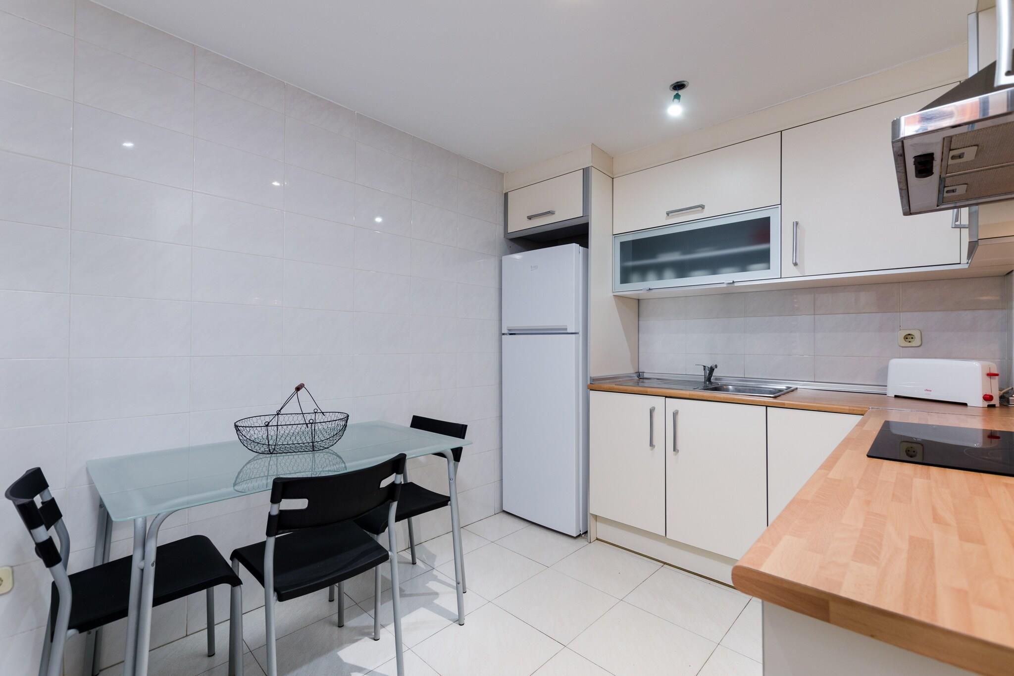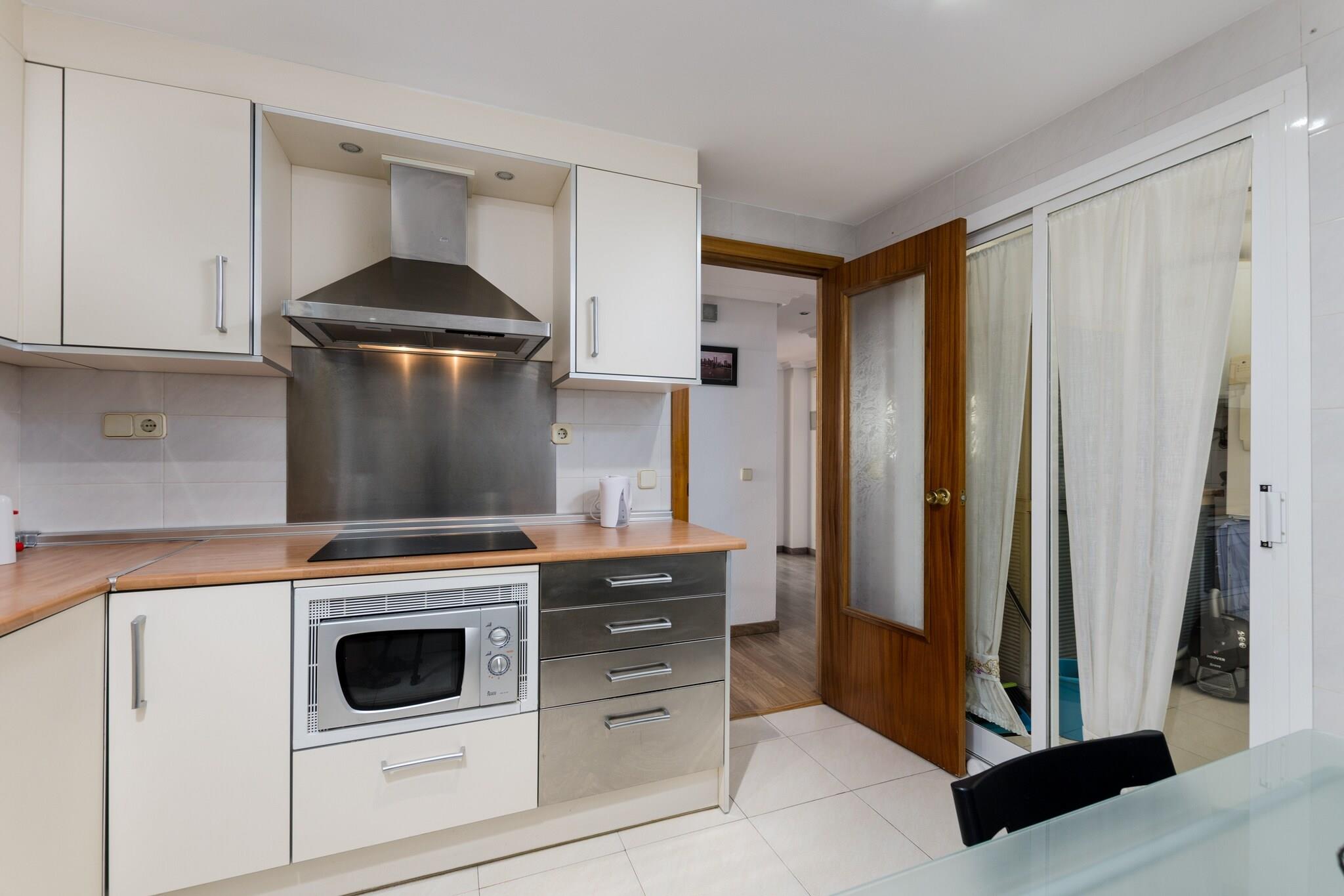 Udsigt til morgenmad ved havet Vågn op til de fredfyldte seværdigheder på Cala Bonas uberørte strand og nærliggende bjerge, hvor hver morgen inviterer dig til at nyde morgenmaden på terrassen med en blid kystbrise. Kun få skridt fra kysten giver denne kystlejlighed nem adgang til det bløde sand og det rolige vand, hvilket gør den ideel til solbadning, svømning eller en fredelig spadseretur ved havet. Lyst moderne interiør Lejligheden ligger på anden sal med elevator og kombinerer modernitet, varme og rummelighed. Opholdsstuen byder på en komfortabel sofa og satellit-tv til afslapning efter at have tilberedt måltider i det fuldt udstyrede køkken med keramisk kogeplade, mikroovn, kaffemaskine og alle nødvendige redskaber. To soveværelser inkluderer en dobbeltseng og en trilleseng, med rigelig garderobeplads. Et badeværelse med bruser og toilet betjener lejligheden. Familiefaciliteter såsom barneseng, høj stol, vaskemaskine, tørretumbler, strygebræt og bord er til rådighed for ekstra komfort. Central kystplacering Cala Bona tilbyder en livlig, men afslappet atmosfære med restauranter, barer og supermarkeder inden for gåafstand. Området er ideelt til lange gåture langs havnefronten eller udforske lokale butikker og caféer. Golfentusiaster kan nå Club de Golf Son Servera på kun 4 km. Offentlig transport, færgeforbindelse og lufthavnen er bekvemt i nærheden, hvilket gør denne lejlighed til en godt forbundet base for at nyde Mallorcas østkyst. Kæledyr og arrangementer er ikke tilladt.