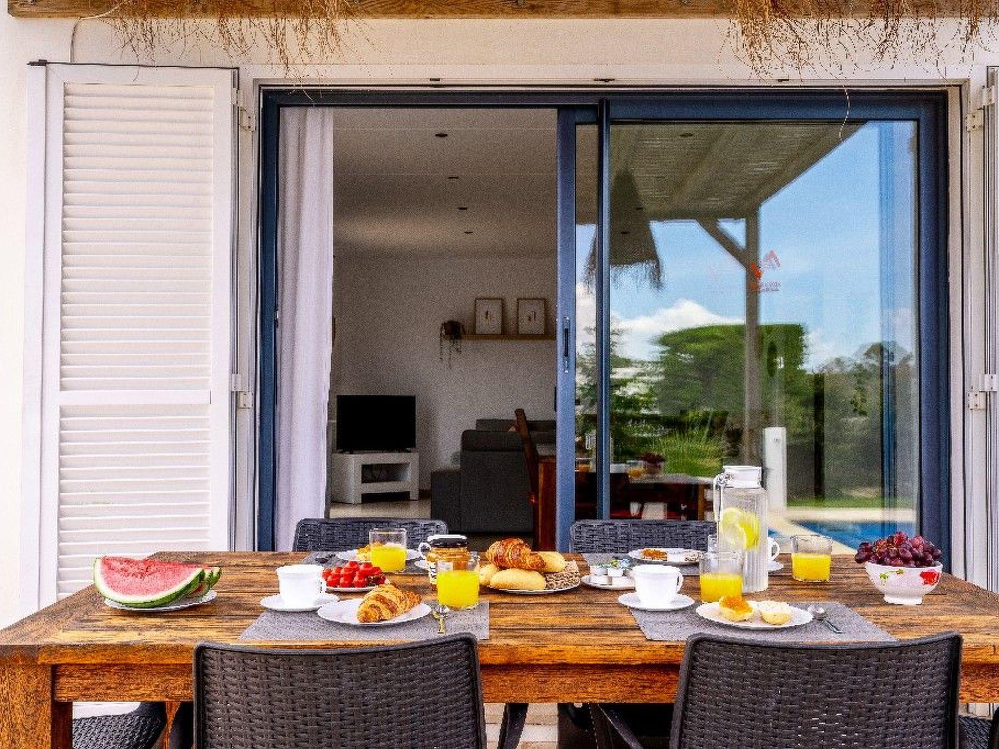 The outdoor area of the villa is a true oasis of relaxation. The private garden with its manicured lawn and the attractive pool invite you to linger and sunbathe. An outdoor shower and comfortable sun loungers are available, while the brick-built barbecue area and table tennis table provide hours of fun. The terrace is the ideal place to enjoy meals together outdoors and experience the peaceful atmosphere.