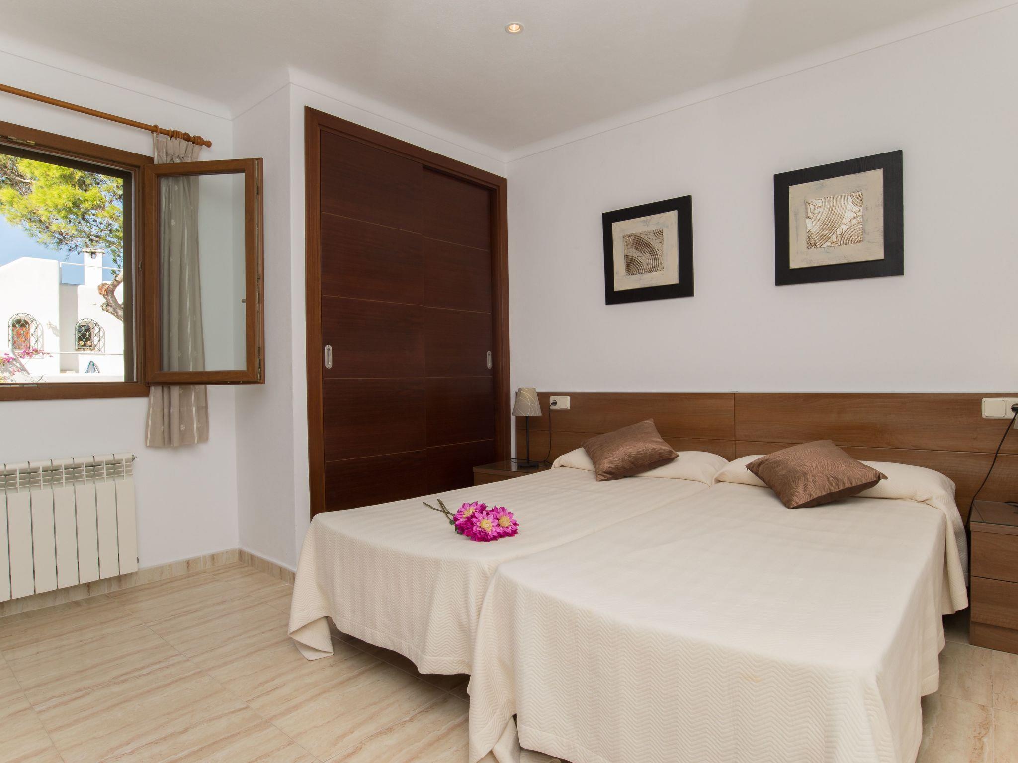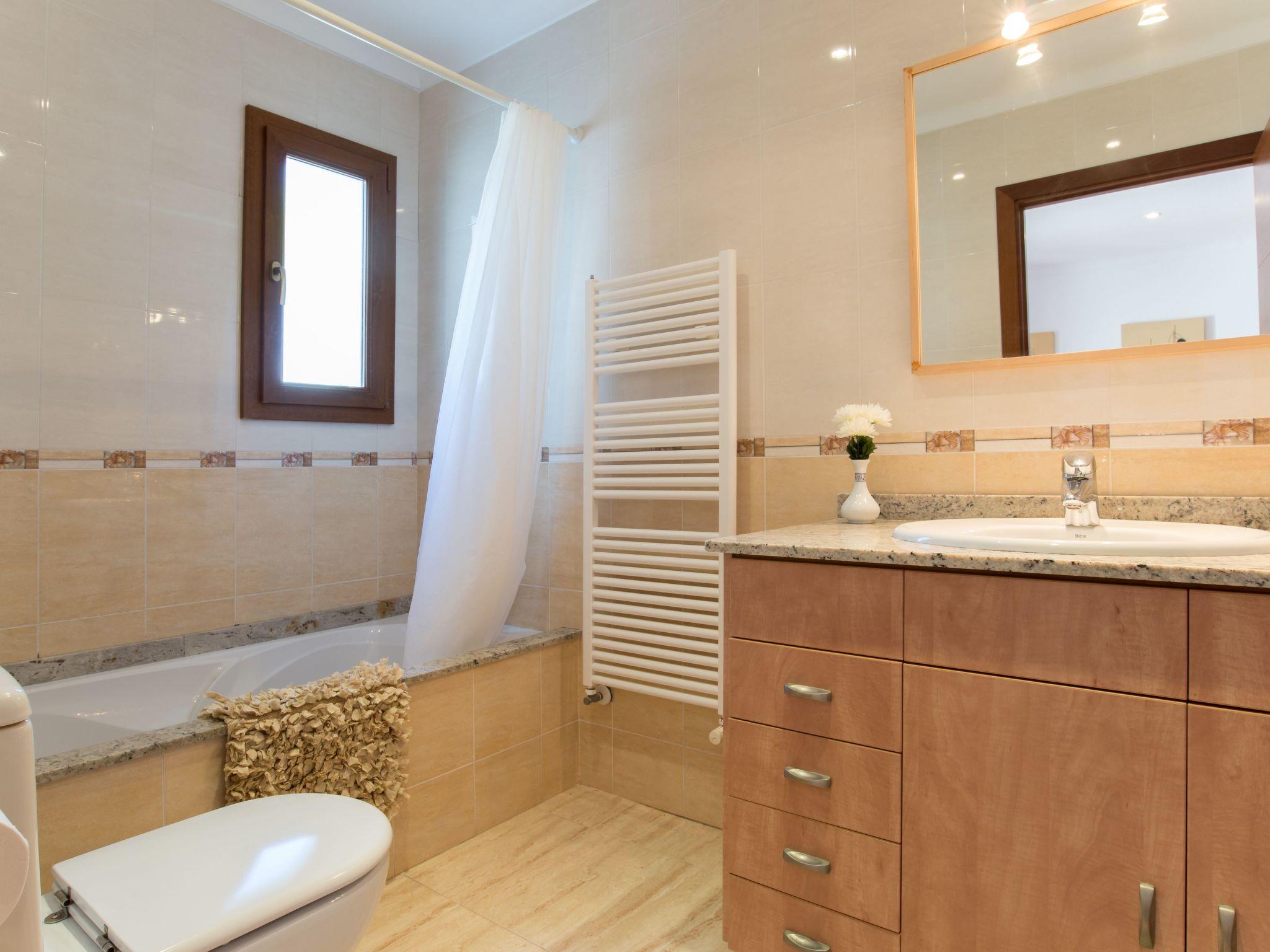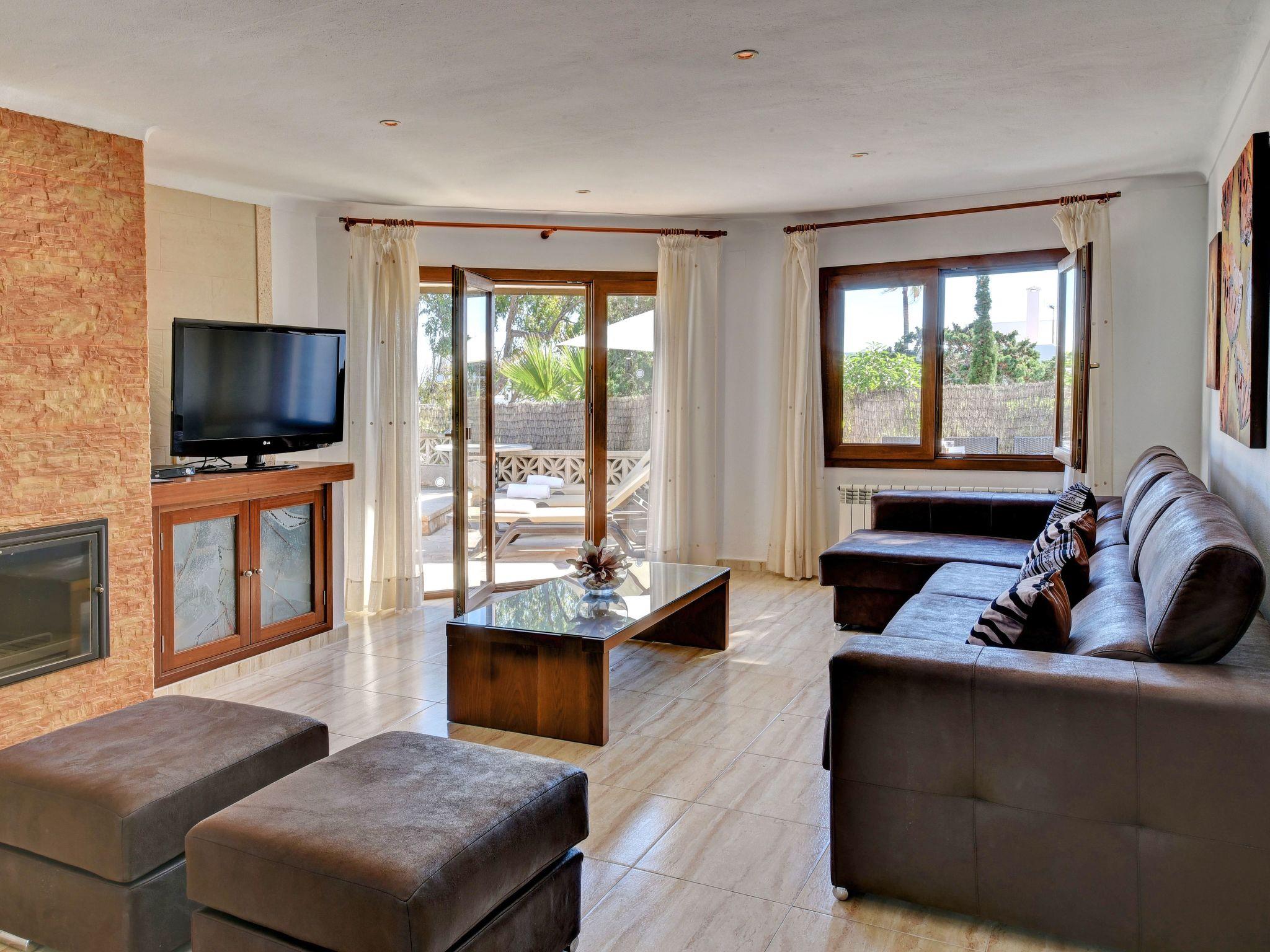 The villa offers a living room and dining room on the ground floor, each with a door to the pool terrace. From the dining room there is access to the spacious kitchen. There are also 2 bedrooms, one with a double bed and the other with two single beds. Both have an en-suite bathroom. On the upper floor there is a second living room with access to a small terrace and 3 bedrooms each with en-suite bathroom. Two bedrooms are equipped with 2 single beds and one with a double bed, the bedrooms have air conditioning with sensors, they only work when the doors and windows are completely closed, air conditioning with fixed and limited hours of use.