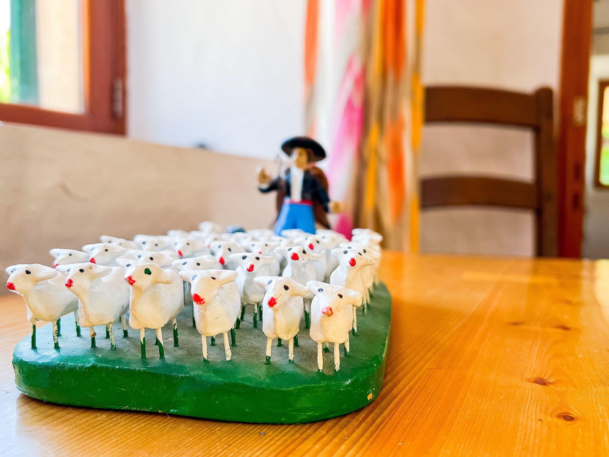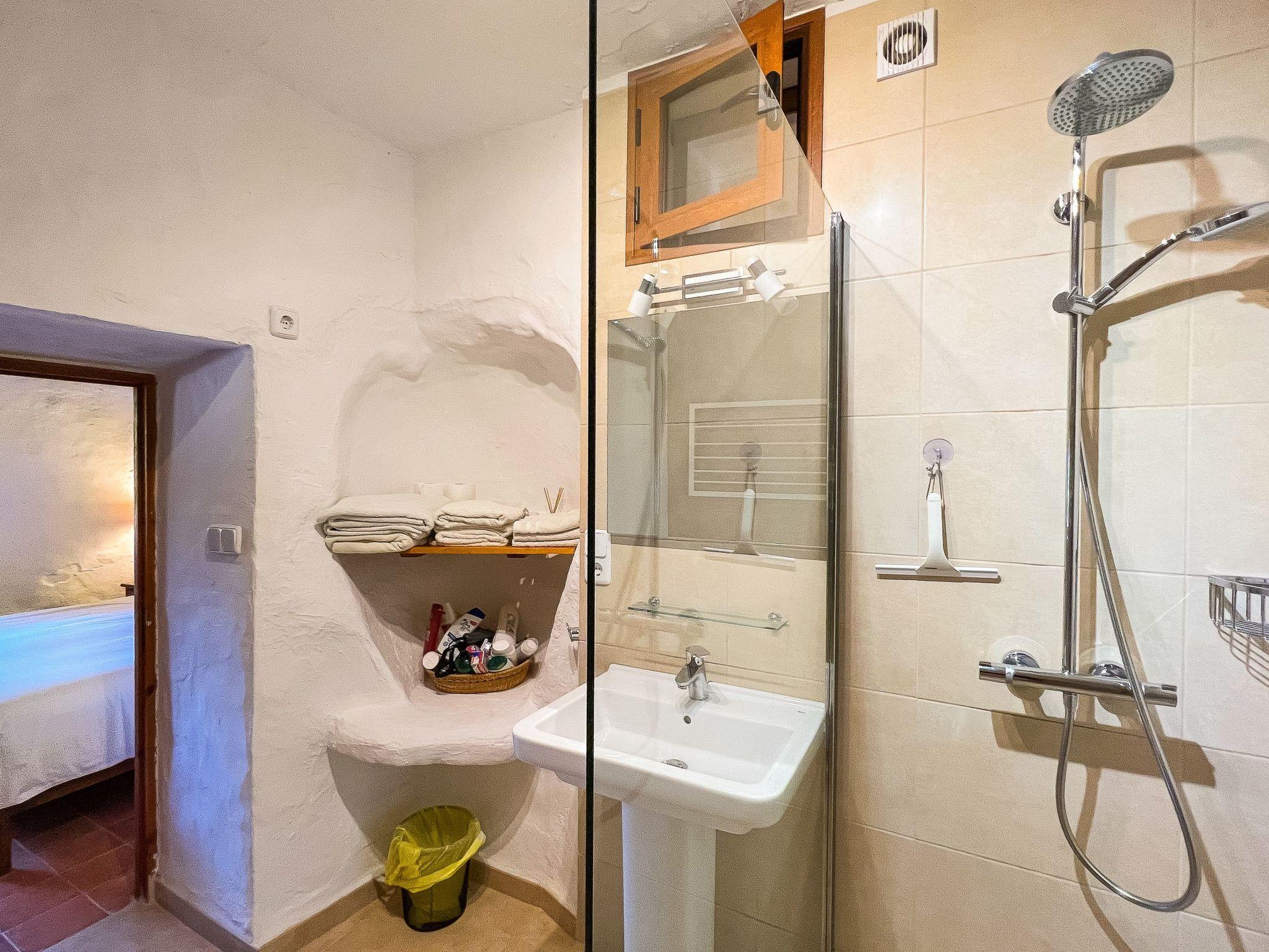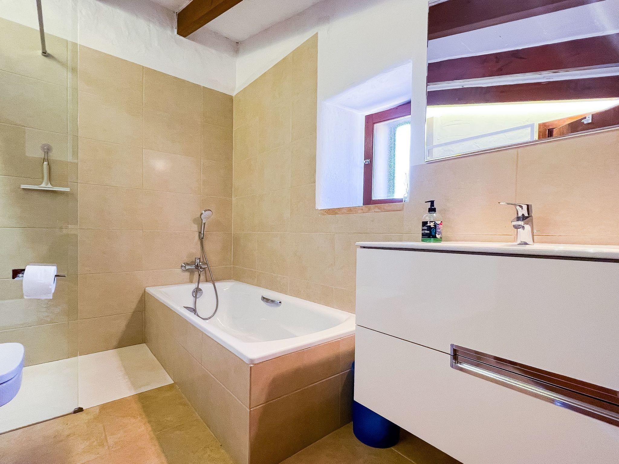 Cosy farmhouse with a beautiful garden. When we enter the house, we arrive in a bright living-dining area. On this floor we also have a fully equipped kitchen, a guest toilet and the master bedroom with en suite shower. On the first floor there are three more bedrooms, two of them with two single beds and another with a double bed. These bedrooms share a bathroom with shower and bath.Air conditioning in the bedrooms with fixed and limited schedule from 21.00 to 08.00.If your stay is longer than a week and you wish to change the bed linen/towels, this is only possible for an extra fee.