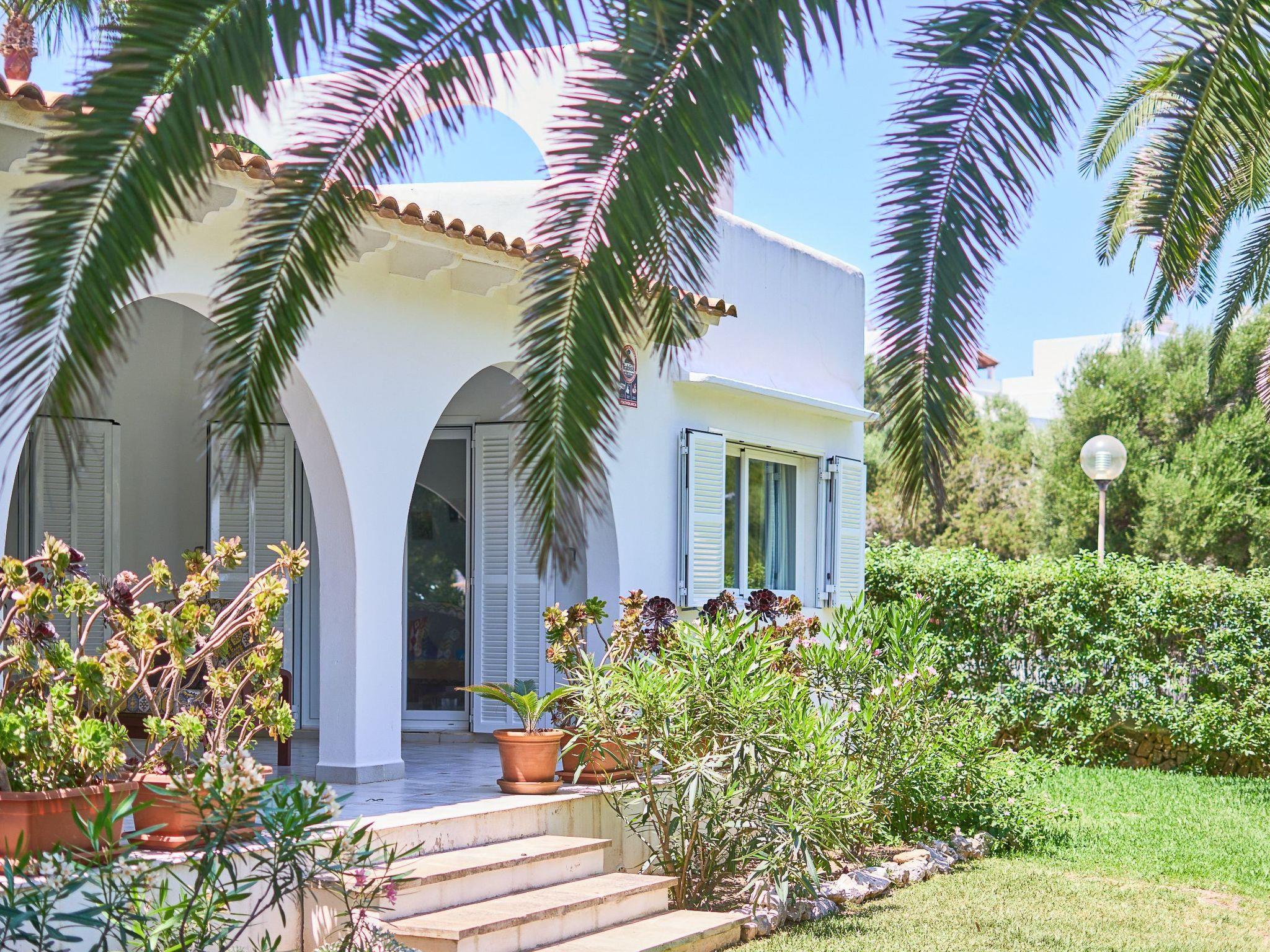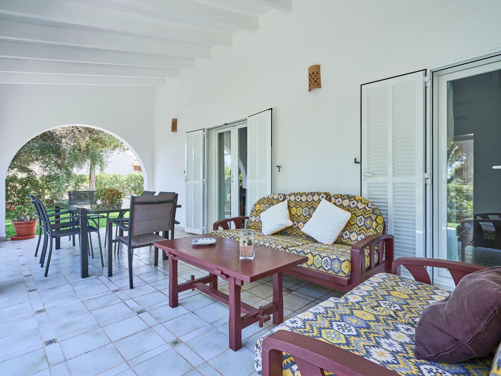 The house has a large, well-kept garden with tall palm trees and old pine trees that provide shade in pleasant proportions. To the side of the house is a lovely area with a large covered terrace, sofas for chilling out and a table and chairs for al fresco dining. The garden area, where the beautiful child-safe pool with brick steps (10m x 5m - saltwater pool) and outdoor shower is located, offers another terrace for sunbathing with deckchairs and another small table with chairs. A lovely place to enjoy the long summer days or read a good book. A brick-built outdoor barbecue can be used. The pool fence is fixed and cannot be removed