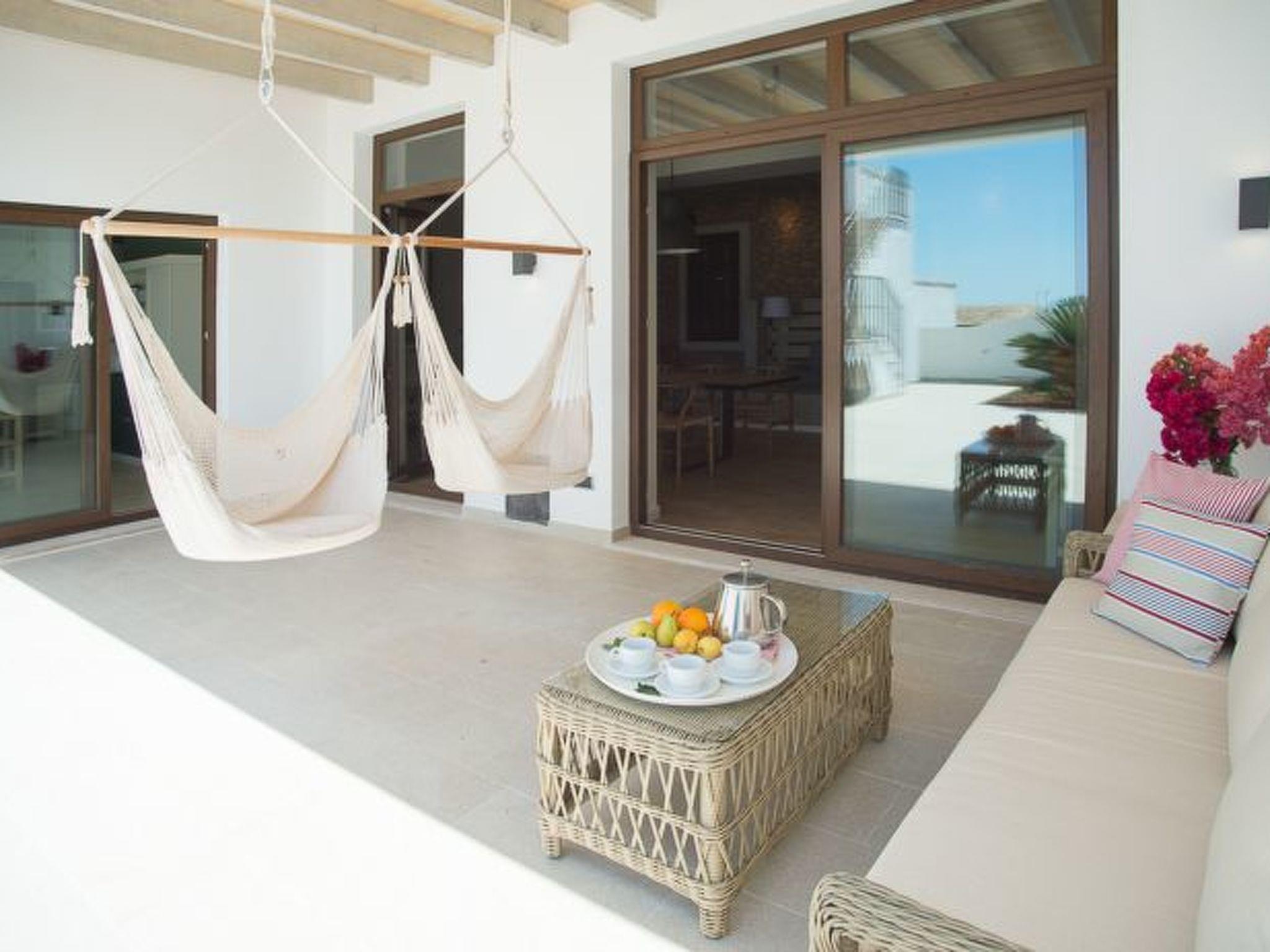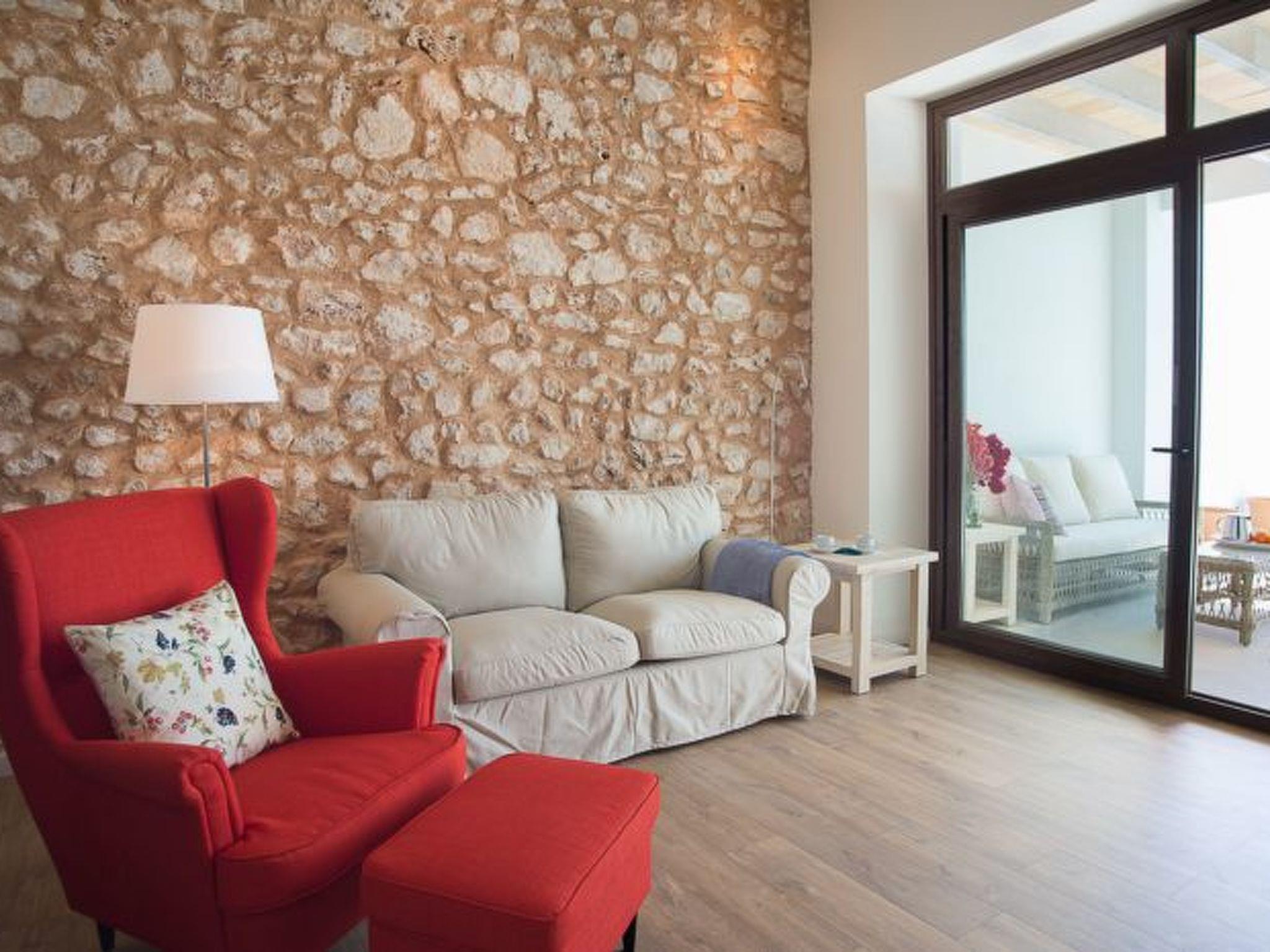 Ferrer de S'Horta is a spacious house, newly renovated and equipped to a high standard. Modern furniture and decoration are tastefully combined with high ceilings with exposed concrete beams and some walls clad with dry stone, giving the house a rustic ambience. The entrance is via the pool area. Sliding glass doors lead into the open, well-equipped, bright kitchen with cooking island. From here we reach the spacious, bright and open-plan living/dining area. Two areas have cosy sofas and a long wooden table invites you to enjoy meals together. Sliding glass doors lead out onto the terrace. Two bedrooms with access to the pool, each with 2 single beds and en suite shower rooms are located on the ground floor, which is completed by a guest toilet and service room. A staircase leads from the living/dining area to the first floor. Here there are three further bedrooms, each with two single beds and en suite shower room and access to a terrace with sun loungers and parasols, the perfect place to relax and enjoy the views of the countryside and the sea in the distance. Heating and air conditioning in the bedrooms with fixed hours of use from 21.00 h - 09.00 h.