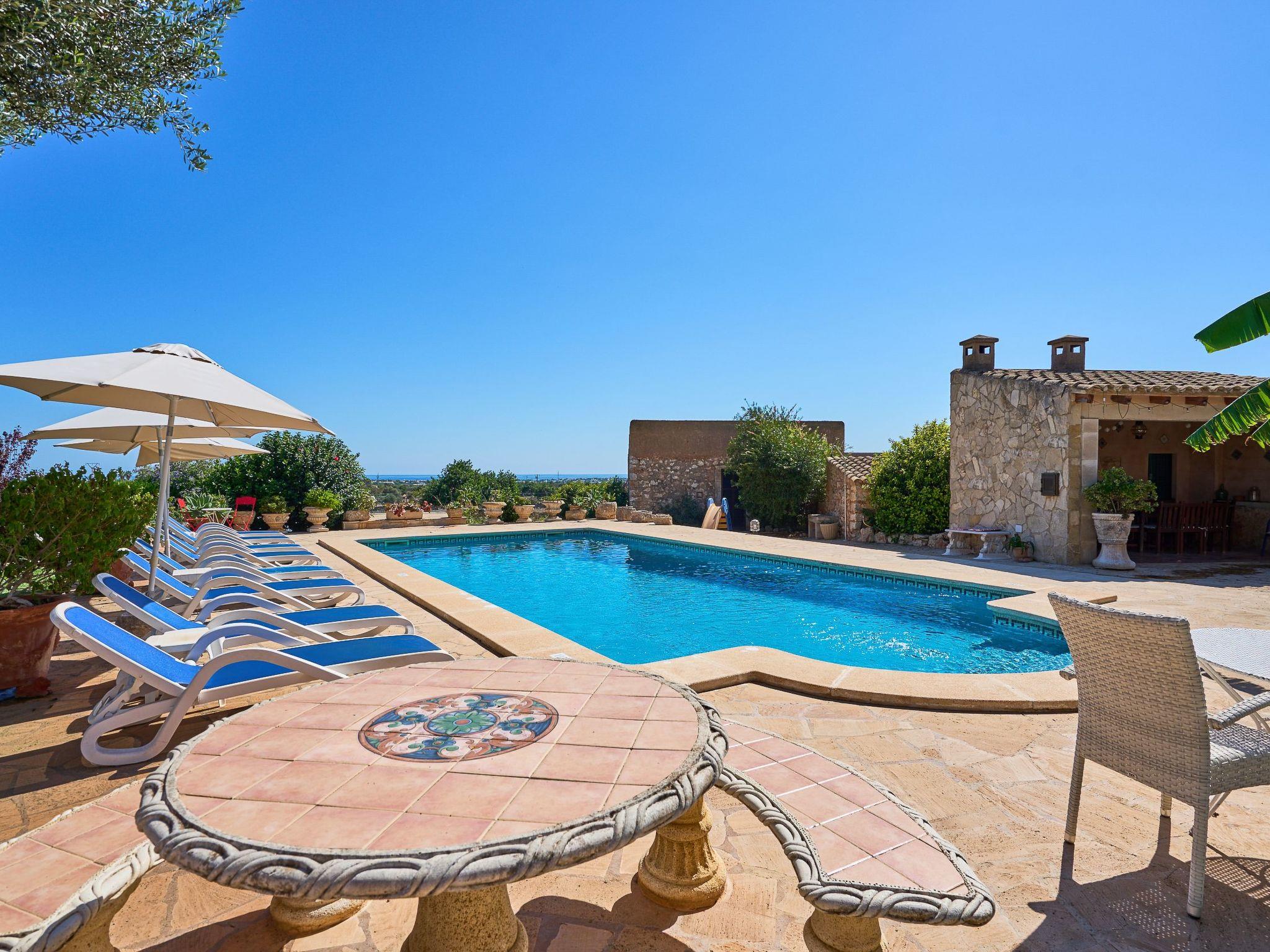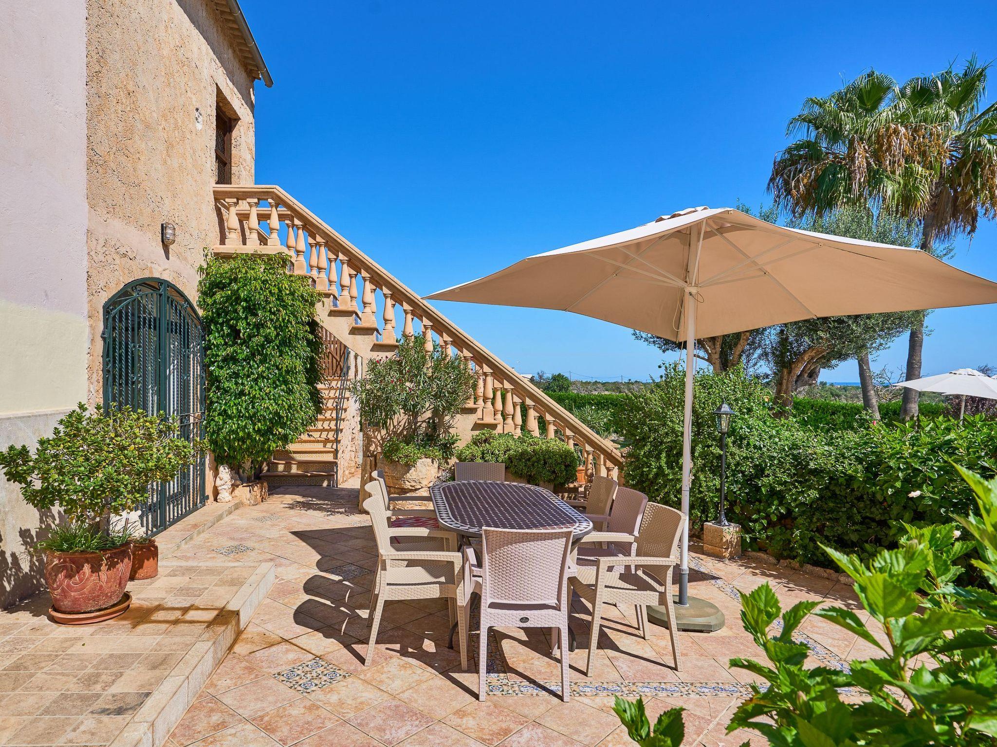 This quietly situated traditional country house is located just outside the village of Calonge and offers wonderful views across the countryside to the sea. In the village of Calonge, just 800 metres away, there is a small supermarket, several cafés and bars and several good restaurants and decoration shops. The lively tourist resort of Cala D'Or with its numerous small sandy bays, a variety of restaurants, bars and nightlife as well as shops, souvenir shops and boutiques is only approx. 4.5 km away. The exclusive marina of Cala D'Or offers, in addition to numerous excellent restaurants, various boat charters and boat tours along the picturesque south-east coast. Various other water sports are offered at the small bays. The Vall D'Or Golf Club is less than 10 minutes away by car and has developed into a meeting point for non-golfers with its restaurants and inviting terrace.