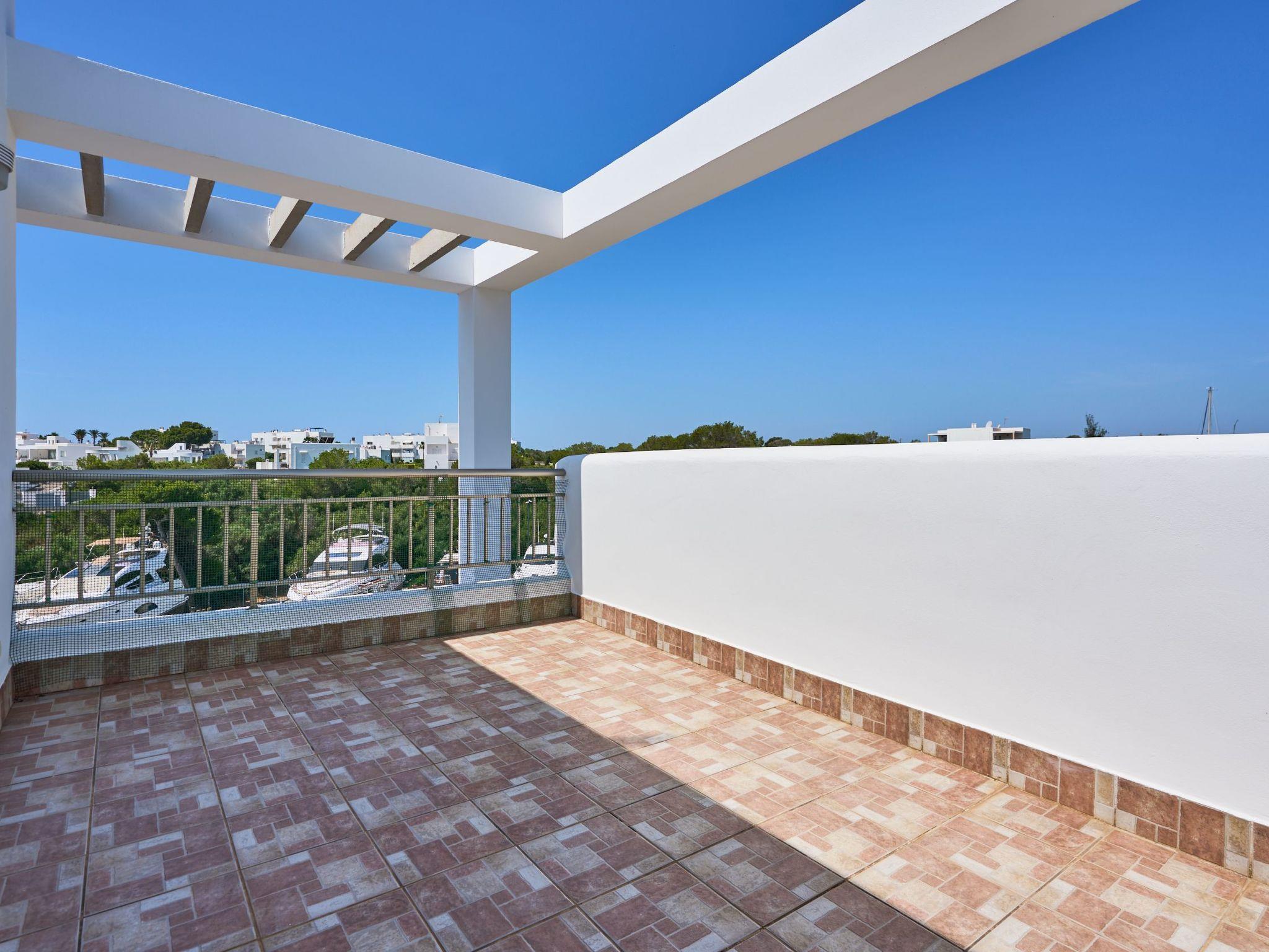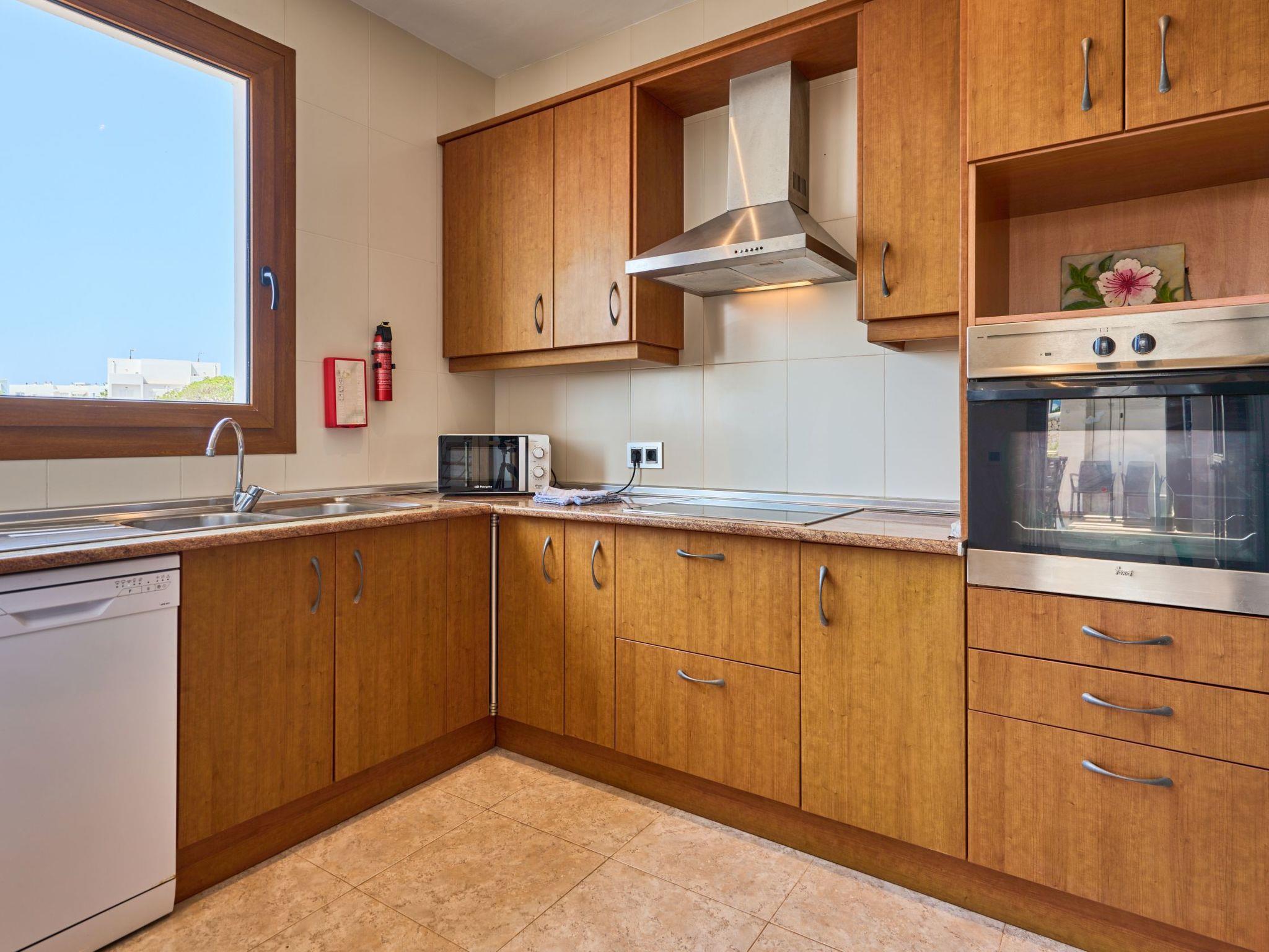 Semi-detached house on three floors. A few steps lead to the entrance of the villa on the ground floor (middle floor). On this level there is an open-plan dining room with access to the terrace. Kitchen and laundry room are accessible from the dining room. Guest toilet. A staircase leads to the first floor where there is a bedroom with two single beds and an ensuite bathroom with shower. This bedroom has access to two terraces. On the lower floor there is a double bedroom with en-suite bathroom with shower and two twin bedrooms sharing a separate bathroom with bathtub. These bedrooms have access to the pool terrace.