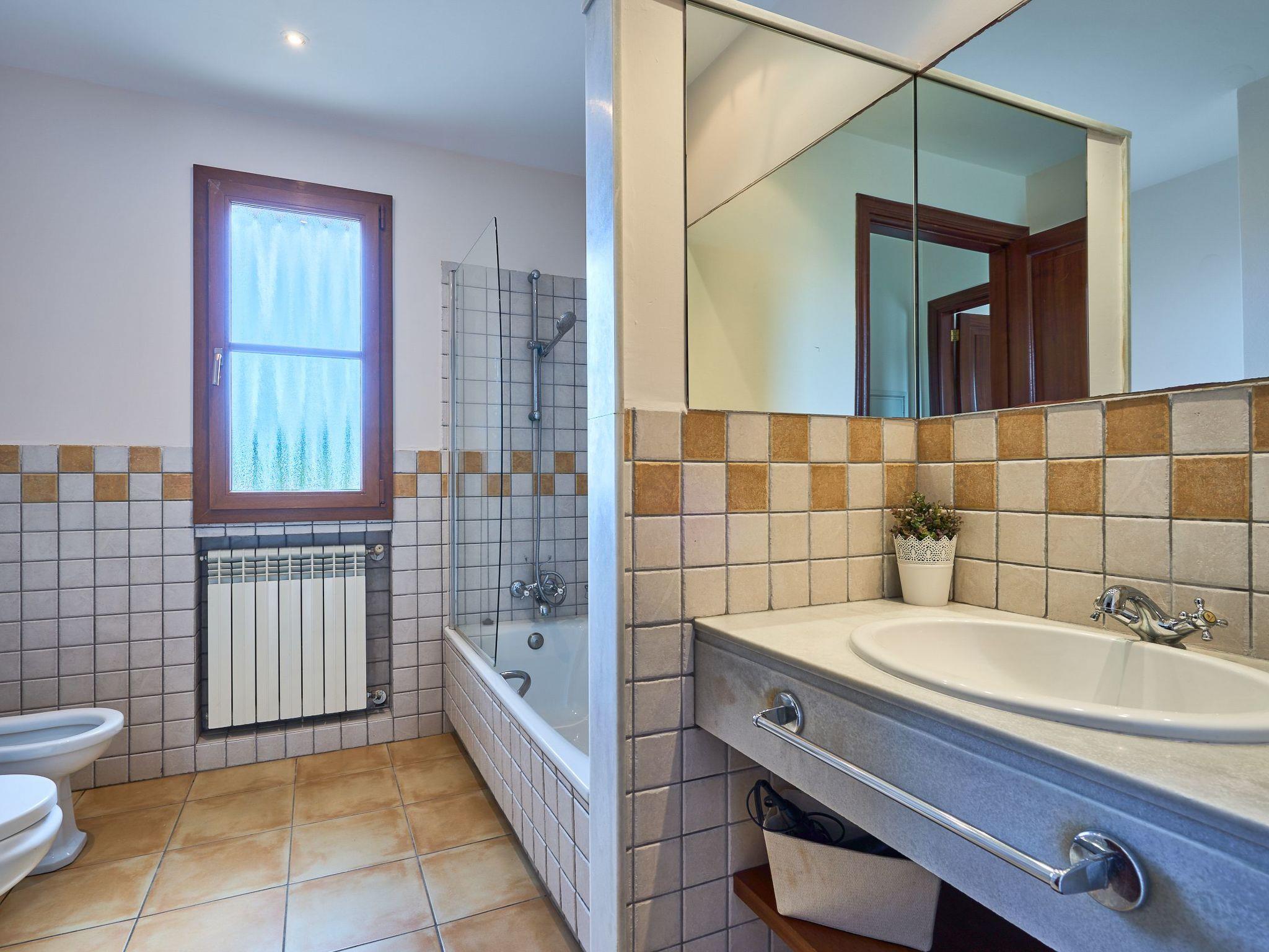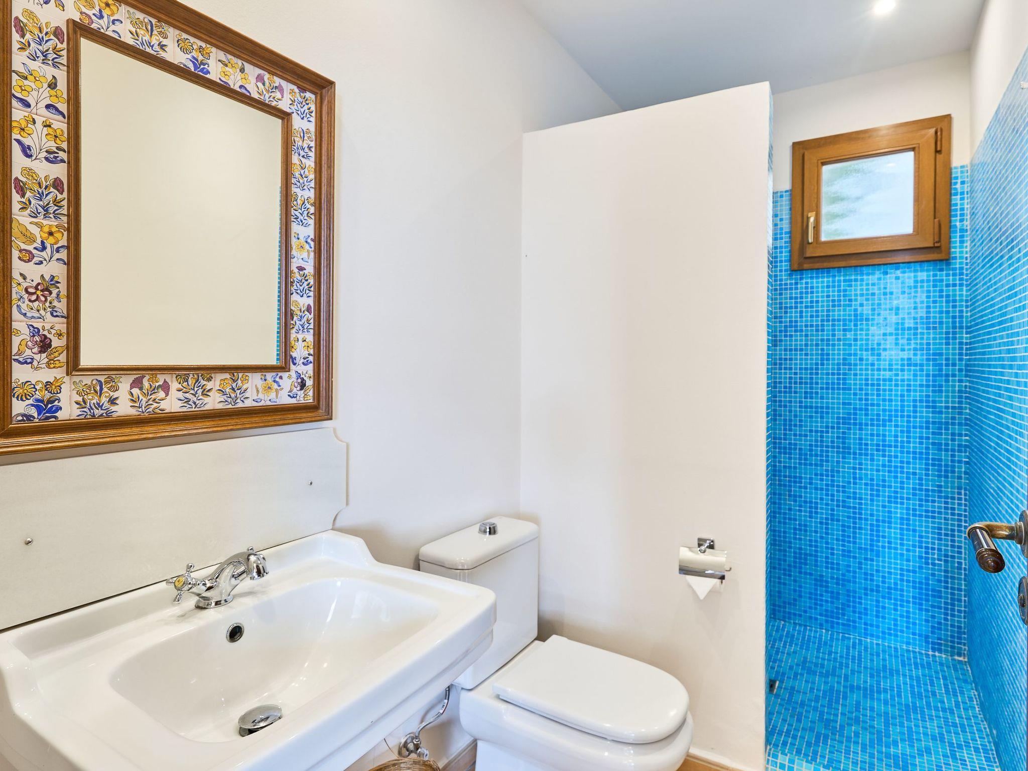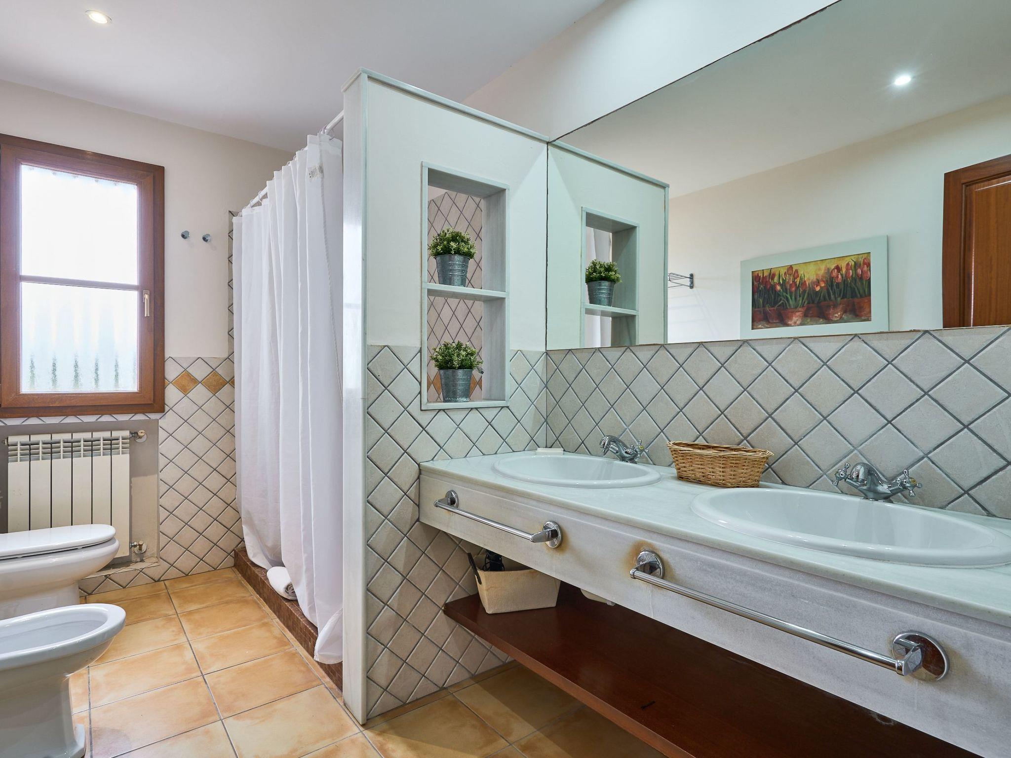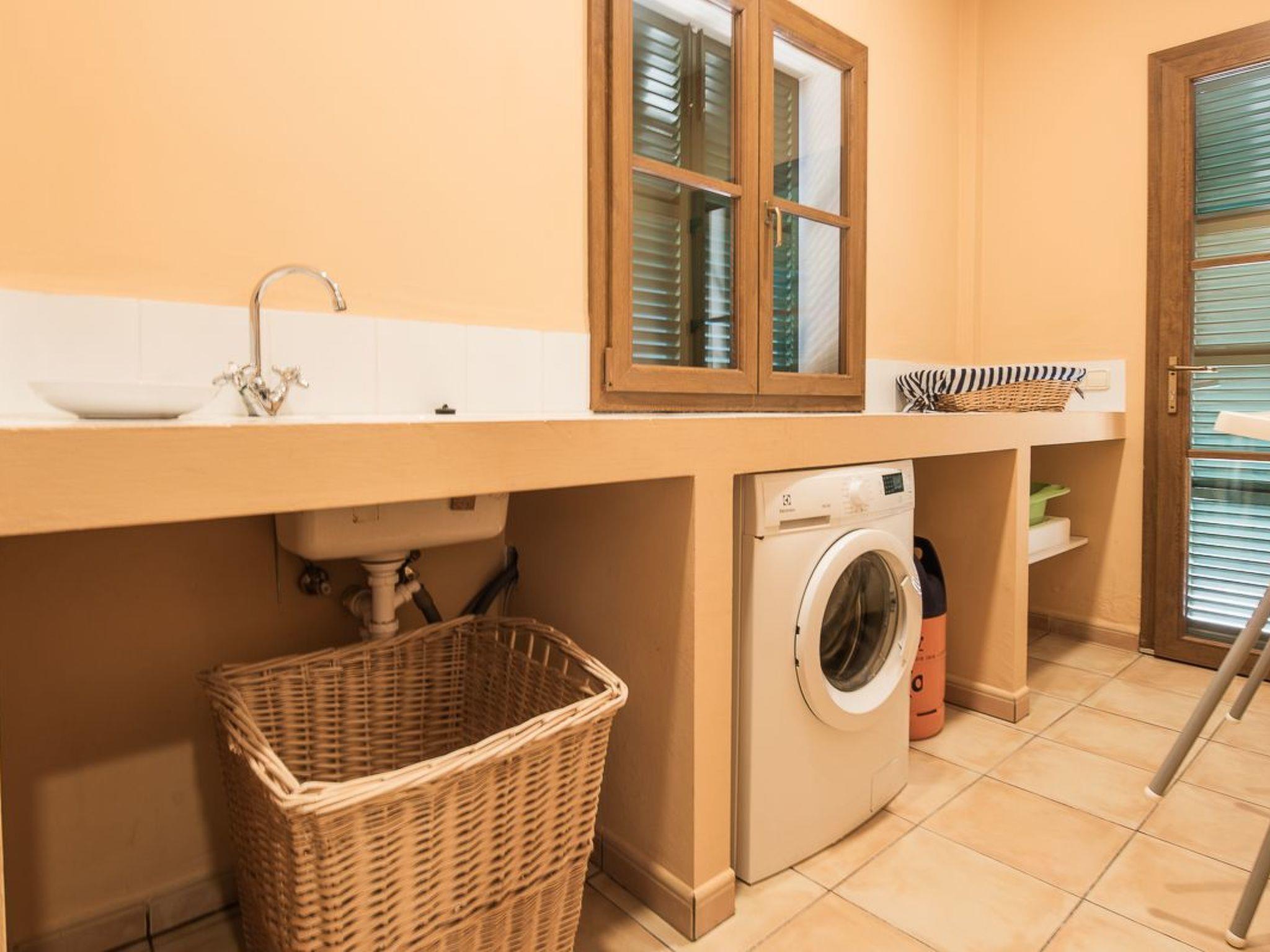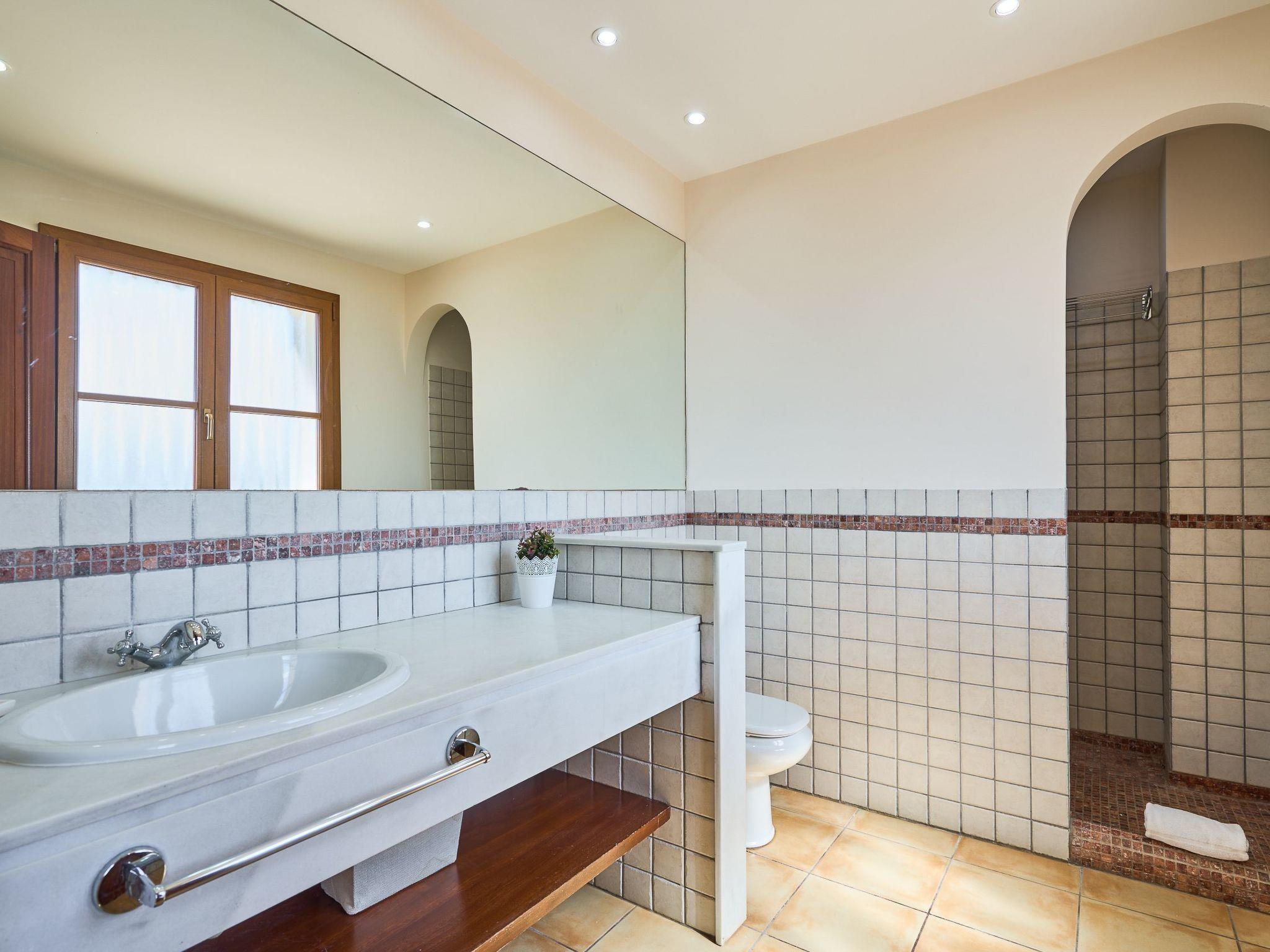 The finca extends generously over two floors. On the ground floor there is a large living/dining room with sofas and an oak dining table. Access to the pool terrace. Fully equipped kitchen, breakfast table and pantry with additional fridge. Exit to the covered terrace with barbecue. Laundry room. On the ground floor there are two bedrooms with two single beds each and a bathroom.