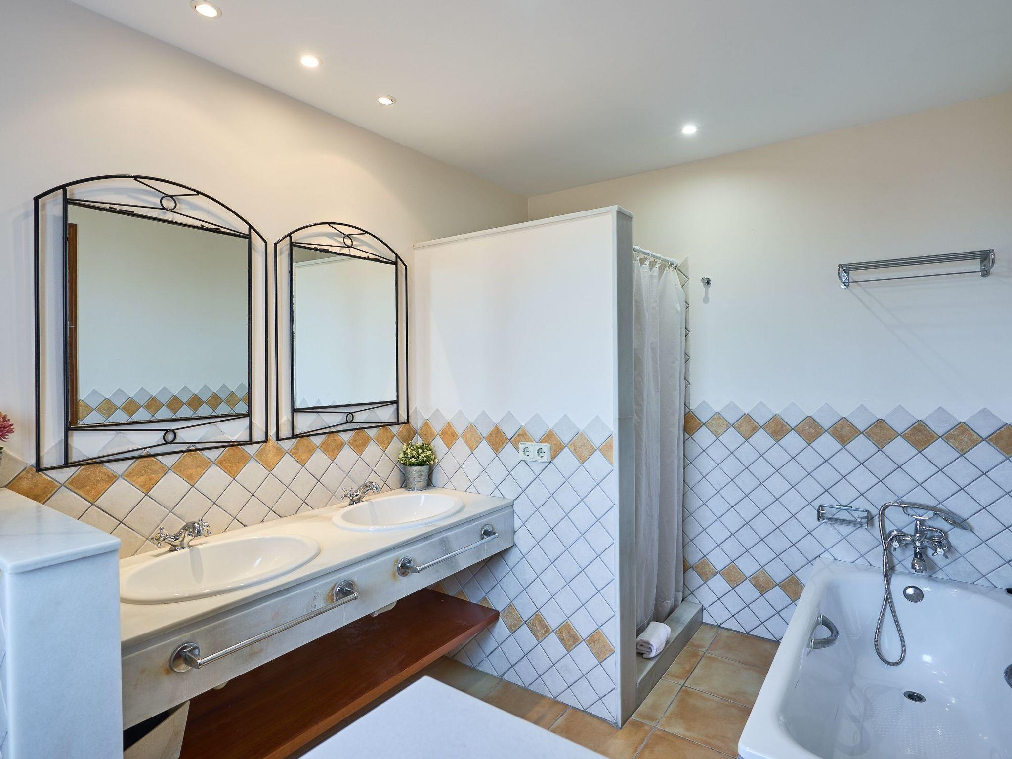 There are four bedrooms on the first floor. The master bedroom has a dressing room, a full en-suite bathroom and access to a spacious upper private terrace with table and chairs overlooking the pool and garden.