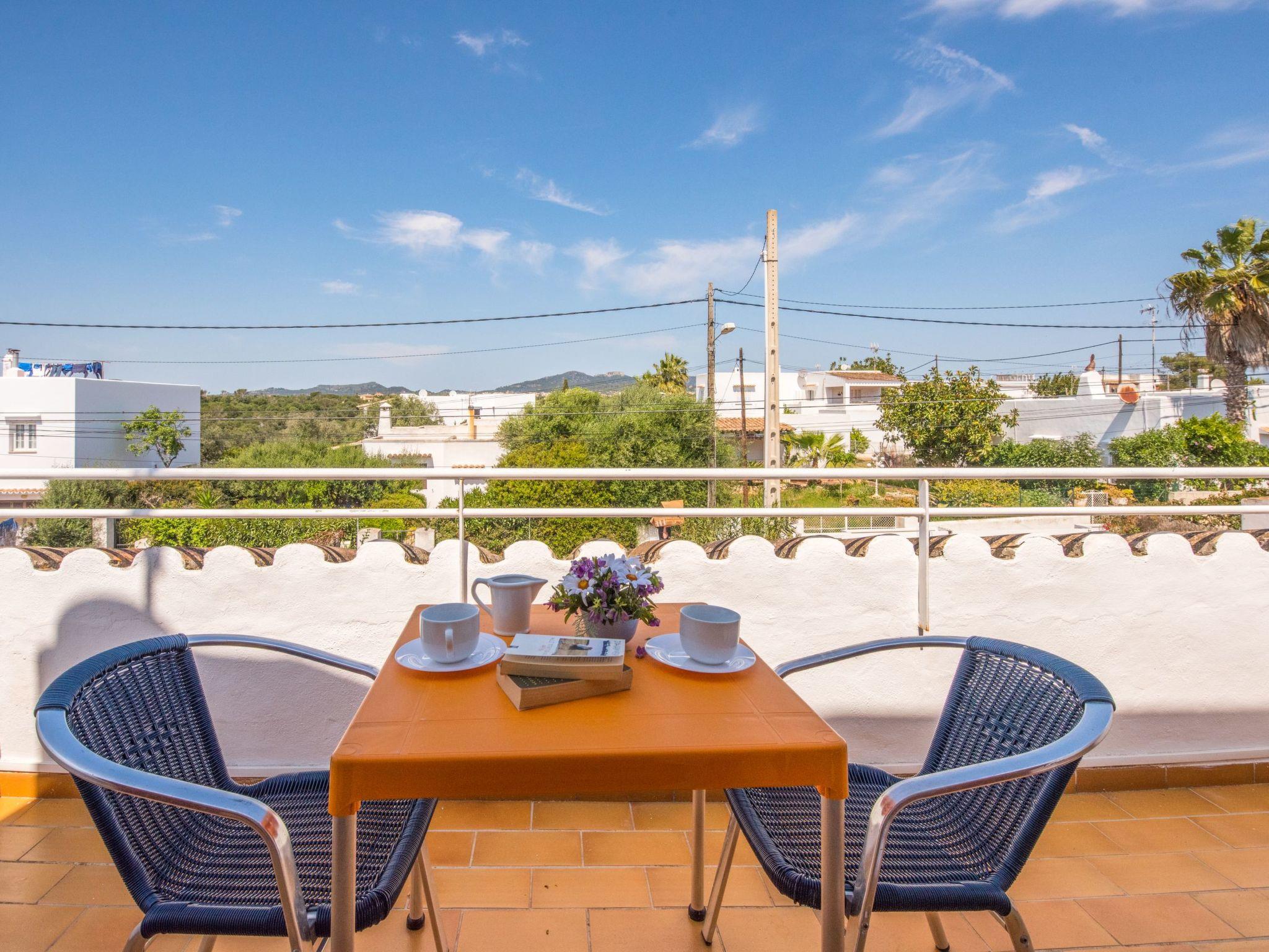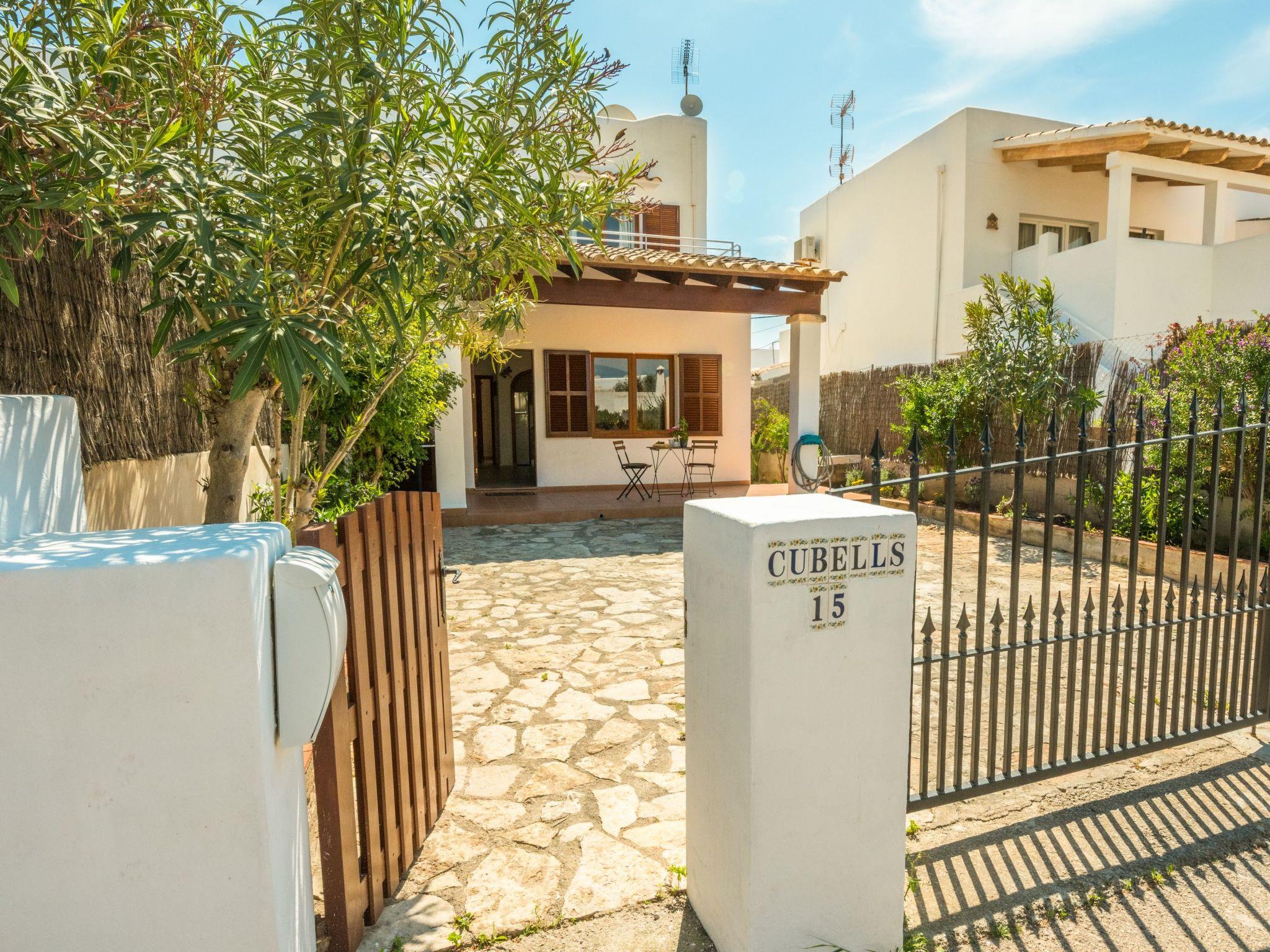 With its white exterior walls, the Cubells holiday home is in the traditional Ibiza style. It has a large entrance terrace as well as a further covered terrace at the rear and a small, well-kept garden with a round pool. On the ground floor is the living and dining area with a modern and well-equipped American kitchen. There is also one of the bedrooms with direct access to the garden and a bathroom. There are two bedrooms on the upper floor, one of which has a balcony. The bedrooms on the upper floor share a modern shower room. All bedrooms are equipped with ceiling fans. In addition, all bedrooms are equipped with air conditioning with fixed operating hours from 14:00 to 16:00 and 21:30 to 9:00.