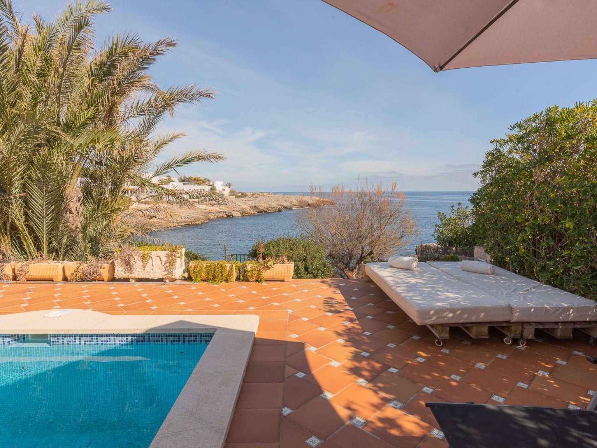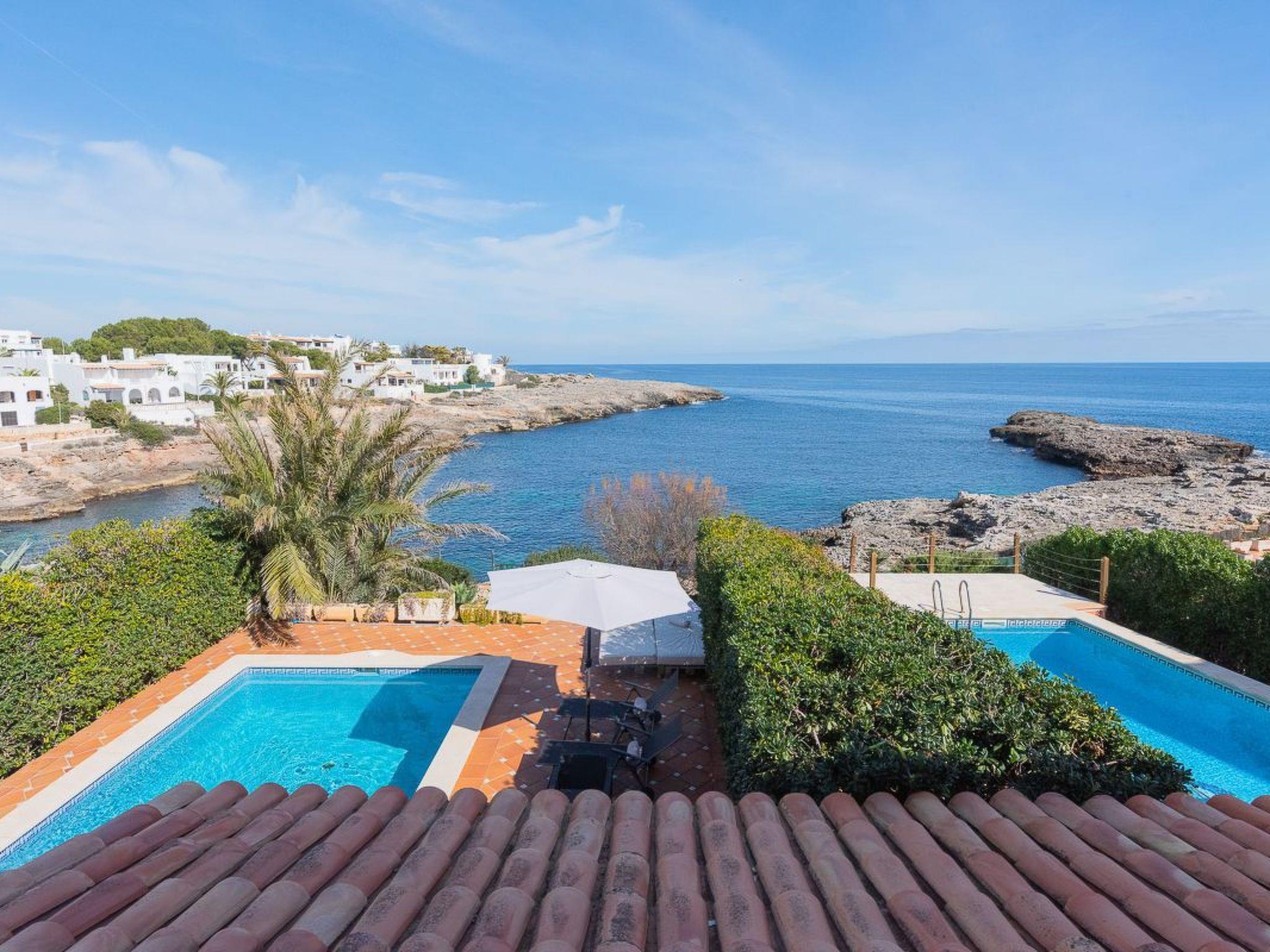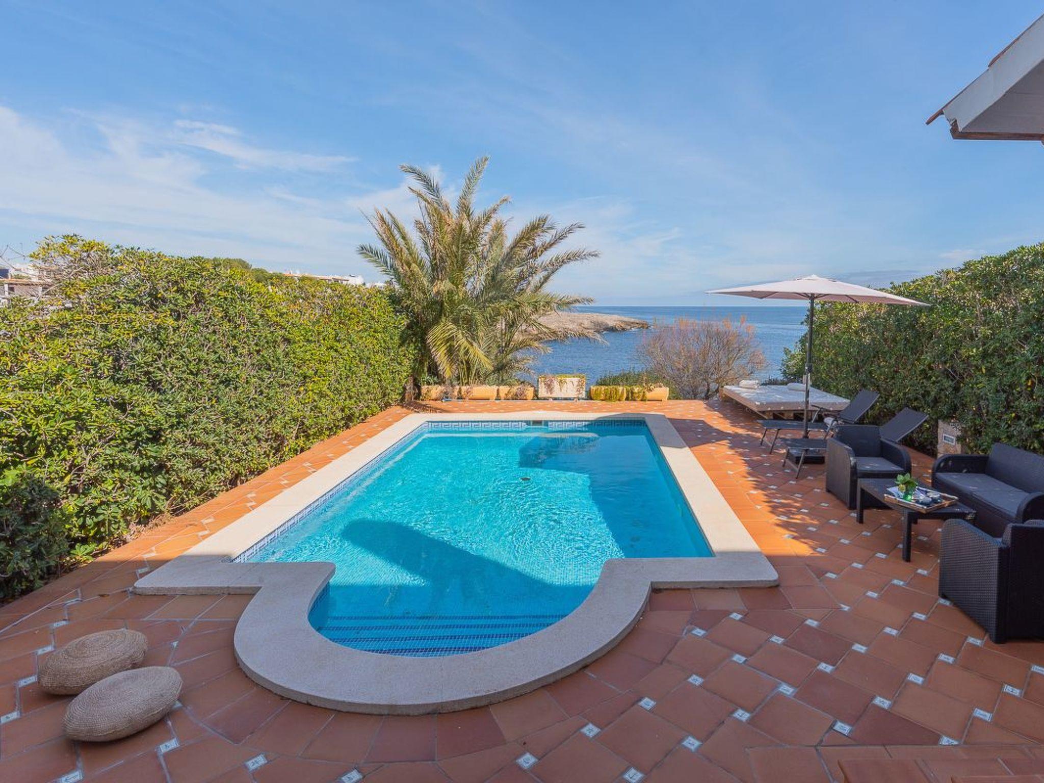 Semi-detached house in 1st sea line with access to the sea from the rocks. Fantastic sea views enjoyed from the house and the pool. This villa with attractive furniture and modern decor has three bedrooms and a private pool for rent in the area of Es Forti - Cala D'Or, Mallorca.