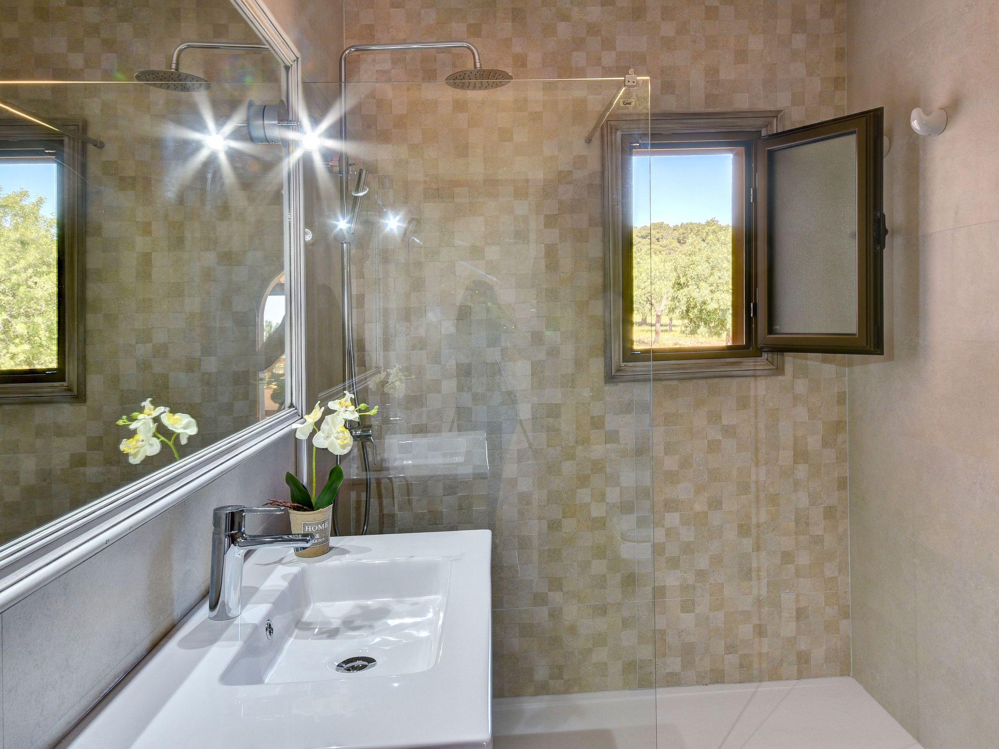 The beautiful curved pool of 10 x 4.5 metres is surrounded by several palm trees in front of the terrace. The brick-built barbecue is located on a covered terrace which invites to long barbecue evenings "al fresco". There is also a second dining area on the terrace with views of the pool and the surrounding countryside.
