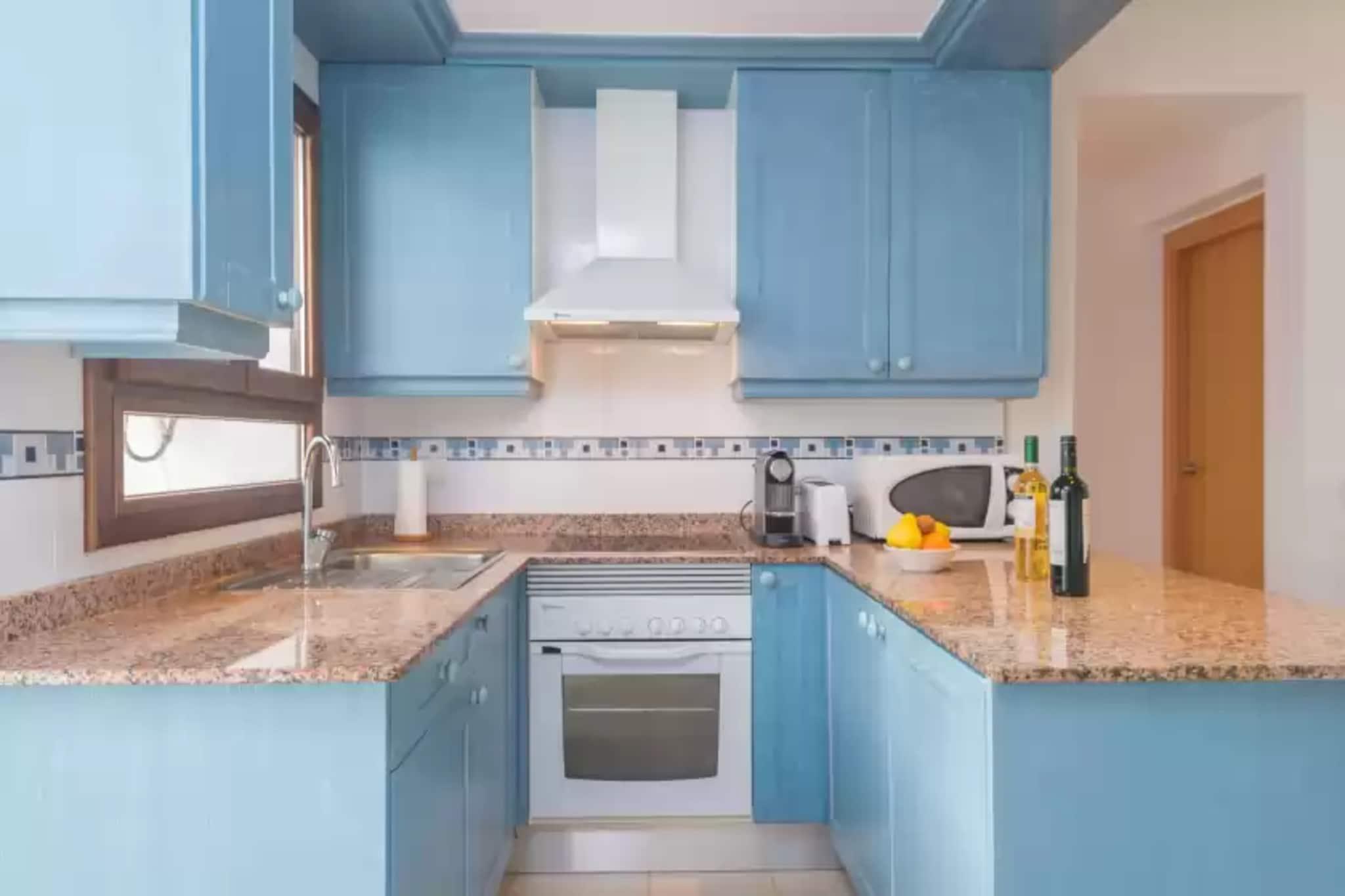 Kun 450 meter fra Cala Egos-stranden tilbyder dette charmerende to-etagers hus en perfekt familieferie i solrige Cala d'Or. Slap af i den fælles 7x7 m klorpool eller se de små plaske i den separate børnepool. Det private, indhegnede haveområde omfatter liggestole, en parasol, en grill og en smukt møbleret veranda til udendørs spisning. Indenfor har huset på 130 m² en rummelig åben-plan stue/spisestue med aircondition og satellit-tv (tyske kanaler) og et fuldt udstyret køkken med keramisk kogeplade, ovn, mikroovn, opvaskemaskine og meget mere. En vaskemaskine, strygejern og strygebræt er også tilgængelige. Med 5 soveværelser med aircondition (to med dobbeltsenge, to med to enkeltsenge og et med en køjeseng) har hjemmet plads til op til 9 gæster komfortabelt. To komplette badeværelser med badekar er tilgængelige på begge etager. En barneseng og høj stol kan leveres efter anmodning. Cala d'Or tilbyder alt for en uforglemmelig ferie - butikker, restauranter, livlig atmosfære og fantastiske bugter som Cala Mondragó og Portopetro i nærheden. Brug af AC er et ekstra gebyr. Ingen kæledyr eller fester tilladt. Gæster under 25 skal være en del af en familiegruppe.