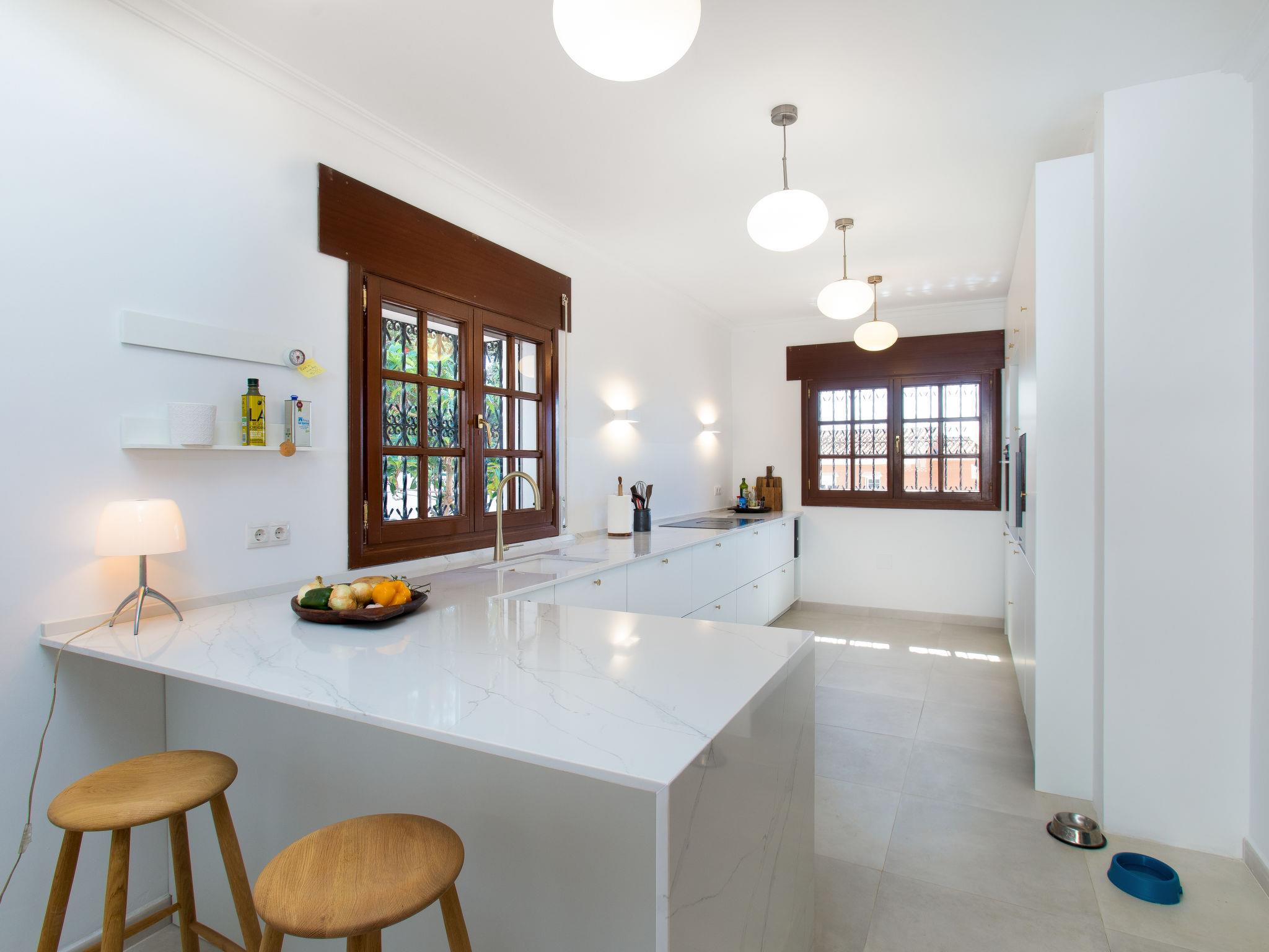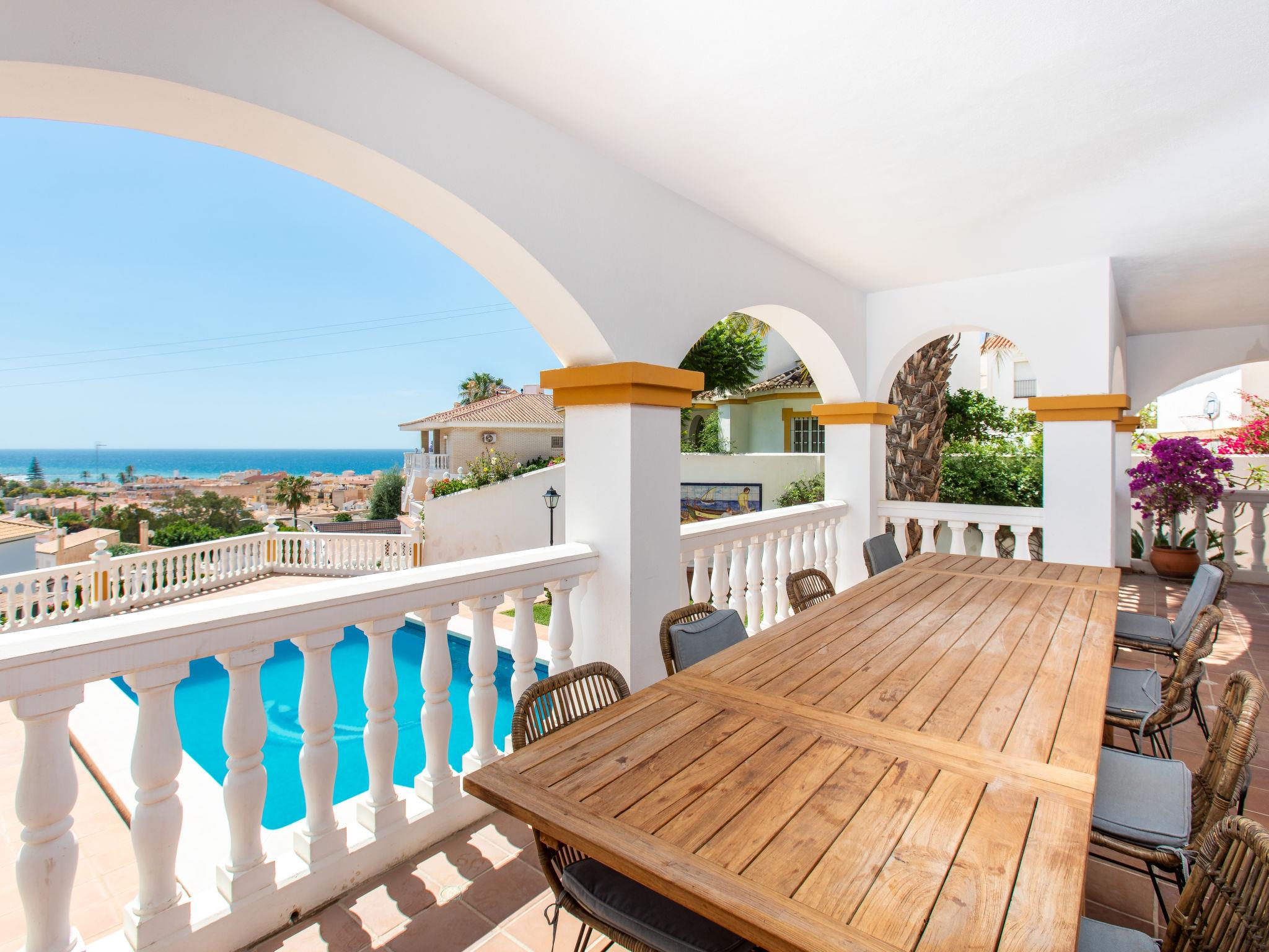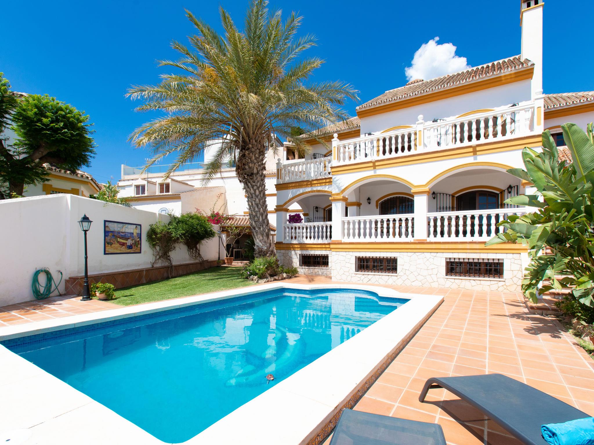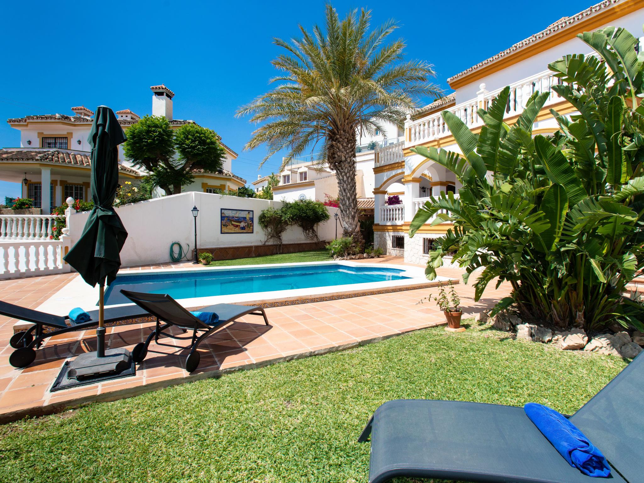 Cala del moral 2 km from Rincón de la Victoria: Beautiful, cosy single-family house "Fragata House", renovated in 2022. In the resort 350 m from the centre of Cala del moral, in a sunny position, 600 m from the sea. Private: garden with lawn, swimming pool angular (4 x 8 m, depth 105 - 230 cm, seasonal availability: 01.Mar. - 01.Dec.). Shower/WC in the pool area, table tennis, patio, garden furniture, barbecue, pool maintenance by the owner/gardener. In the house: WiFi, central heating system, air conditioning, washing machine. Motor access to the house. Stepped path (20 steps) to the house. Shop, supermarket 300 m, shopping centre 800 m, restaurant 500 m, bus stop "walking distance" 500 m, sandy beach 600 m. Golf course (18 hole) 4 km. Please note: no lift. The owner does not accept any youth groups.