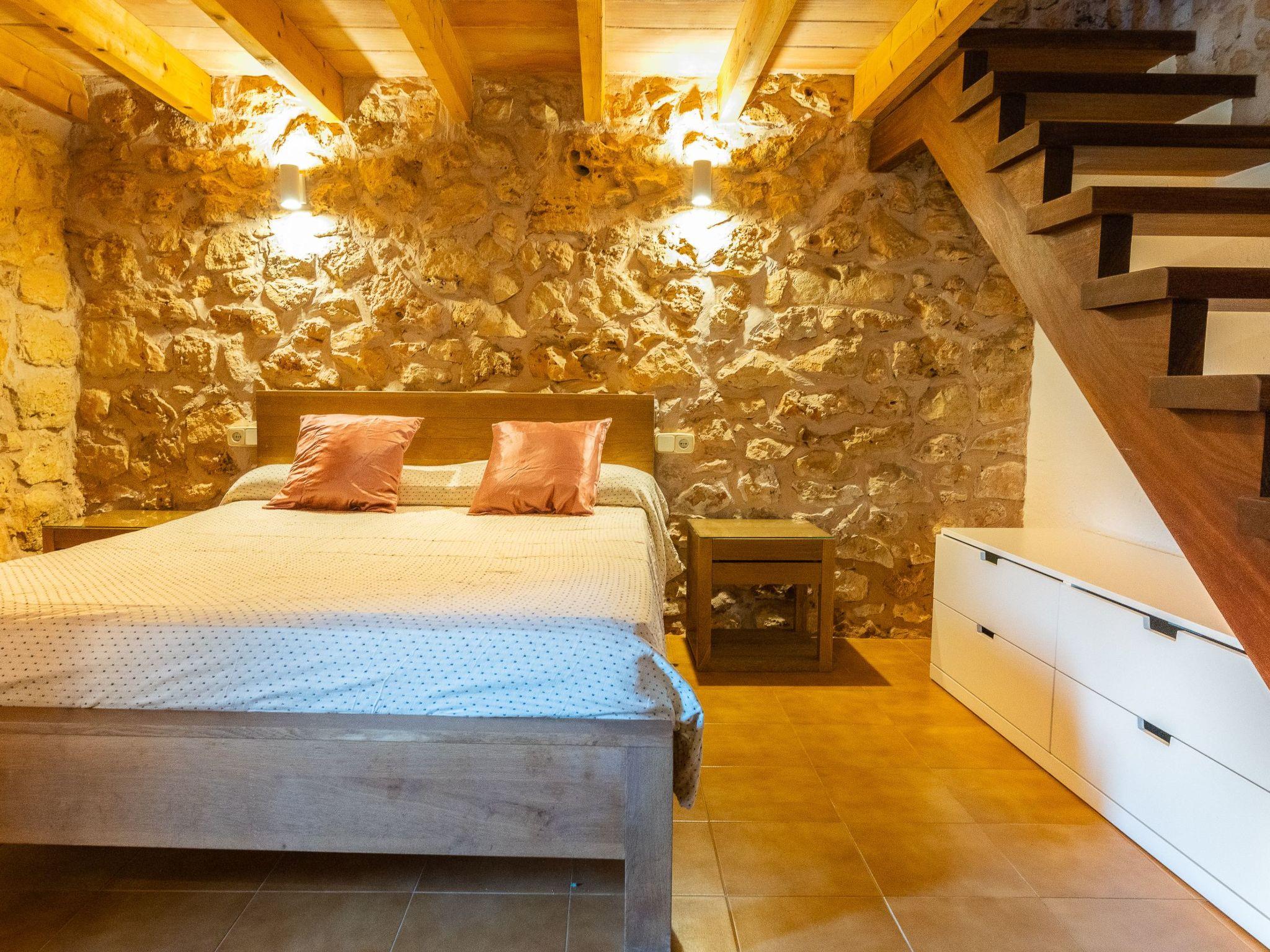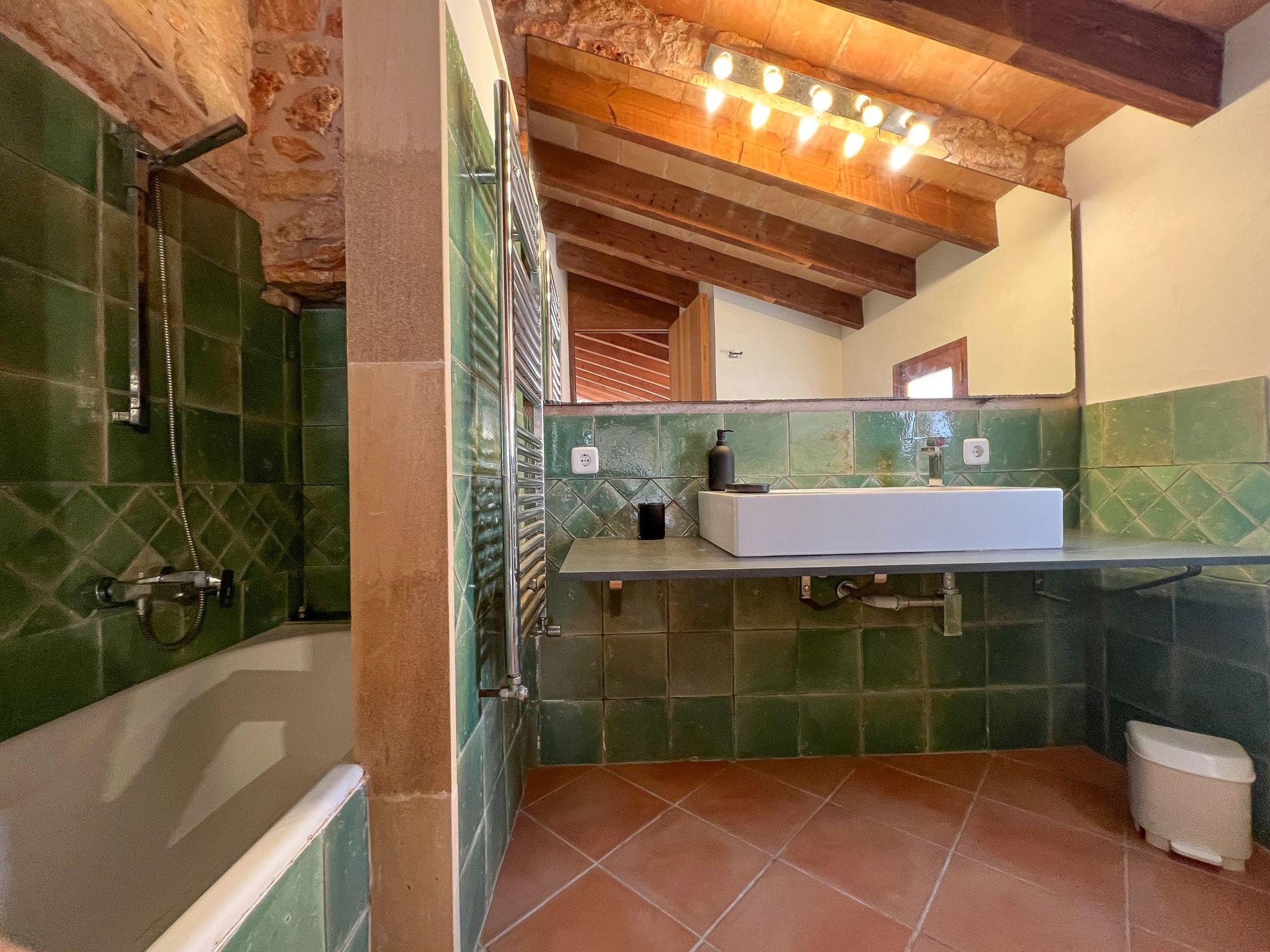 Casa Petita is completely renovated and furnished. The rustic natural stone walls give the house a very special atmosphere. The charming, authentic country house is comfortable and very tastefully furnished. From the entrance you will find a cosy living room. Through an open archway you enter a bright, spacious and inviting dining room. To the left is the fully equipped kitchen. A wooden staircase leads from a bedroom with a double bed to the open gallery with a further 2 single beds (for children). This means that 4 people can enjoy a good night's sleep in this bedroom. Opposite is the bathroom with shower. A further bedroom with 2 single beds and a complete en suite bathroom completes the main house. The third bedroom with an en suite bathroom is located in the adjoining house with a separate entrance.