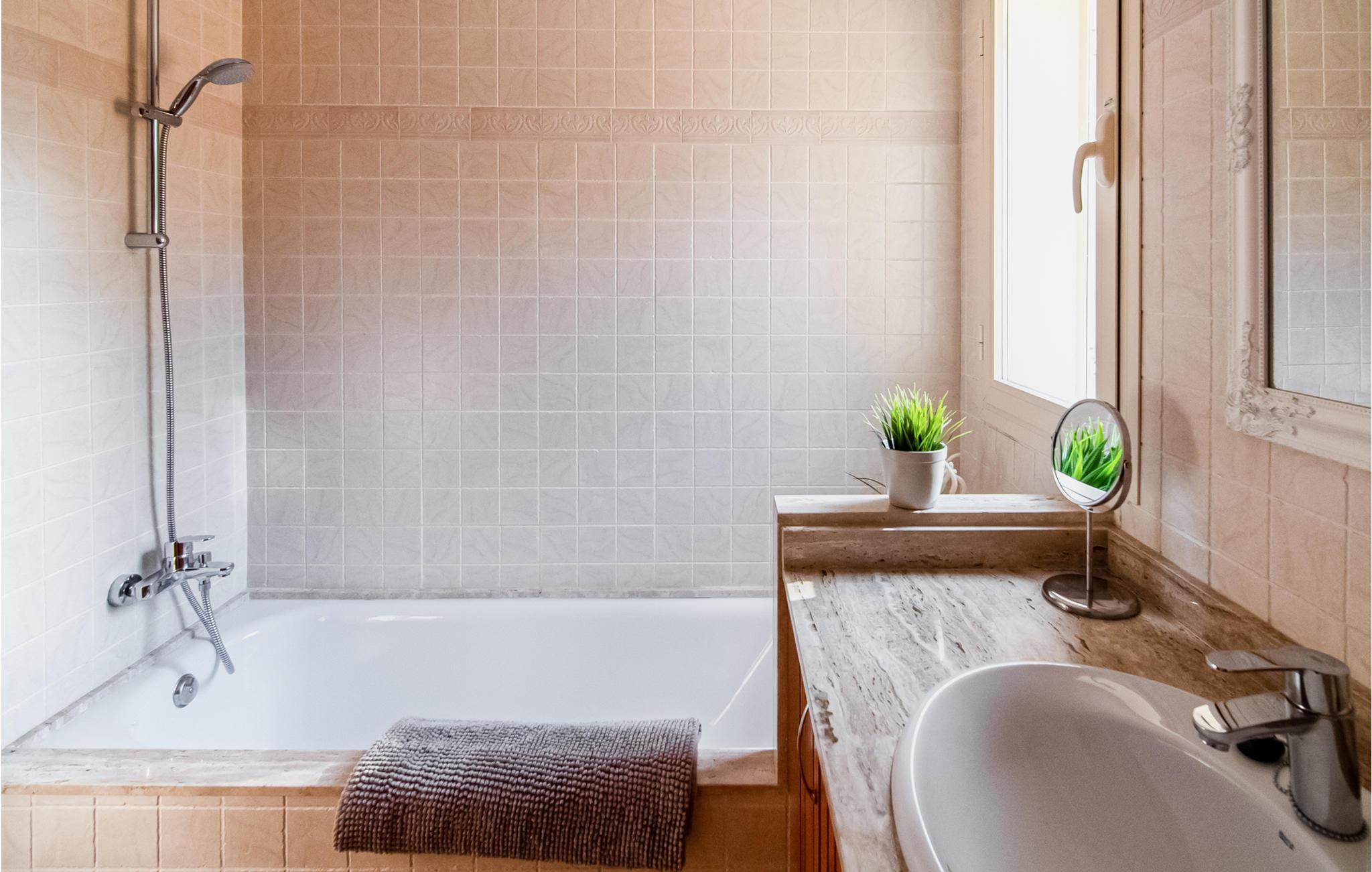 Badeværelse (nr. 1) - WC. Varmt og koldt vand. Bruser og badekar