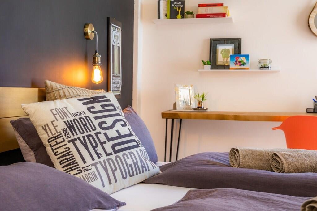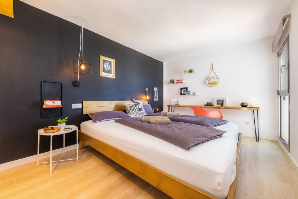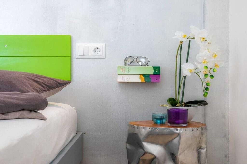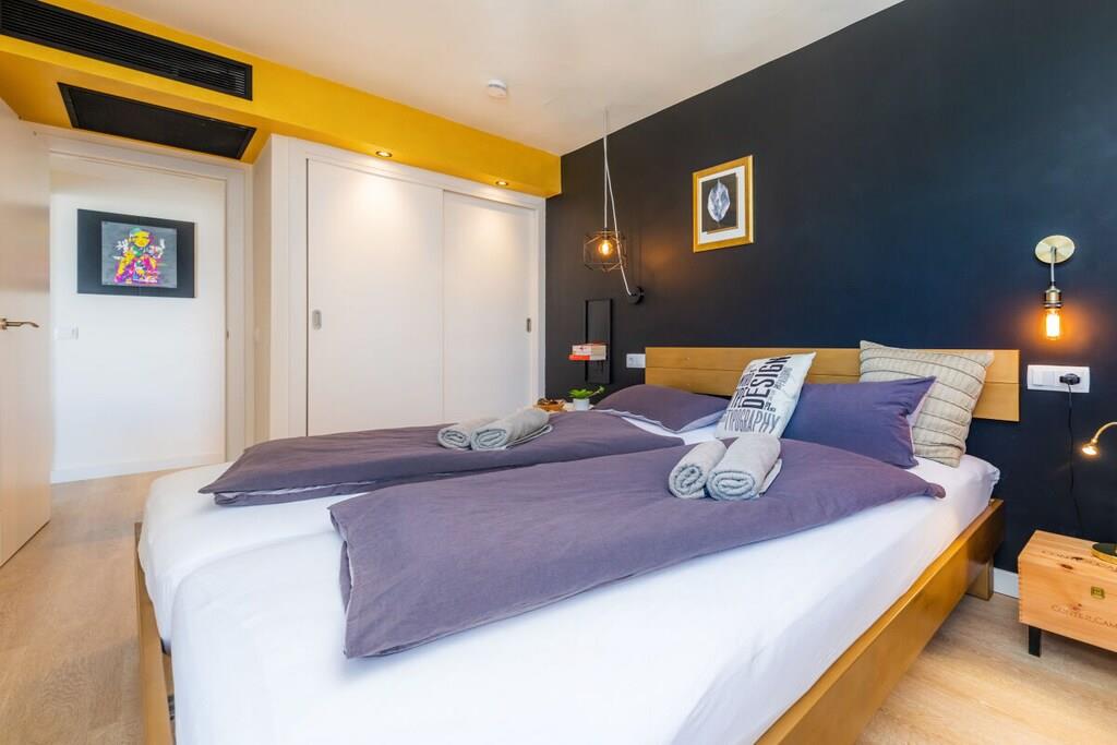 Lev som med venner! Strandferielejlighed i loftstil på 6. sal med majestætisk havudsigt på første linje. For det andet vindstille vestvendt altan. Den 84 m² store ferielejlighed på 6. sal (elevator tilgængelig) har 2 soveværelser, badeværelse med bruser, stor stue/spisestue/køkken, et depotrum og 2 altaner. Den 11 m² overdækkede altan, der støder op til opholdsområdet, ser mod øst over Cala Millor-bugten, men fanger også aftensolen bagtil. Den 4 m² store, solrige og vindbeskyttede vestvendte altan, der støder op til et soveværelse, ser ind mod bjergene. Den lyse ferielejlighed er stilfuldt og kreativt indrettet med stor sans for detaljen efter mottoet "Heavy metal møder funky farver". Begge soveværelser har en 180 x 200 cm dobbeltseng (separate springmadrasser) og stuesofaen er udtrækbar (ca. 150 x 200 cm) - så lejligheden byder på plads til 5 personer. Ferielejligheden tilbyder også bøger (tysk, engelsk), dvd'er, spil, stereoanlæg, Astra-satellitmodtager, fladskærms-tv og gratis WiFi.