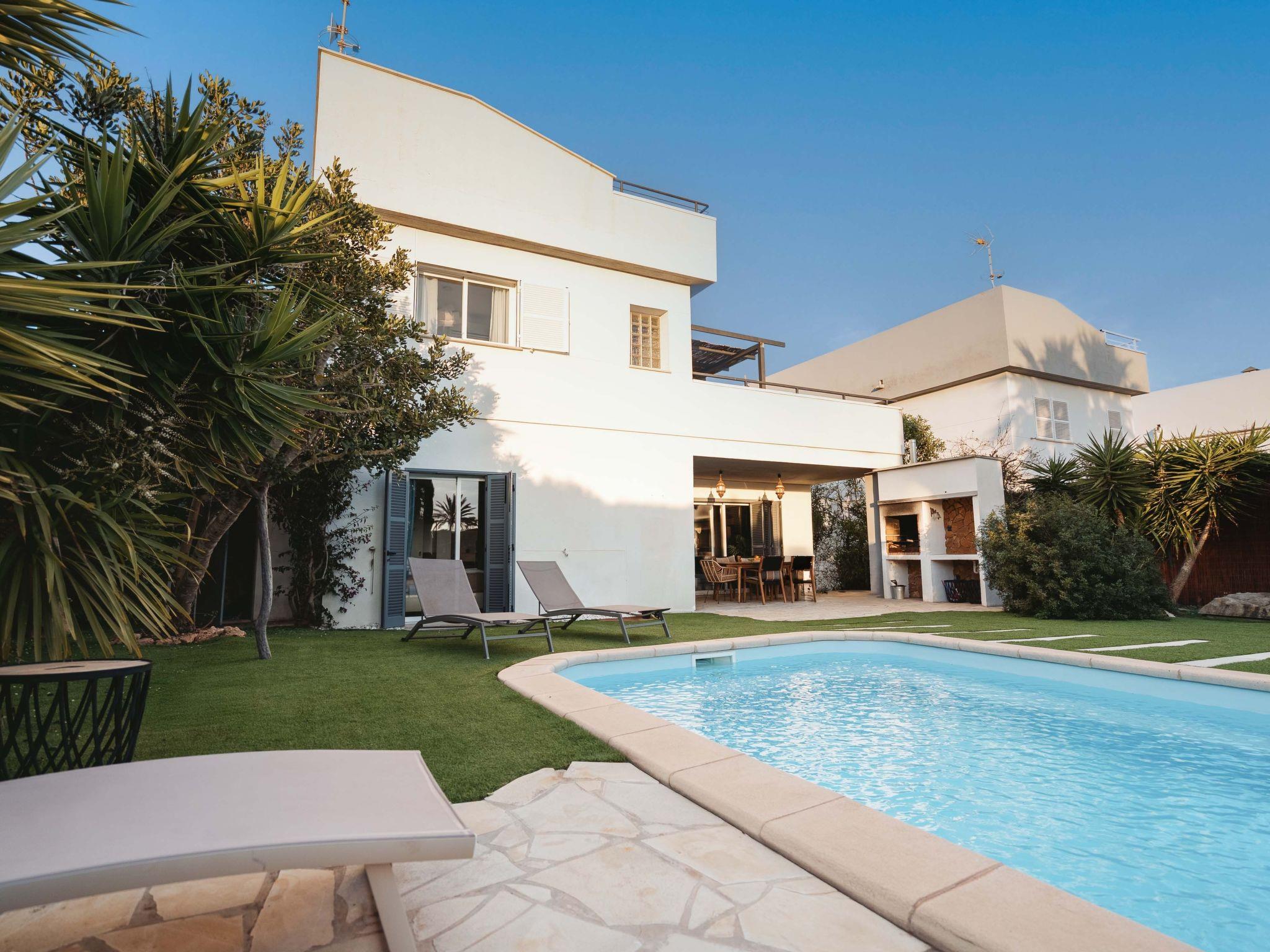 The villa has air conditioning cold / warm, fireplace with automatic pellet heating (making the building a year-round destination) and free WIFI throughout the house and garden, TV in every room and living room. The entire outdoor area has been lovingly landscaped and planted with numerous Mediterranean plants, several sun loungers, lounge furniture and outdoor shower as well as a large open outdoor kitchen with BBQ - grill and dining table to enjoy life outside during the day or in the evening. The great highlight of our villa is, in addition to the lush Mediterranean nature on the property and the tranquillity, that you can reach the marina and one of the most beautiful beaches in Europe, called "ES Trenc" or "Caribbean beach" with a wide white sandy beach in just a few minutes' walk (300m). The water is very shallow, making the water turquoise and the beach particularly popular with sun worshippers, children and "non-swimmers". In the village of Sa Ràpita there are a variety of services such as restaurants directly on the coast, bakery, supermarket, pharmacy, bank. A novelty on Mallorca is that there is no typical mass tourism in Sa Ràpita due to the lack of hotels. The village with its lovely restaurants and small weekly market is only a 5-minute walk away.