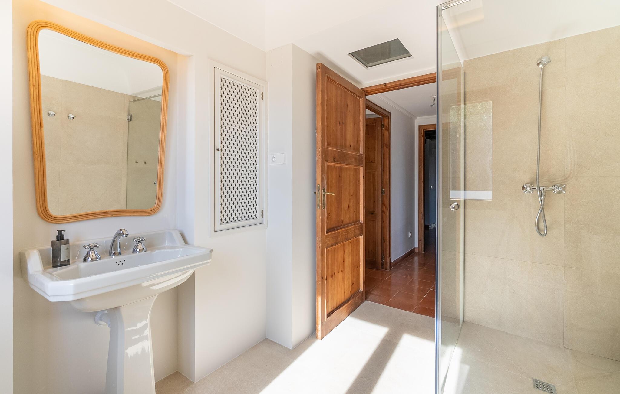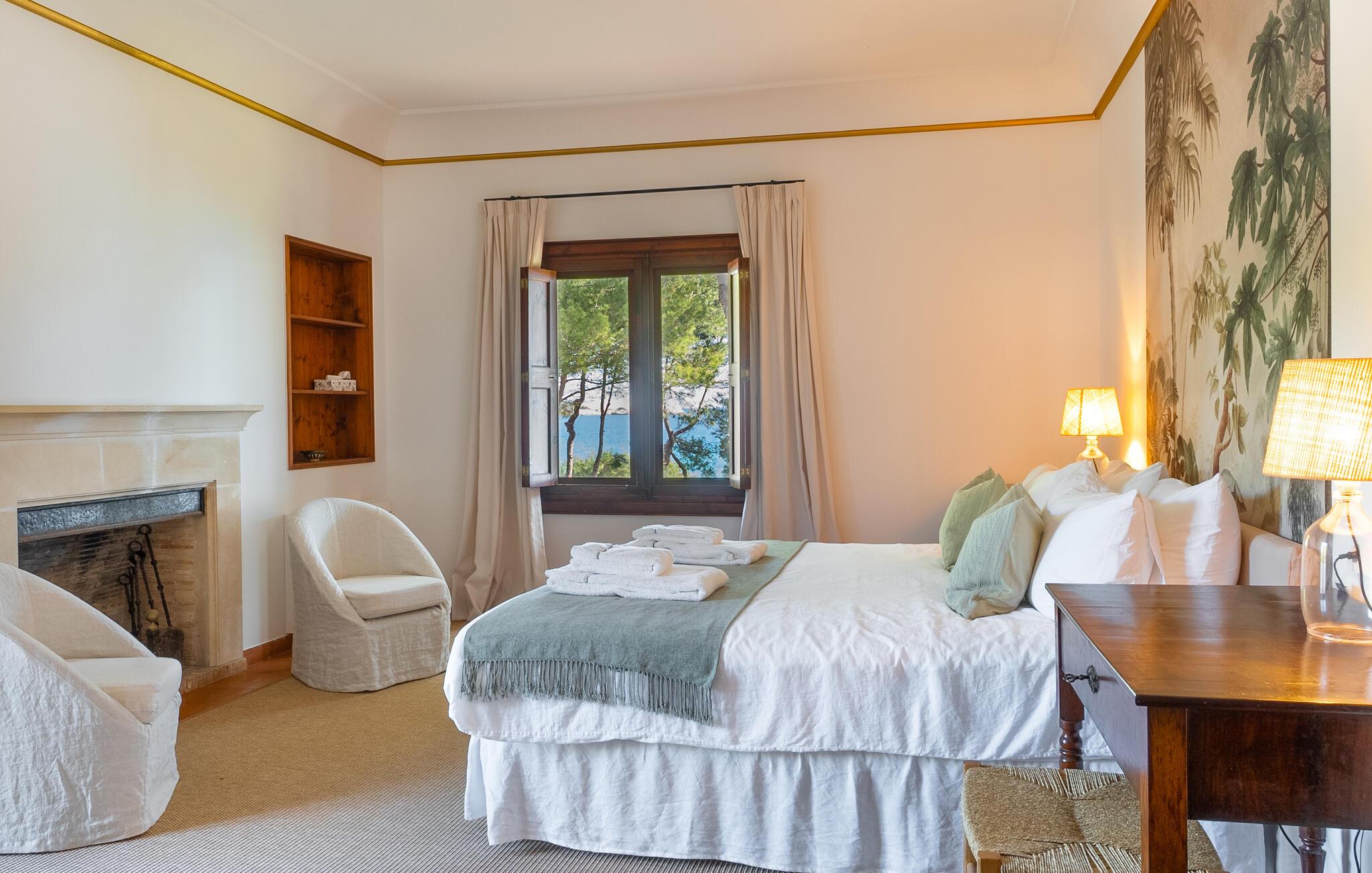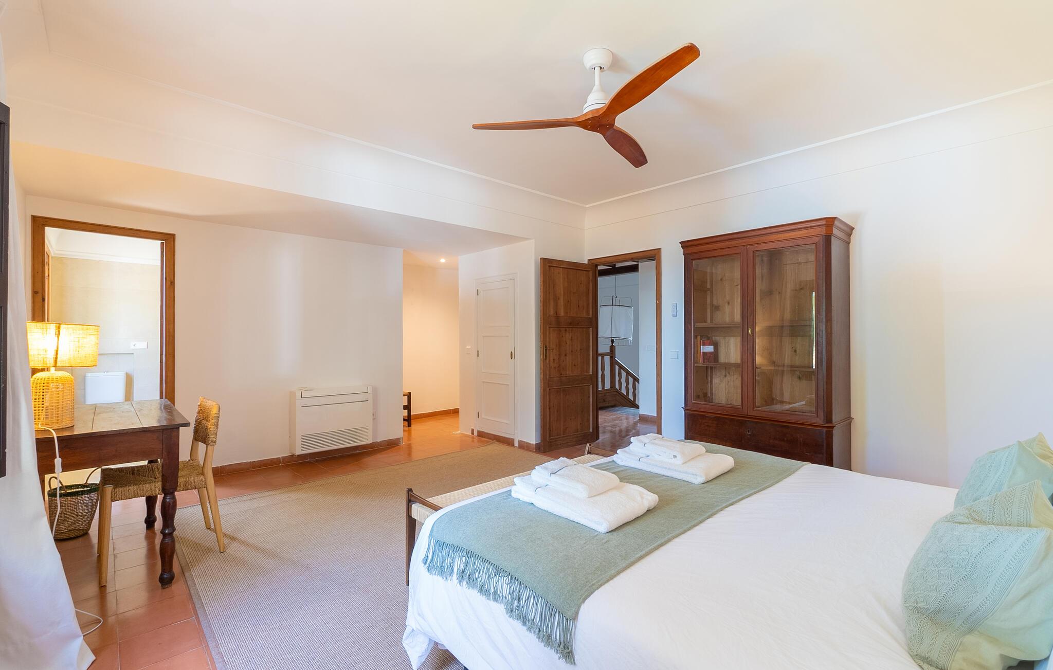 Nyd den autentiske atmosfære i denne rummelige mallorcanske finca, hvor udsøgte naturmaterialer og stilfulde møbler skaber en varm og indbydende atmosfære. Tilbered lækre retter i det eksklusive køkken, og nyd jeres måltider i en behagelig atmosfære efter eget valg. På køligere aftener sørger den åbne pejs for hygge, mens I afslutter dagen med en god samtale – måske med et glas vin – i den hyggelige stue.