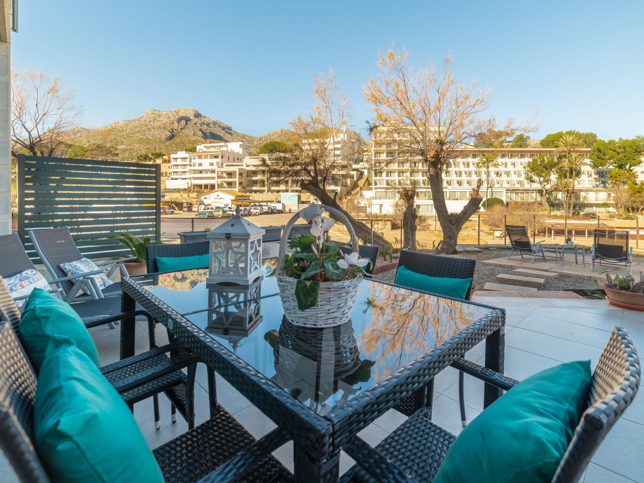Cala San Vicente: Beautiful, comfortable, luxurious apartment block "Penyasegat Sea Views", built in 2021. In a sunny position on top of a hill, excellent location: right in the centre but still quiet, traffic calmed area, 500 m from the edge of the forest, 10 m from the sea, from the beach, road to cross, north-east facing position. For shared use: outdoor shower. Private: small garden with wildlife garden. Patio, garden furniture, barbecue. In the house: internet access, WiFi, air conditioning, washing machine, tumble dryer. Public car park at 50 m, public parking on the road. Shop 100 m, grocery, supermarket 150 m, shopping centre 200 m, restaurant 50 m, bar 100 m, bakery 200 m, café 50 m, bicycle rental 300 m, pub garden 100 m, 5 minute walk to the centre, bus stop 200 m, sandy beach "Cala Molins, Cala Carbó" 20 m. Sports harbour 10 km, marina 10 km, golf course (18 hole) 8.5 km, surf school 10 km, sailing school 10 km, tennis 8.5 km, riding stable 10 km, sports centre 7 km, walking paths from the house 500 m. Nearby attractions: Calvari de Pollensa 7.2 km, Playa Formentor 17.3 km, Faro Formentor 27.7 km, Alcúdia 15.6 km, Cuevas de Campanet 23.5 km. Please note: no lift. Suitable for seniors. Object suitable for 4 adults. The owner does not accept any youth groups. Airfield 66 km from the property. Neighbourhood highly sensitive to noise. Quietness and good behaviour expected.