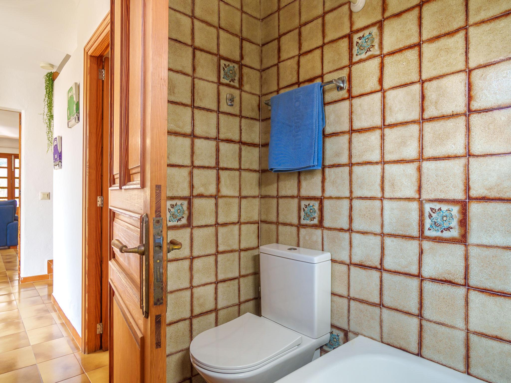 "Clara M", 6-room apartment 130 m2 on 2 levels. Practical furnishings: upper floor: living/dining room with open-hearth fireplace, dining table, satellite TV, digital TV, DVD and electric heater. Exit to the terrace. 1 room with 1 bed. Exit to the terrace. Kitchen (oven, dishwasher, 4 ceramic glass hob hotplates, toaster, kettle, microwave, freezer, electric coffee machine). Exit to the swimming pool. Bath/WC. 2nd upper floor: 2 double bedrooms, each room with 2 beds (90 cm, length 190 cm), air conditioning and forced-air heating. Exit to the terrace. 1 double bedroom with 1 bed (90 cm, length 190 cm). 1 room with 1 bed (90 cm, length 190 cm). Shower/WC, double hand-basin. Heating not available in all rooms. 2 terraces partly covered. Terrace furniture, barbecue. Facilities: washing machine, safe, iron, children's high chair, baby cot for up to 2 year olds (extra). Internet (WiFi, free). Please note: non-smokers only. VTV0008BAL // Reg. Nr.: ESFCTU000007030000540094000000000000000000000000VT/89