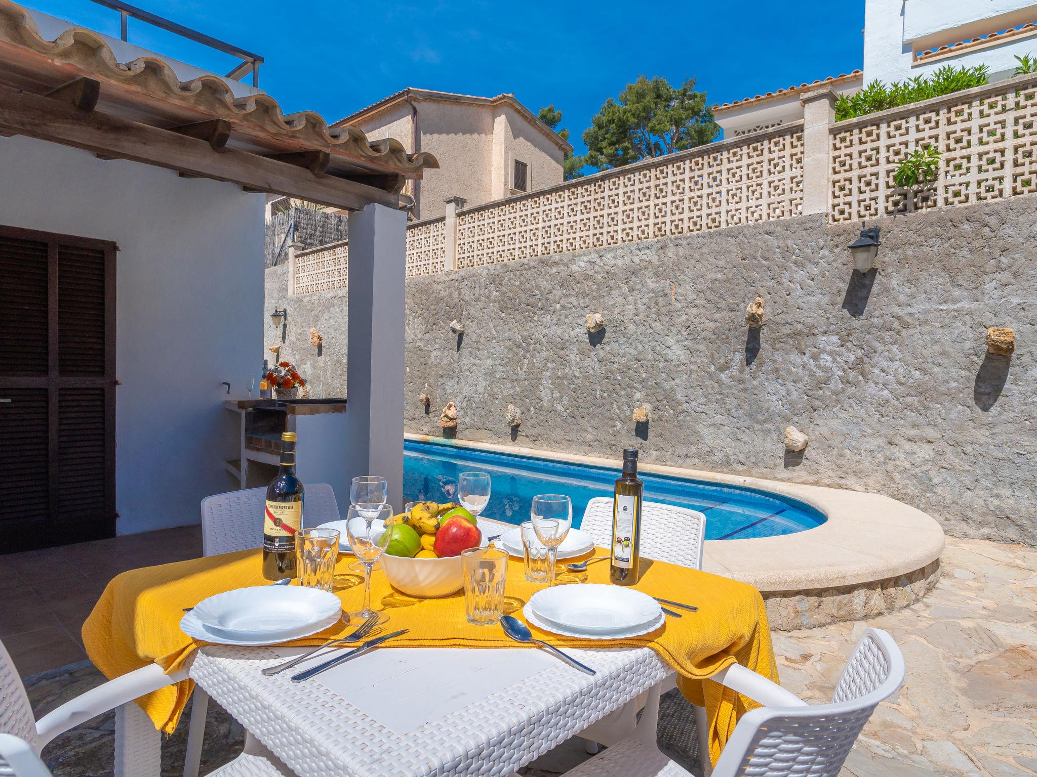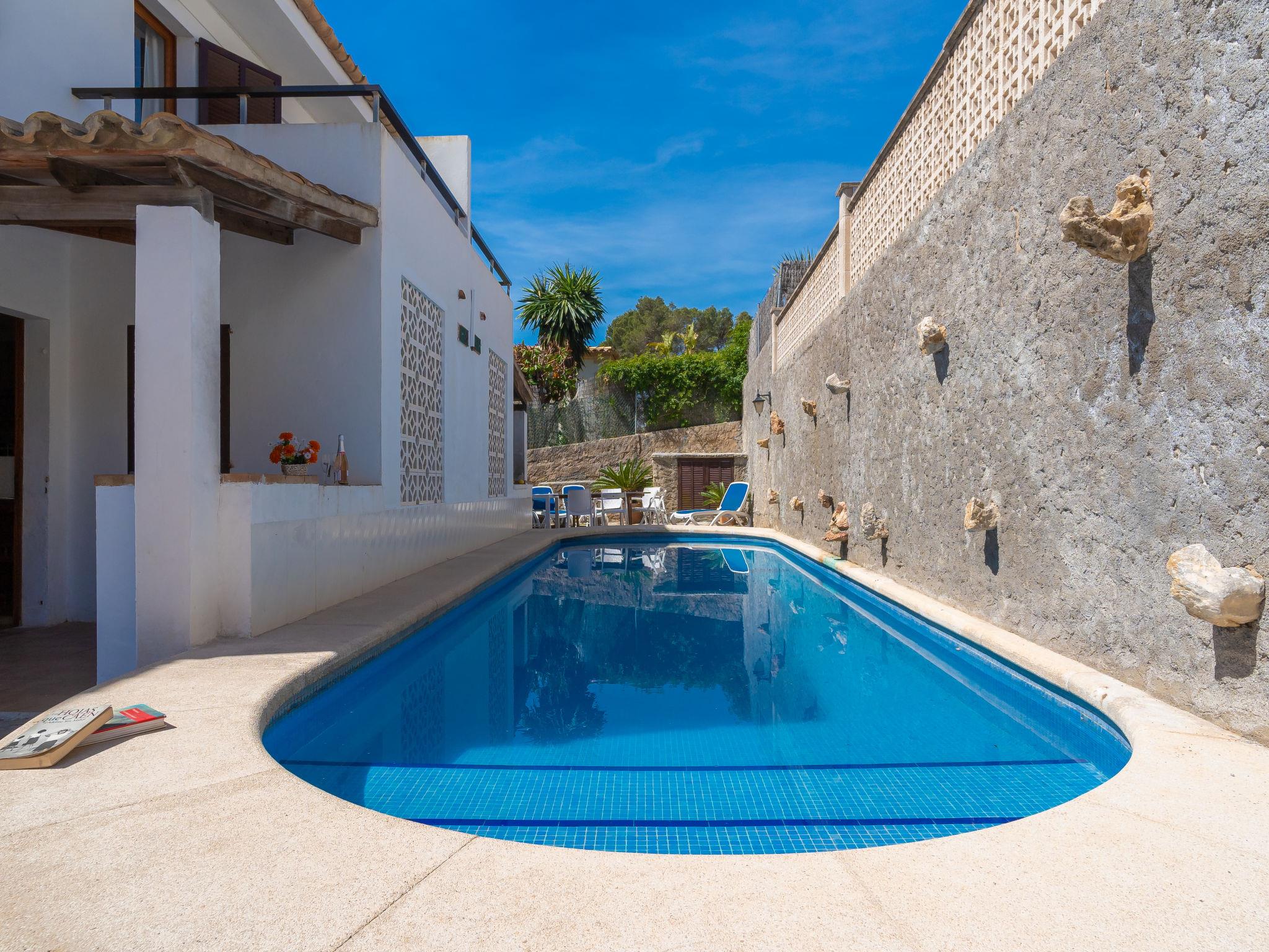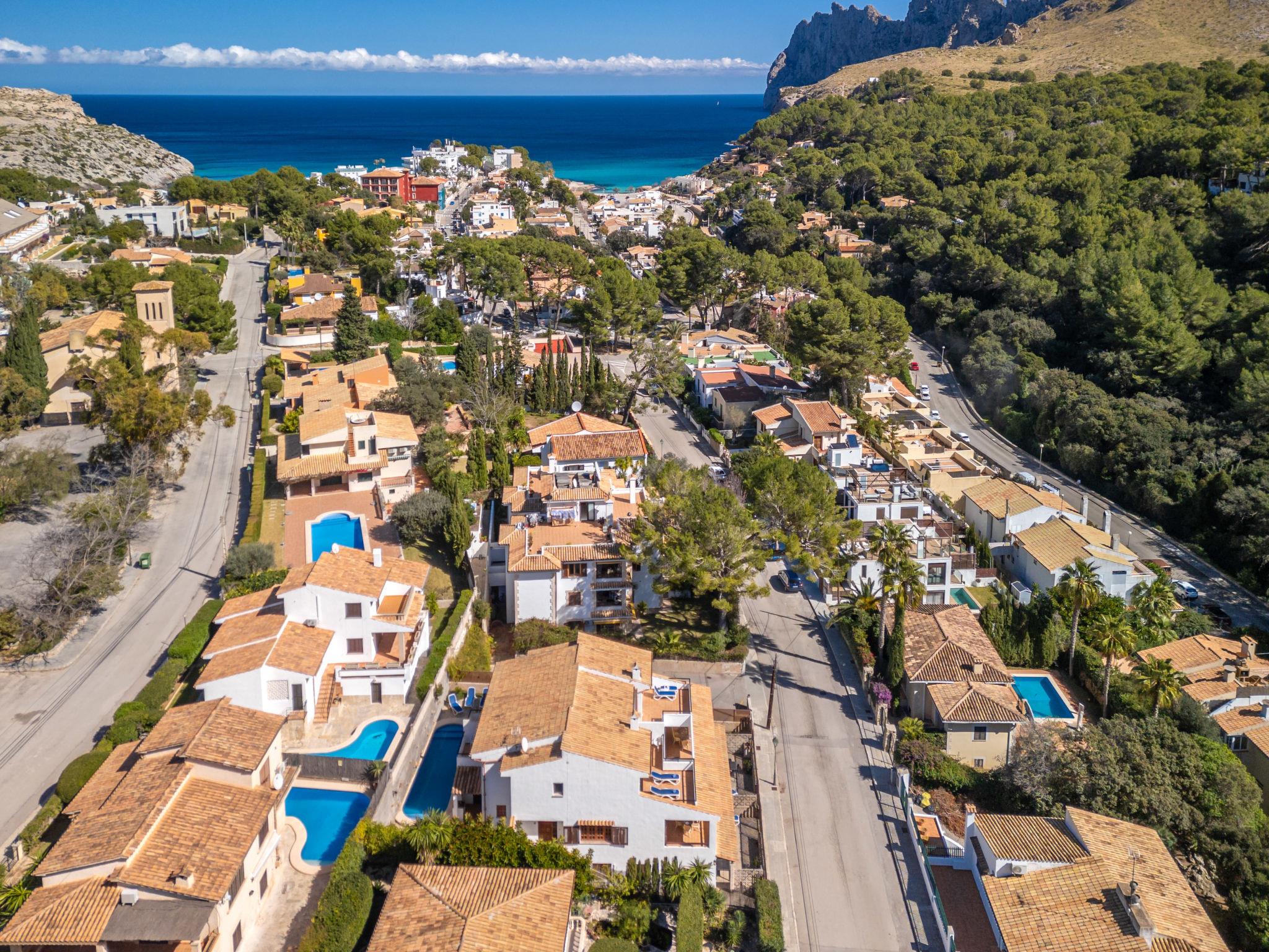 Cala San Vicente: Simple, comfortable apartment block "Clara", 2 storeys. 4 apartments in the property. 700 m from the centre of Cala San Vicente, 6.5 km from the centre of Pollensa, 15 km from the centre of Alcudia, in the residential district, 700 m from the sea. For shared use: property (fenced), swimming pool angular (9 x 3 m, depth 50 - 200 cm, seasonal availability: 01.Jan. - 31.Dec.). Outdoor shower, terrace, garden furniture. In the house: internet access, WiFi, air conditioning, washing machine. Shop 700 m, bus stop "Cala san Vicente" 800 m, sandy beach 700 m. Hiking paths: Punta de l'Aguila 2 km. Please note: car recommended.