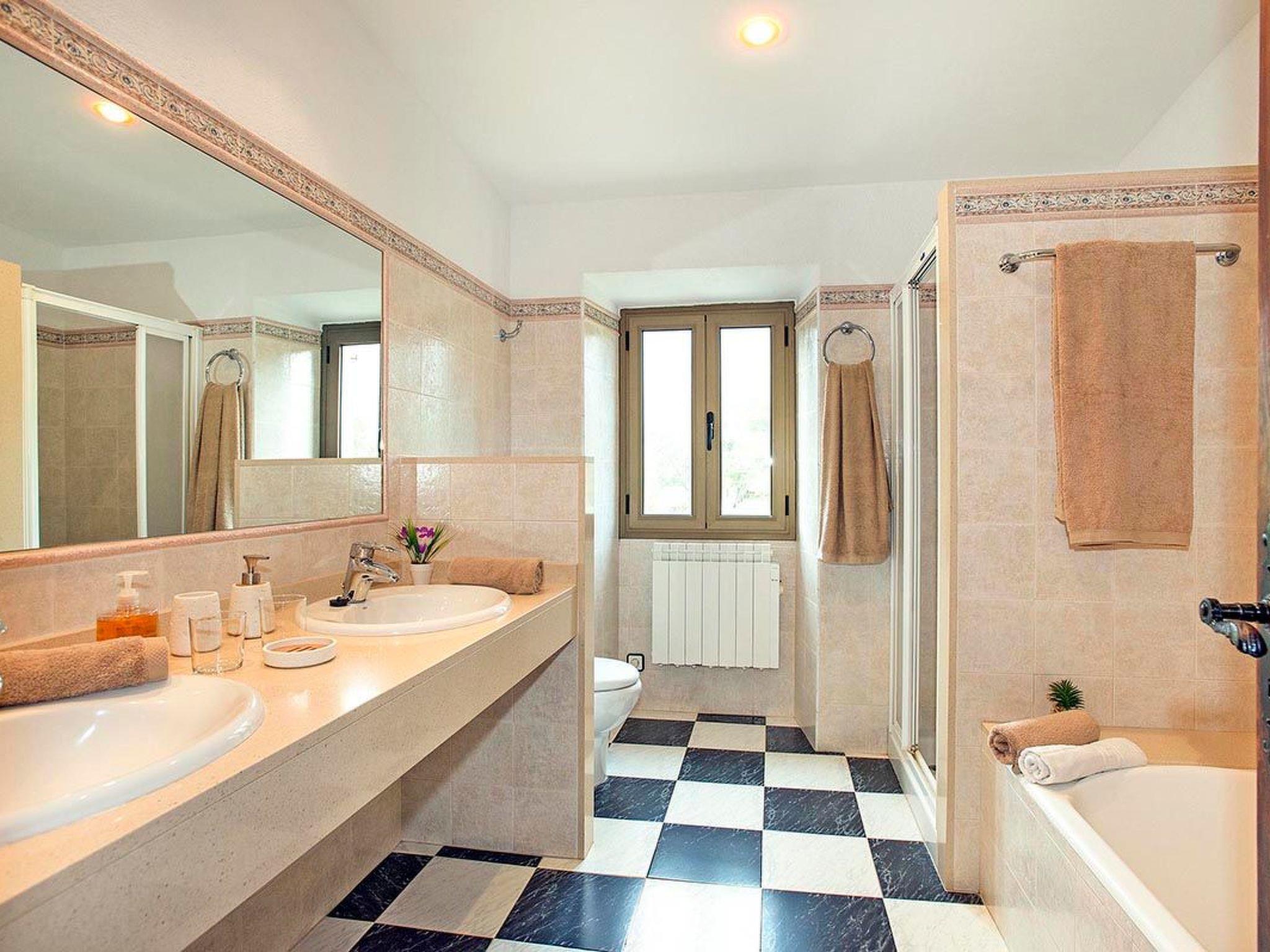 The main entrance is at the front of the house and leads to the 2 living rooms, both with comfortable sofas and one complete with SAT TV. The archway leads to the spacious dining room which in turn leads to the kitchen equipped with all the necessary appliances. The barbecue area and pool terrace can be accessed directly from the kitchen. On the ground floor there is a double bedroom with en suite bathroom. The remaining bedrooms are all on the first floor, there is a second double bedroom and 4 twin bedrooms as well as 3 shared bathrooms (the single beds in the bedrooms can be converted into double beds on request). There is also a small terrace accessed from the first floor hallway, which has wonderful mountain views.Air conditioning/heating is provided at no extra cost, from 17:30 to 19:30 and 22:00 to 09:00 and also wifi.The property is in the process of refurbishment at the moment, the current photos are from 2022. Once the refurbishment is completed, which includes the extension of the terrace by the pool, new interior tiling and refurbishment of the bathrooms, etc., new photos will be published.The villa will then have:6 bedrooms (2 doubles + 4 twins)5 bathrooms of which 4 will be en suite1 exterior W.C.
