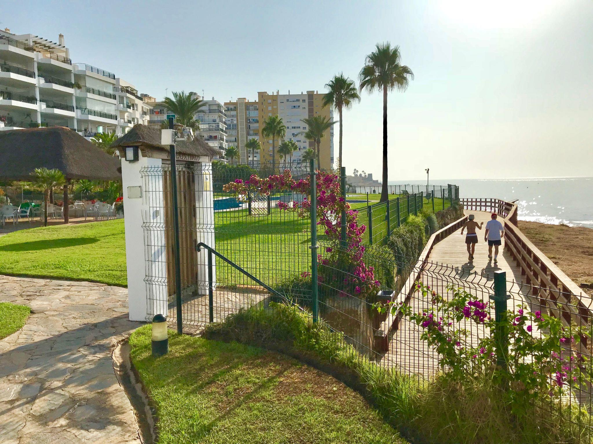 Private garden with direct access to the gardens of the urbanisation; 2 swimming pools, the main one next to the sea, from which there is direct access to the beach and a walkway to a spectacular wooden walkway along the beach, which connects to Cabopino and La Cala de Mijas with several kilometres in length.