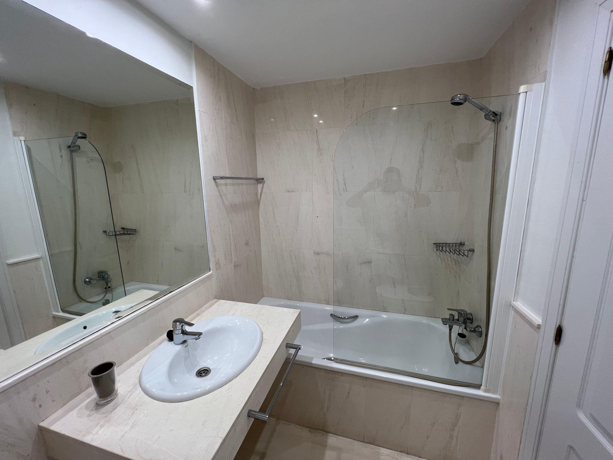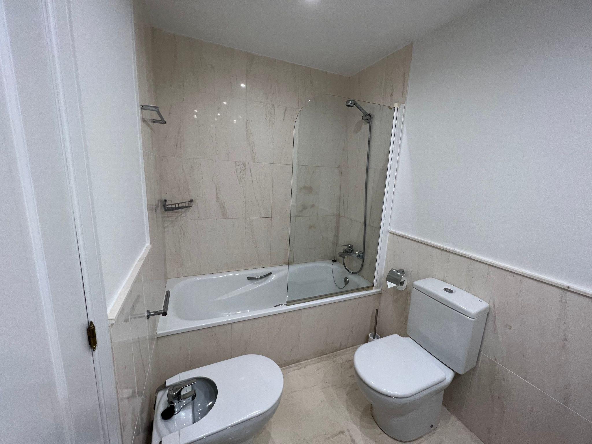 The apartment is equipped with free Wi-Fi (500 mg) English, German, Russian, Arabic speaking TV, etc. It is located in an urbanization with direct access to the beach and with two large complexes of saltwater swimming pools, one of them with sea views and seasonal bar. One of the pools is open all year and the other from April to October 15. The apartment has an equipped kitchen, dishwasher, oven, microwave, fridge-freezer, toaster, electric kettle, kitchenware, glasses, bowls, etc. It has two full bathrooms and two bedrooms, there is also a bed in the living room with a 135 bed, as well as a large terrace with sea views with a table, sofa, chairs and sun lounger. The apartment has private parking as well as community parking until availability is exhausted.