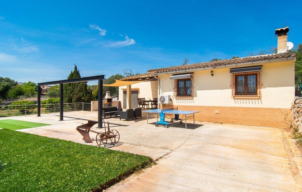 Den indbydende "Calderitx" bondegård er ideel til familier eller cykelentusiaster. I den charmerende feriebolig i centrum af øen vil I opleve en helt igennem vellykket ferie i mallorcansk stil. Det medvirker også det smukt designede udeareal i det roligt beliggende feriehus. Infinity-poolen er indlejret i en græsplæne. Der er komfortable liggestole til solbadning eller en afslappende siesta. Der er i alt to overdækkede udendørs siddepladser. Den afslappede lounge med afslappede siddepladser er i skyggen af markiser. Spiseområdet, bygget på verandaen direkte ved huset, er et vidunderligt sted at spise udenfor på grund af det milde mallorcanske klima. Det er i umiddelbar nærhed af den murede grillplads. Men verandaen er også velegnet til morgenmad i jeres eget fritidstempo. Børn finder plads nok til at lege. Et bordtennisbord er også tilgængeligt til sjove dueller. Interiøret i det kompakte bondehus i en afslappet Mallorca-stil er ideel til fire personer. Omdrejningspunktet er det lyse, kombinerede opholds- og spiseområde med åbent køkken. Den komfortable indretningsstil bevæger sig mellem moderne og mallorcansk hygge. Pejsen er ideel til de køligere stunder af året. Der er også varm-kold aircondition. I vil finde afslappende søvn i de to dobbeltværelser. Mellem de to soveværelser er det moderne badeværelse med bruseniche. Hvis der er behov for et hjemmekontor, er det bestemt muligt takket være fiberoptisk internet. I bestemmer selv, hvordan I vil tilbringe jeres ferie i "Calderitx"-gården - alt er muligt! Den familievenlige bondegård "Calderitx" tilbyder et sted at slappe af med pool, bordtennis, skyggefuld lounge og grill. Det smukke feriehus ligger i udkanten af Ariany, så hverdagens indkøb kan klares hurtigt. De smukke strande i Alcúdia-bugten, herunder Son Baulo eller Son Serra de Marina, er omkring 25 minutter væk i bil.
