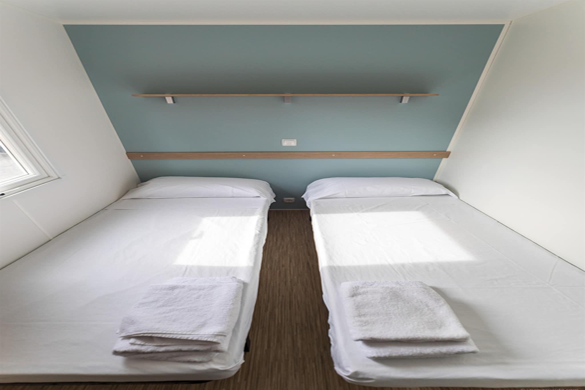 Beliggende på en fantastisk 70.000 m² familiecampingplads omgivet af hav og bjerge, tilbyder denne ejendom nem adgang ved siden af N-II (Km. 665), kun 1 km fra den pulserende by Calella, hjertet af Costa de Barcelona Maresme, og kun 40 km fra Barcelona. Denne rummelige bungalow kan rumme op til 6 personer, og byder på 3 komfortable soveværelser: et med dobbeltseng og to med enkeltsenge. Bungalowen er elegant indrettet i en enkel, moderne stil og tilbyder enten udsigt over bjergene eller havet. Der er eget badeværelse, opholds-/spisestue med fladskærms-tv med satellitkanaler samt fuldt udstyret tekøkken med mikrobølgeovn, køleskab og kogeplader. Gæsterne kan nyde en bred vifte af faciliteter på stedet, herunder to swimmingpools, en tennisbane, to paddlebaner og en multisportsbane (basketball/fodbold). Andre faciliteter omfatter bordtennis, et fodboldområde, en spillezone og en legeplads. I juli og august er der animationsaktiviteter for alle aldre. For nem adgang til pool og sportsområder tilbyder campingpladsen et lille "GUA-GUA" tog. Yderligere tjenester omfatter reception, bar/restaurant, købmand, vaskeri, sportsfaciliteter og gratis Wi-Fi (kun første billet). Sengelinned og håndklæder er tilgængelige mod et tillægsgebyr. Kæledyr er tilladt efter anmodning (undtagen farlige racer). Der kræves et depositum på 150 euro, og en turistskat på 0,66 EURO/person/nat gælder for gæster over 17. Indtjekning er kl. 16.00, og udtjekning er kl. 10.00.