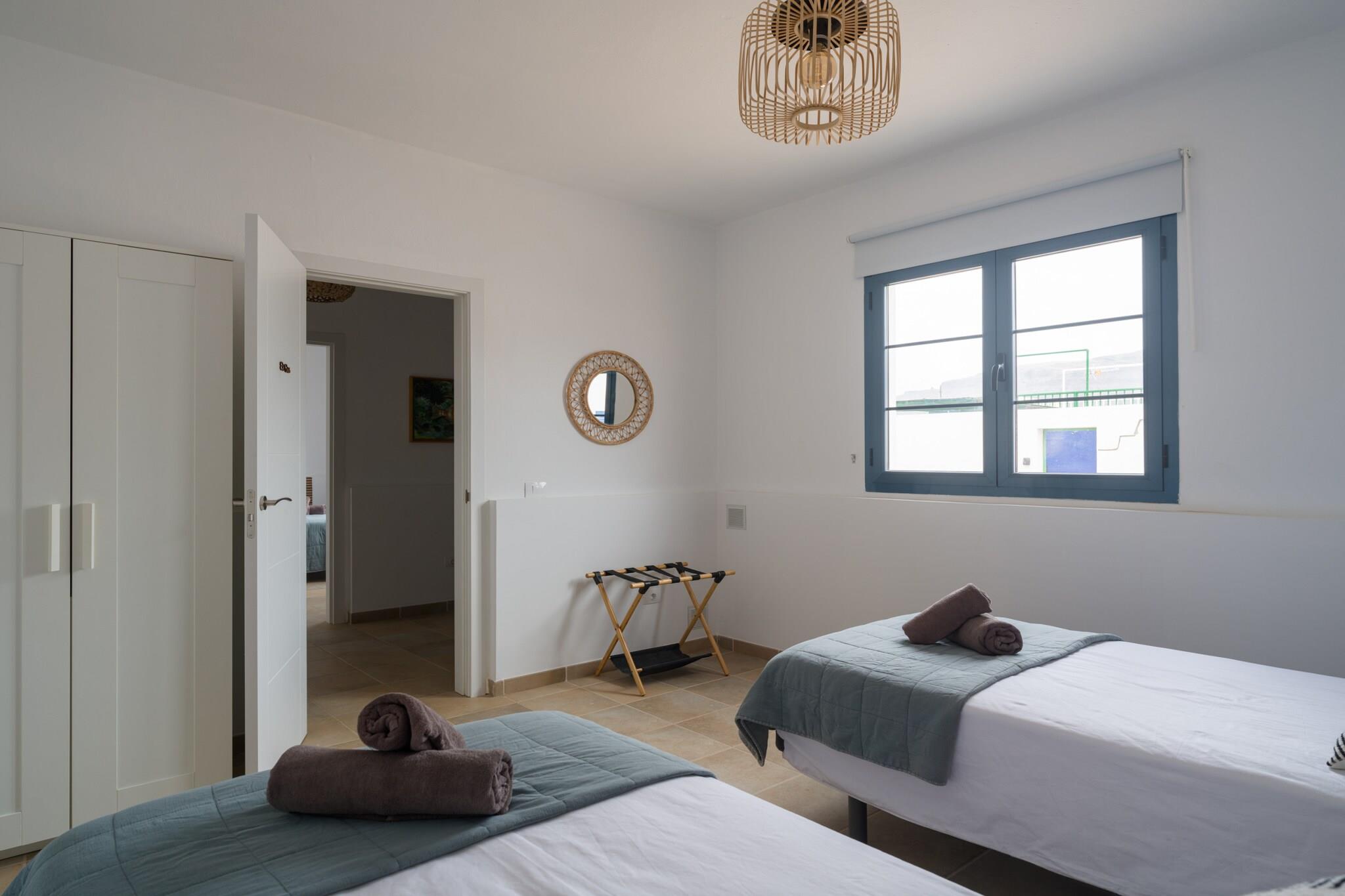 Beliggende i den rolige fiskerlandsby Caleta de Sebo, tilbyder dette rummelige hus på 163 m² varme og indbydende omgivelser for op til 8 gæster. Med fire komfortable soveværelser er det perfekt til familier eller grupper, der ønsker at nyde en fredelig ferie ved havet på den idylliske ø La Graciosa. Beliggende i en familievenlig zone og kun få skridt fra havet, byder huset på både plads og komfort. Indenfor finder du et hjemligt interiør med generøse fællesarealer, et tv, Wi-Fi, vaskemaskine, hårtørrer, strygejern og alt det nødvendige for et afslappende ophold. Det uafhængige køkken er fuldt udstyret med alt det nødvendige for at tilberede måltider derhjemme, herunder køleskab, ovn, mikroovn, fryser, opvaskemaskine, kaffemaskine, brødrister, kedel, juicer og komplet køkkenudstyr. Nyd morgenvandringer ved kysten, stille aftener i, eller udforsk charmen ved Caleta de Sebos ikke-asfalterede gader og afslappede ø-livsstil. Uanset om du planlægger en afslappende ferie eller et gruppeeventyr, er dette hjem en ideel base for at opdage den naturlige skønhed i La Graciosa.