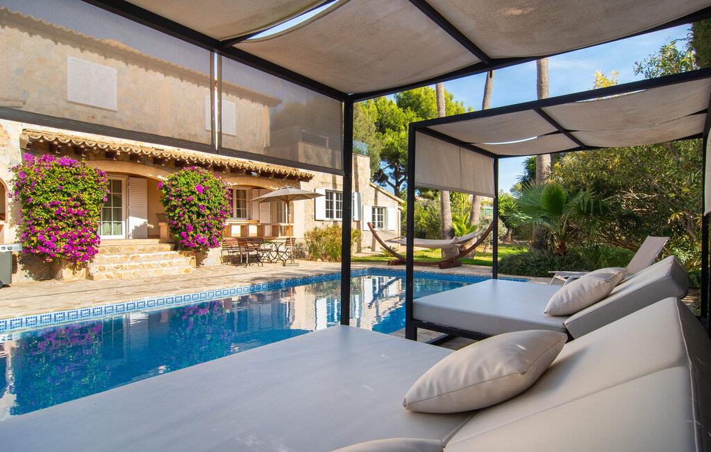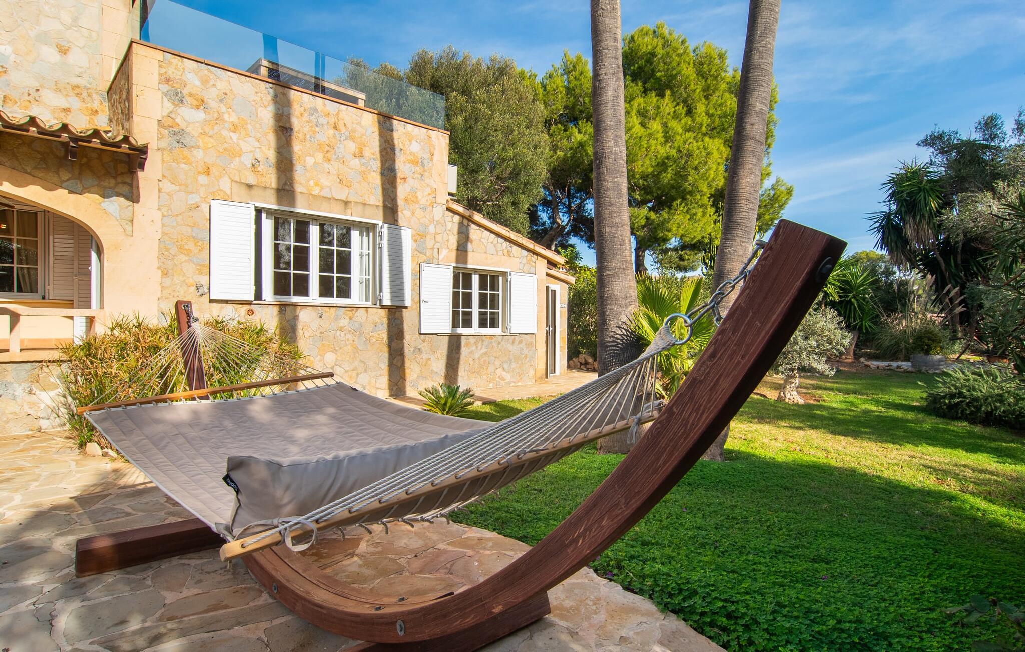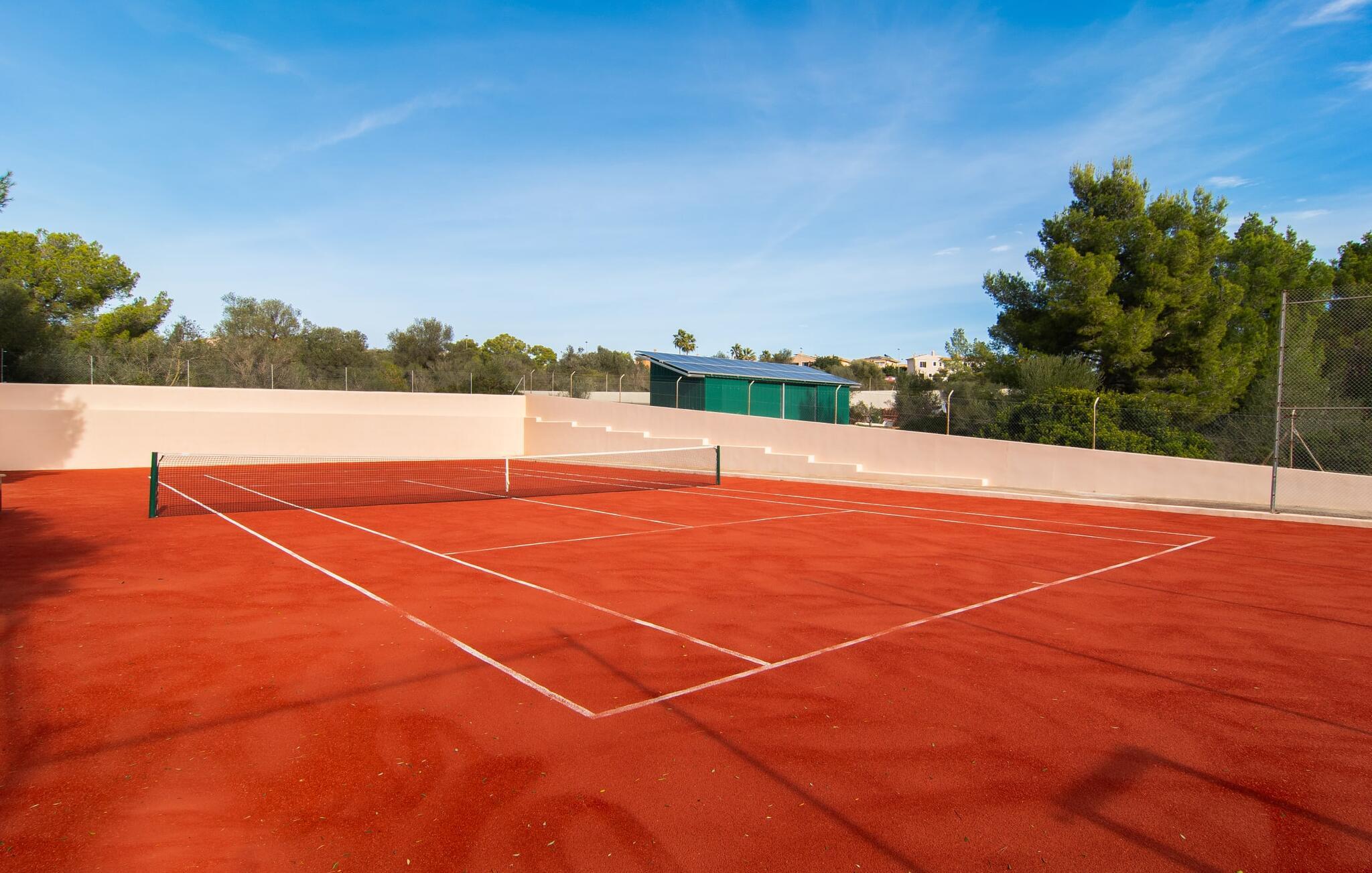 Den smukke naturstensvilla "Calimero" er omgivet af en frodig, ugeneret have. Velholdte græsplæner, skyggefulde områder og en pool inviterer til at blive hængende. Det er nemt at glemme, at I kun er 20 minutters kørsel fra øens hovedstad, Palma, når I slapper af i hængekøjen eller på en af de to Bali liggestole ved poolen. Et stort udendørs køkken, grill og pizzaovn er til rådighed. Måltider kan indtages enten i den hyggelige gårdhave eller på den overdækkede terrasse lige ved siden af huset. Feriehuset har desuden egen tennisbane, bowlingbane, bordtennisbord samt udendørs toilet og bruser ved poolen. Ved udformningen af de indvendige områder blev der lagt stor vægt på at skabe en hyggelig atmosfære og enkel elegance. Alle værelser er kendetegnet ved stilfulde møbler af høj kvalitet, afslappende farver og kærlig indretning. Spisestuen støder op til stuen og leder ind i køkkenet, som har en hyggelig spiseplads. Der er fire rummelige soveværelser til rådighed for afslapning om natten, hvoraf to har deres eget badeværelse. Et af soveværelserne med eget bad har separat adgang. Varme/kolde klimaanlæg i stue og soveværelser sikrer behagelige temperaturer både sommer og vinter. Villa "Calimero" er et yderst komfortabelt feriehus for op til 8 personer nær Palma året rundt. Villaen ligger i et roligt boligområde nær Mallorcas "keramiklandsby" Pòrtol og 20 minutter i bil fra Palma. Forskellige supermarkeder kan nås inden for 10 minutters kørsel. Omkring 10 km nordpå byder Serra de Tramuntana-bjergkæden (UNESCOs verdensarvssted) på adskillige vandremuligheder. De forskellige sandstrande i Palma-bugten kan nås på 20 – 25 minutter i bil.