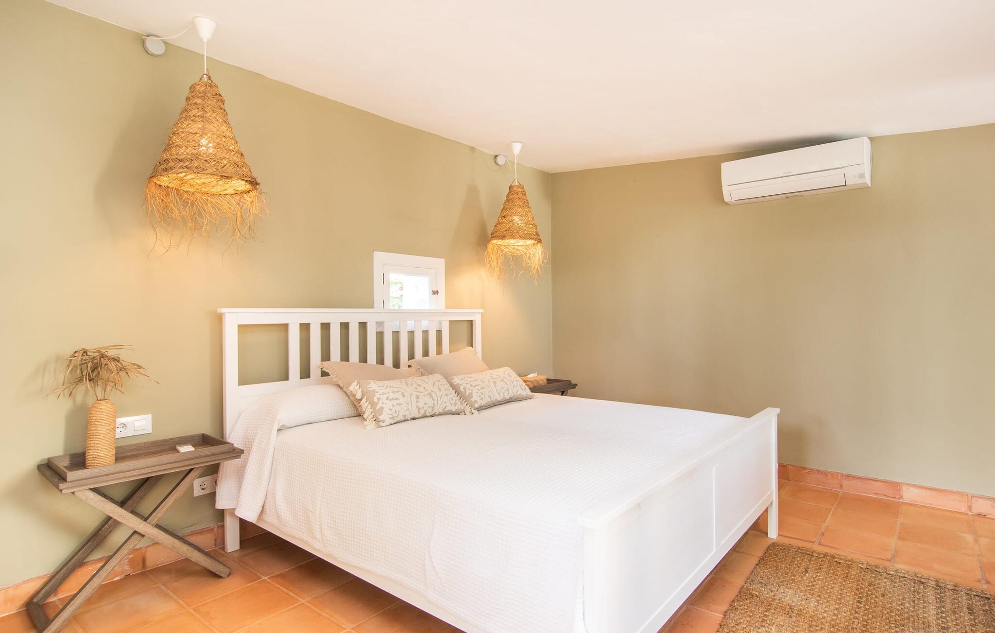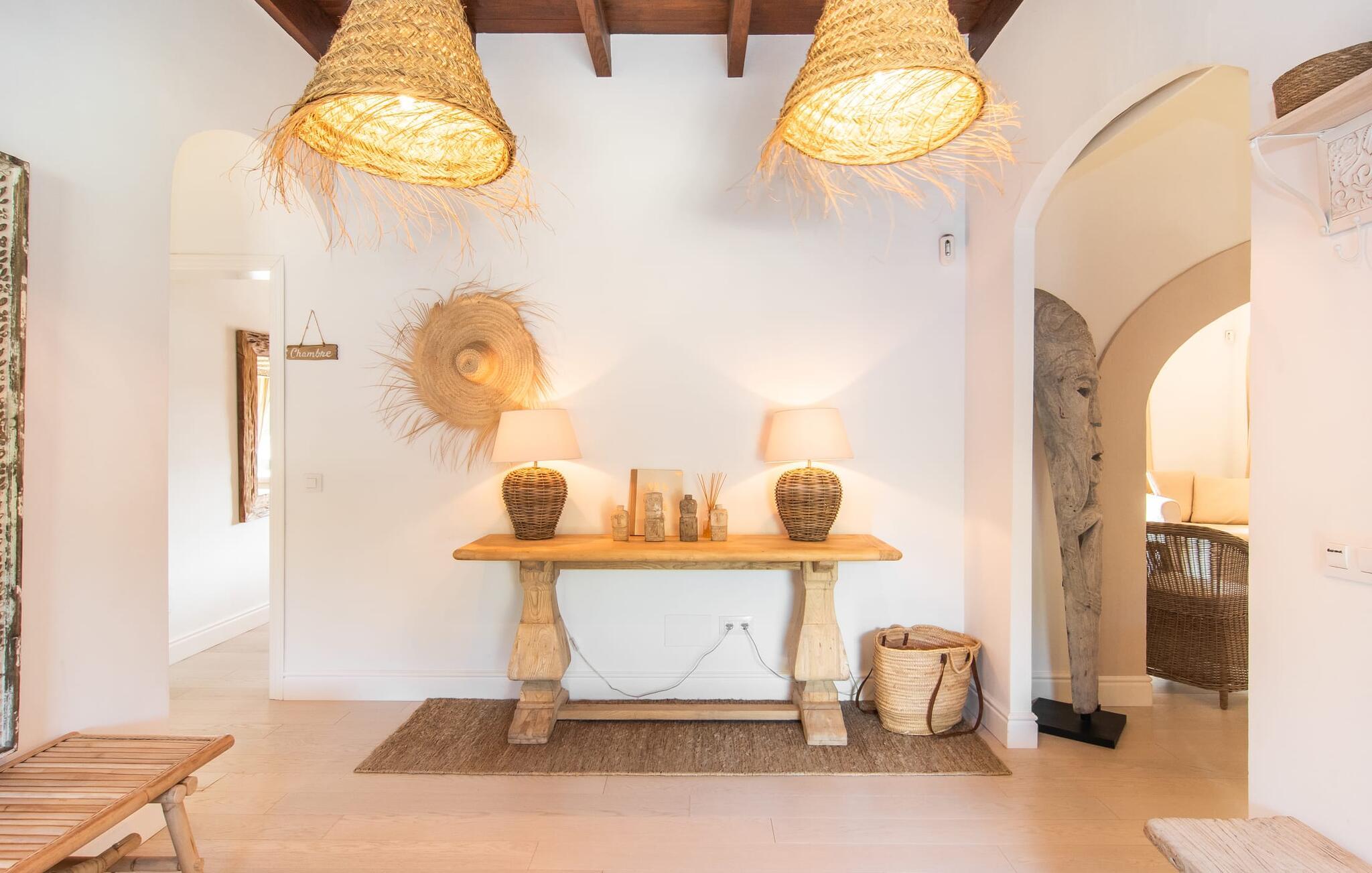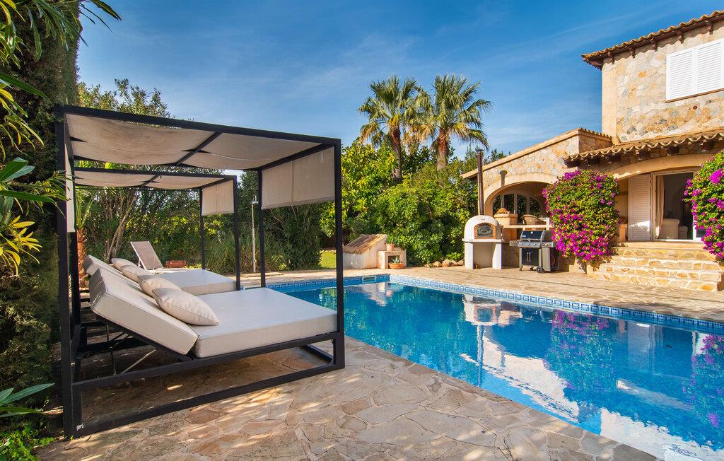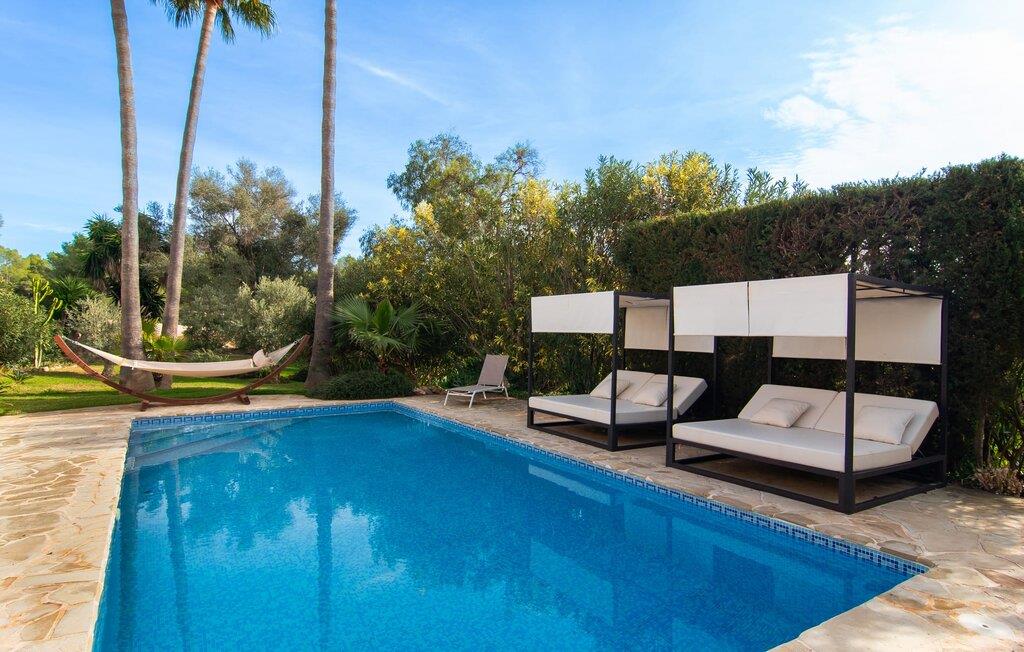 Den smukke naturstensvilla "Calimero" er omgivet af en frodig, ugeneret have. Velholdte græsplæner, skyggefulde områder og en pool inviterer til at blive hængende. Det er nemt at glemme, at I kun er 20 minutters kørsel fra øens hovedstad, Palma, når I slapper af i hængekøjen eller på en af de to Bali liggestole ved poolen. Et stort udendørs køkken, grill og pizzaovn er til rådighed. Måltider kan indtages enten i den hyggelige gårdhave eller på den overdækkede terrasse lige ved siden af huset. Feriehuset har desuden egen tennisbane, bowlingbane, bordtennisbord samt udendørs toilet og bruser ved poolen. Ved udformningen af de indvendige områder blev der lagt stor vægt på at skabe en hyggelig atmosfære og enkel elegance. Alle værelser er kendetegnet ved stilfulde møbler af høj kvalitet, afslappende farver og kærlig indretning. Spisestuen støder op til stuen og leder ind i køkkenet, som har en hyggelig spiseplads. Der er fire rummelige soveværelser til rådighed for afslapning om natten, hvoraf to har deres eget badeværelse. Et af soveværelserne med eget bad har separat adgang. Varme/kolde klimaanlæg i stue og soveværelser sikrer behagelige temperaturer både sommer og vinter. Villa "Calimero" er et yderst komfortabelt feriehus for op til 8 personer nær Palma året rundt. Villaen ligger i et roligt boligområde nær Mallorcas "keramiklandsby" Pòrtol og 20 minutter i bil fra Palma. Forskellige supermarkeder kan nås inden for 10 minutters kørsel. Omkring 10 km nordpå byder Serra de Tramuntana-bjergkæden (UNESCOs verdensarvssted) på adskillige vandremuligheder. De forskellige sandstrande i Palma-bugten kan nås på 20 – 25 minutter i bil.