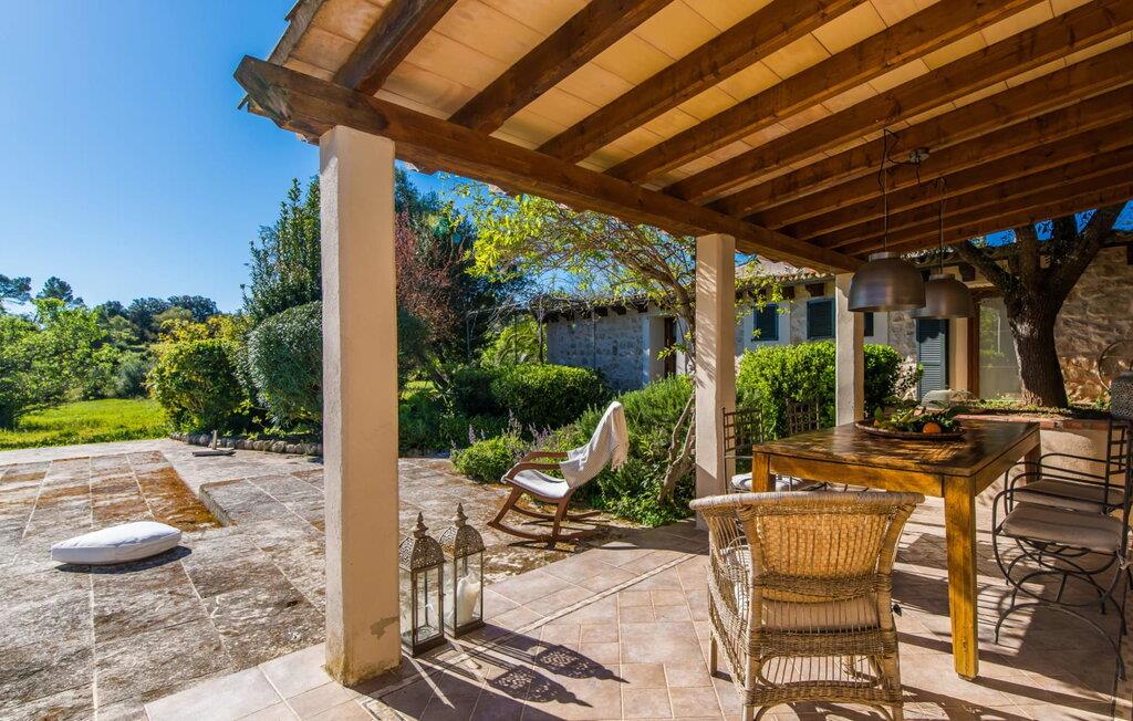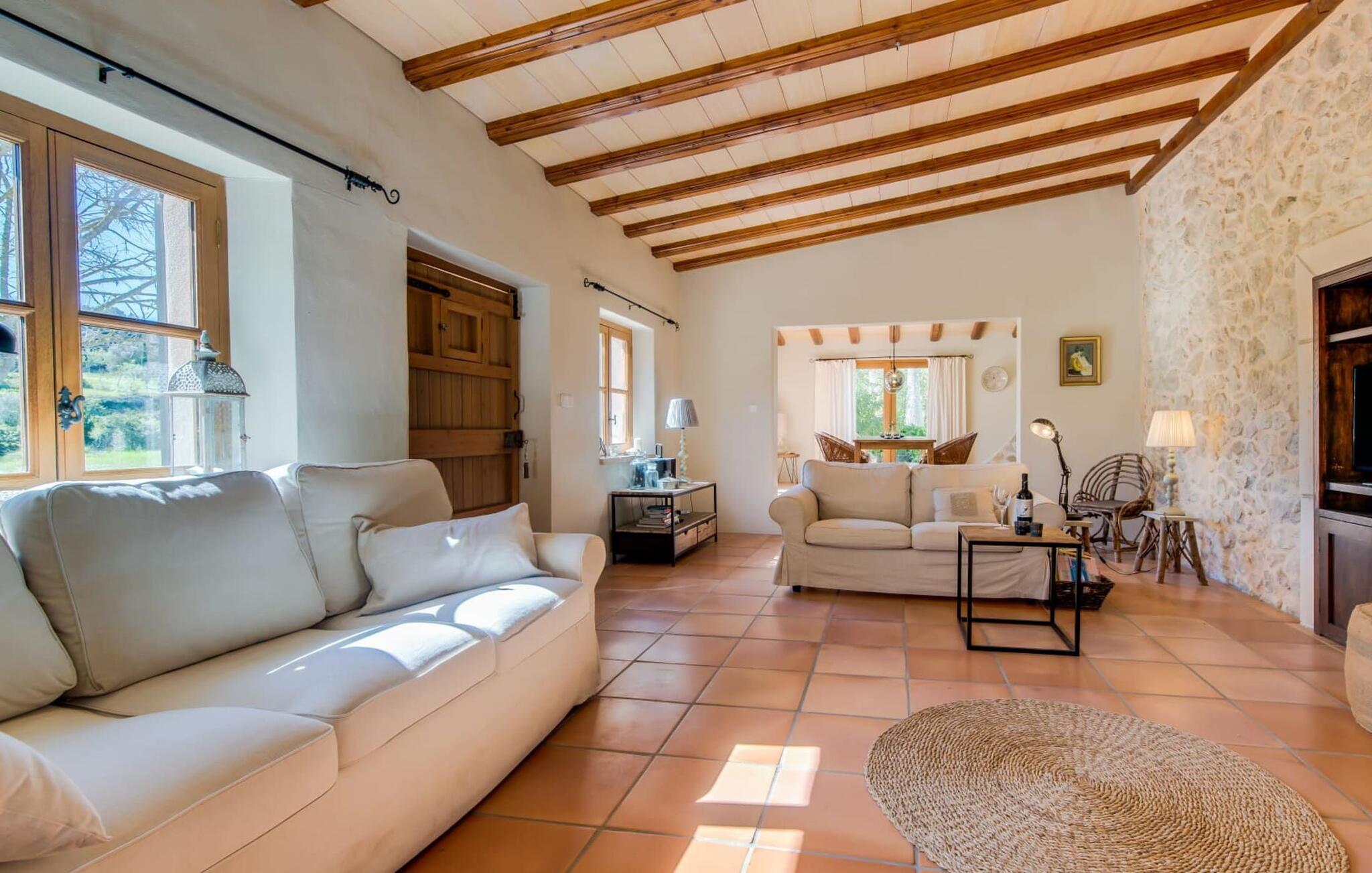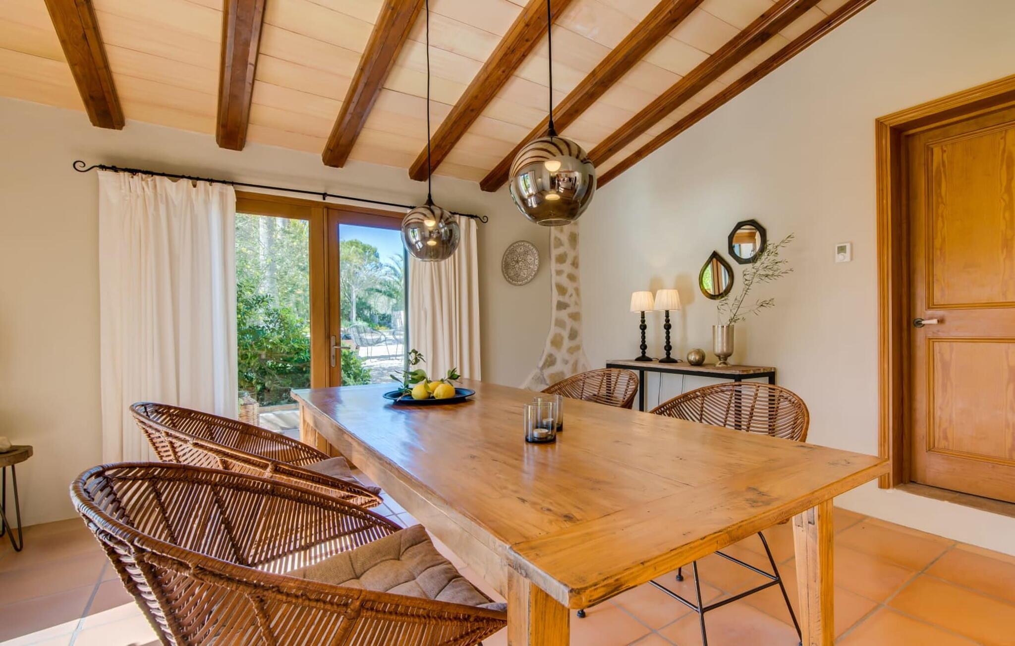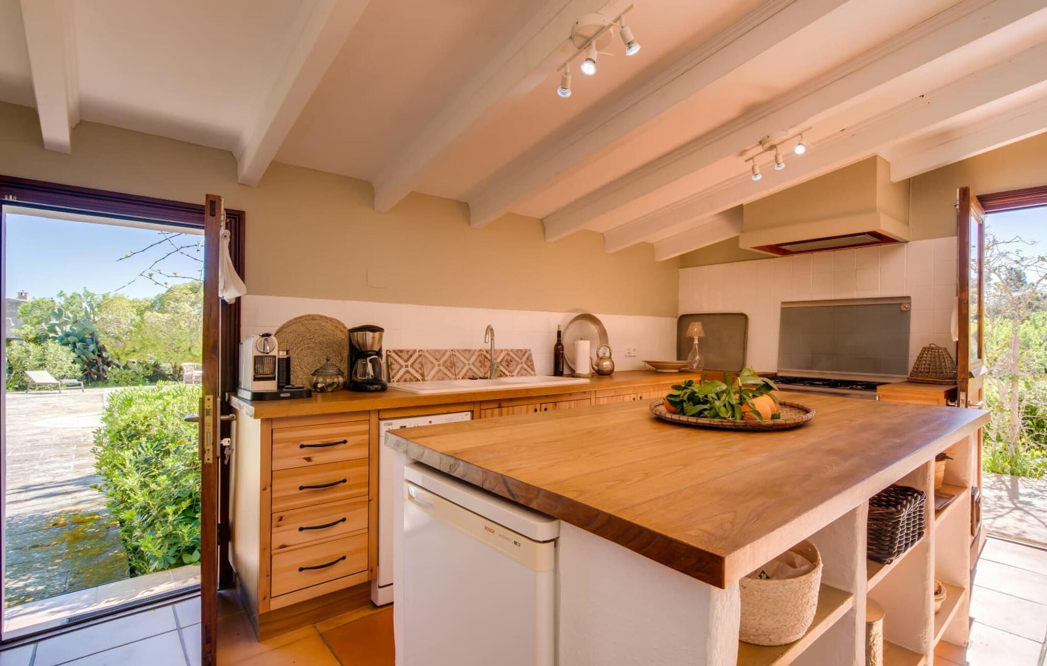 en rolig, ugeneret beliggenhed og midt i frodige grønne områder og uberørt natur finder I jeres skønne sommerhus, der straks vil forelske jer i. Leder I efter en autentisk mallorcansk atmosfære, er I kommet til det rette sted, da ejendommen er en bygning fra 1850, der er blevet nænsomt renoveret. Dette moderne feriehus blev oprindeligt brugt til landbrug og har en charmerende og rummelig have. Kun én ting venter jer her: ren afslapning. Gå en tur gennem haven og nyd duften af citroner i luften, prøv en af de saftige oliven eller figner, der hænger fra træerne, og tag en dyb indånding: det er feriesæson! Når middagsvarmen kommer, kan I tage en dukkert i den private pool, som lover at køle jer ned. Så skal I bare slappe af med en god læsning på en af de komfortable liggestole under parasollen. Om aftenen inviterer grillen til at tilbringe dagen helt udendørs. Når I kommer ind i huset fra en af terrasserne, vil I straks føle jer hjemme takket være den charme og autenticitet, der gennemsyrer alle rum. Varme terracottagulve, gyldenbrunt iroko-træ, synligt murværk lavet af stenbrud: dette hus har stil. Under renoveringen blev der sørget for kun at bruge udsøgte møbler og inventar i huset. Den har et minimalistisk design, som passer perfekt til kombinationen af hvide og cremefarvede toner og det honningfarvede træ, der er at finde i hele huset. I vil med det samme stryge bordpladen på det store spisebord af smukt træ for at mærke det. I den hyggelige opholdsstue er der en kæmpe åben pejs til hyggelige aftener i køligere temperaturer. Der er også et tv med tysk satellitmodtagelse. Køkkenet er meget hyggeligt takket være det let skrå loft. Den har en opvaskemaskine, en elkedel og forskellige kaffemaskiner og alt hvad et selvforplejningshjerte begærer. Soveværelserne er også indrettet i bløde pastelfarver og har hver deres badeværelse. Fincaen ligger i centrum af øen, kun 30 km fra hovedstaden Palma. Så centralt og alligevel med en fantastisk ugenert beliggenhed byder det på en lang række muligheder for fritidsaktiviteter uden for den smukke ejendom. Især vandrefans kan glæde sig, for det lille ferieparadis ligger under det markante Puig de Randa-bjerg, der rejser sig over det mallorcanske lavland og minder en del om Sydafrikas Taffelbjerg. Under stigningen har I mulighed for at besøge tre klostre, der ligger i forskellig højde. Når I når toppen, vil I blive belønnet med en spektakulær udsigt over Tramuntana-bjergene. Strande som Caló de Sant Antoni eller Es Trenc kan nemt nås med lejebil, mindre end 30 km væk. Den paradisiske villa "Calmita" ligger midt i et spektakulært landskab nær det markante Puig de Randa-bjerg. Den lille by Montuiri, cirka 4 miles væk, har alt hvad I behøver med bagerier, supermarkeder og et vidunderligt marked, der tilbyder en bred vifte af friske, lokale råvarer. De populære strande Platja de Palma og Platja de Sa Rapita ligger omkring 19 km væk, men flere andre smukke bugter som Es Trenc kan også nemt nås med lejebil.