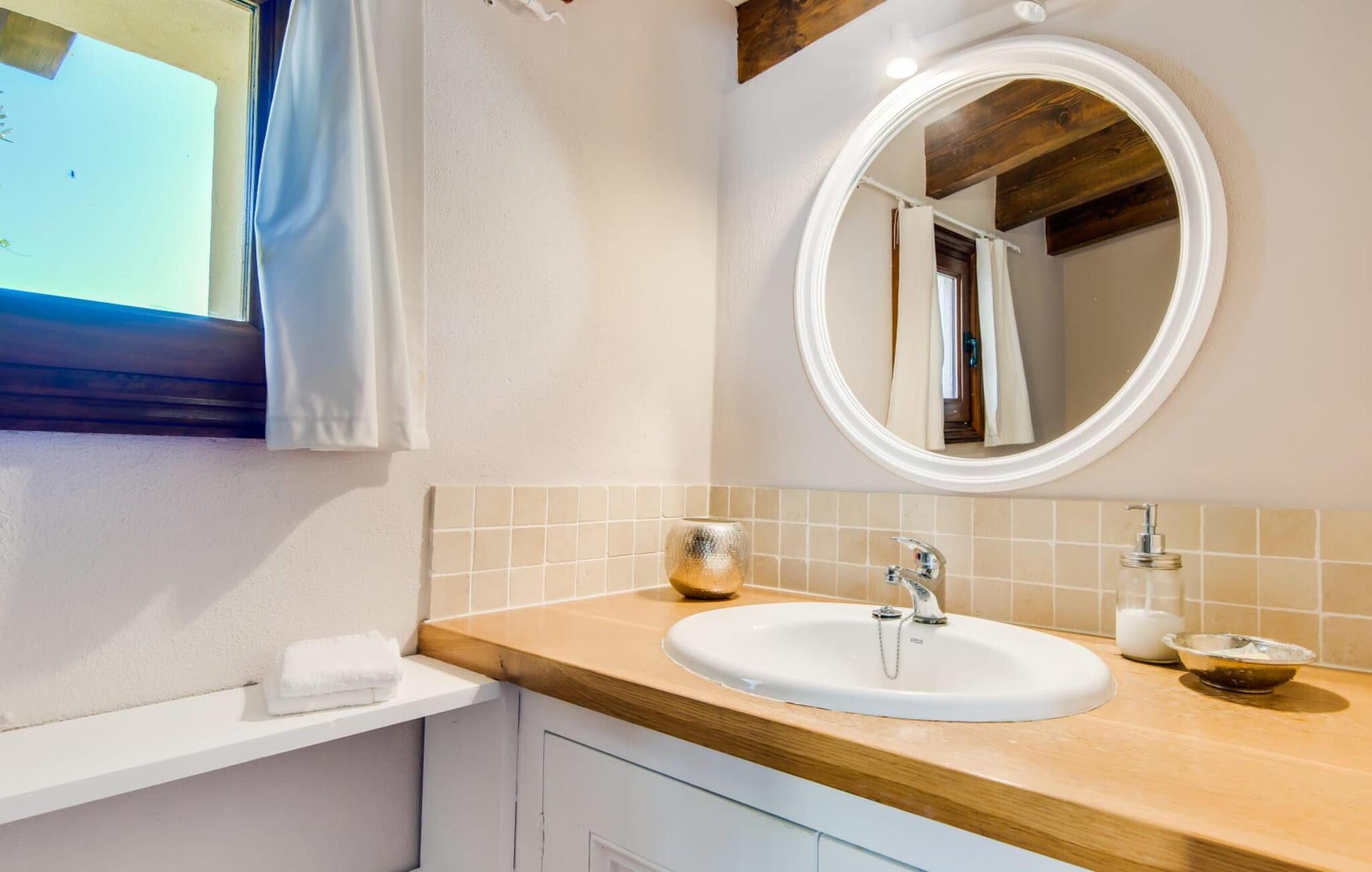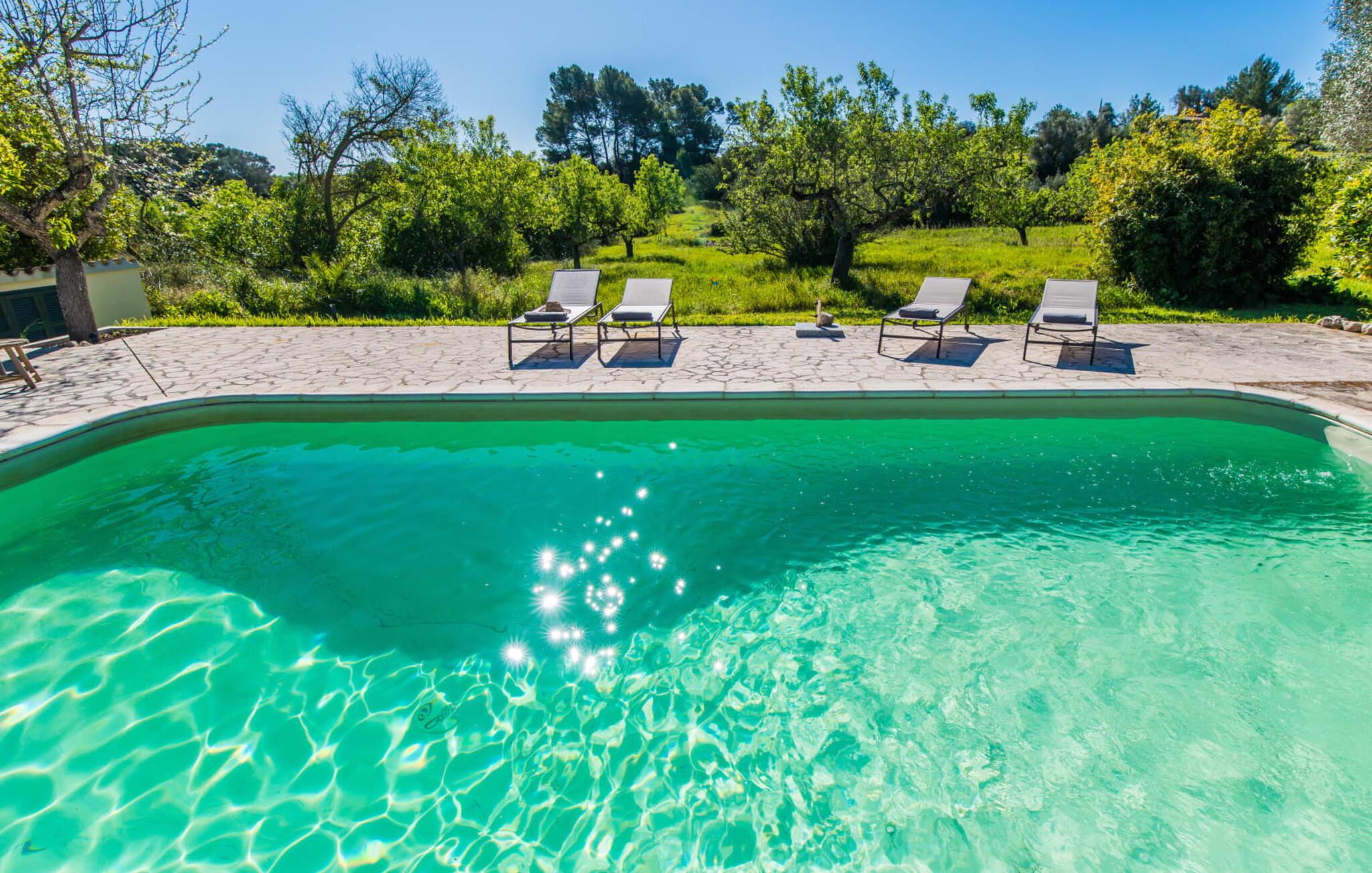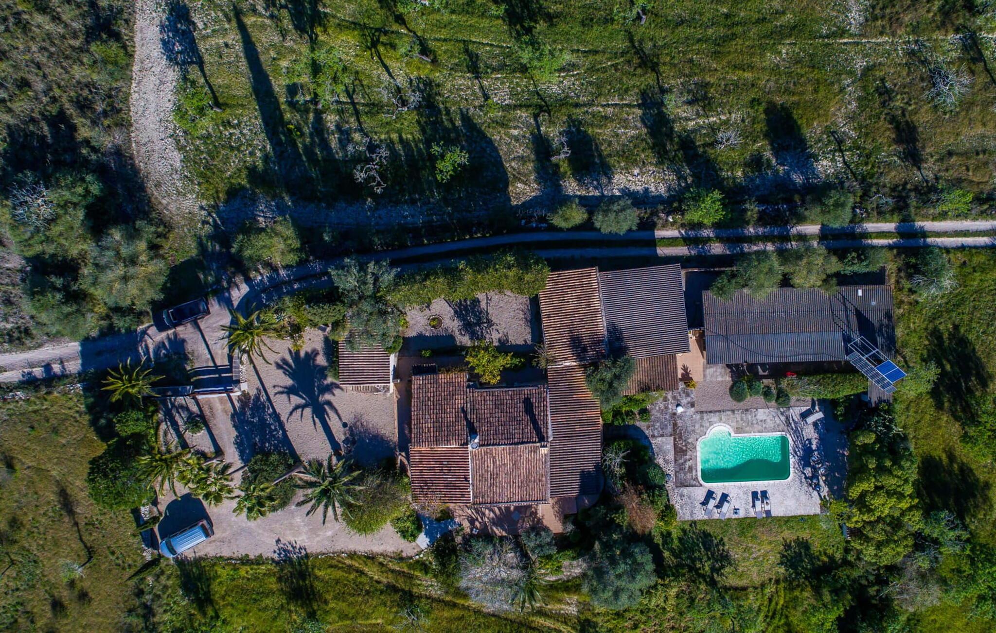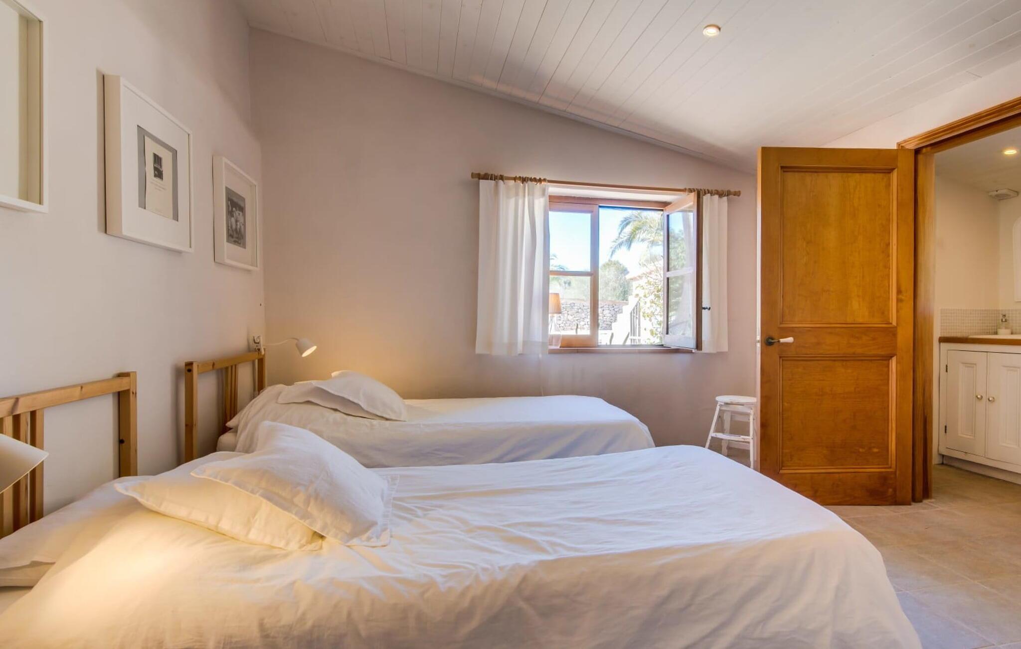 en rolig, ugeneret beliggenhed og midt i frodige grønne områder og uberørt natur finder I jeres skønne sommerhus, der straks vil forelske jer i. Leder I efter en autentisk mallorcansk atmosfære, er I kommet til det rette sted, da ejendommen er en bygning fra 1850, der er blevet nænsomt renoveret. Dette moderne feriehus blev oprindeligt brugt til landbrug og har en charmerende og rummelig have. Kun én ting venter jer her: ren afslapning. Gå en tur gennem haven og nyd duften af citroner i luften, prøv en af de saftige oliven eller figner, der hænger fra træerne, og tag en dyb indånding: det er feriesæson! Når middagsvarmen kommer, kan I tage en dukkert i den private pool, som lover at køle jer ned. Så skal I bare slappe af med en god læsning på en af de komfortable liggestole under parasollen. Om aftenen inviterer grillen til at tilbringe dagen helt udendørs. Når I kommer ind i huset fra en af terrasserne, vil I straks føle jer hjemme takket være den charme og autenticitet, der gennemsyrer alle rum. Varme terracottagulve, gyldenbrunt iroko-træ, synligt murværk lavet af stenbrud: dette hus har stil. Under renoveringen blev der sørget for kun at bruge udsøgte møbler og inventar i huset. Den har et minimalistisk design, som passer perfekt til kombinationen af hvide og cremefarvede toner og det honningfarvede træ, der er at finde i hele huset. I vil med det samme stryge bordpladen på det store spisebord af smukt træ for at mærke det. I den hyggelige opholdsstue er der en kæmpe åben pejs til hyggelige aftener i køligere temperaturer. Der er også et tv med tysk satellitmodtagelse. Køkkenet er meget hyggeligt takket være det let skrå loft. Den har en opvaskemaskine, en elkedel og forskellige kaffemaskiner og alt hvad et selvforplejningshjerte begærer. Soveværelserne er også indrettet i bløde pastelfarver og har hver deres badeværelse. Fincaen ligger i centrum af øen, kun 30 km fra hovedstaden Palma. Så centralt og alligevel med en fantastisk ugenert beliggenhed byder det på en lang række muligheder for fritidsaktiviteter uden for den smukke ejendom. Især vandrefans kan glæde sig, for det lille ferieparadis ligger under det markante Puig de Randa-bjerg, der rejser sig over det mallorcanske lavland og minder en del om Sydafrikas Taffelbjerg. Under stigningen har I mulighed for at besøge tre klostre, der ligger i forskellig højde. Når I når toppen, vil I blive belønnet med en spektakulær udsigt over Tramuntana-bjergene. Strande som Caló de Sant Antoni eller Es Trenc kan nemt nås med lejebil, mindre end 30 km væk. Den paradisiske villa "Calmita" ligger midt i et spektakulært landskab nær det markante Puig de Randa-bjerg. Den lille by Montuiri, cirka 4 miles væk, har alt hvad I behøver med bagerier, supermarkeder og et vidunderligt marked, der tilbyder en bred vifte af friske, lokale råvarer. De populære strande Platja de Palma og Platja de Sa Rapita ligger omkring 19 km væk, men flere andre smukke bugter som Es Trenc kan også nemt nås med lejebil.