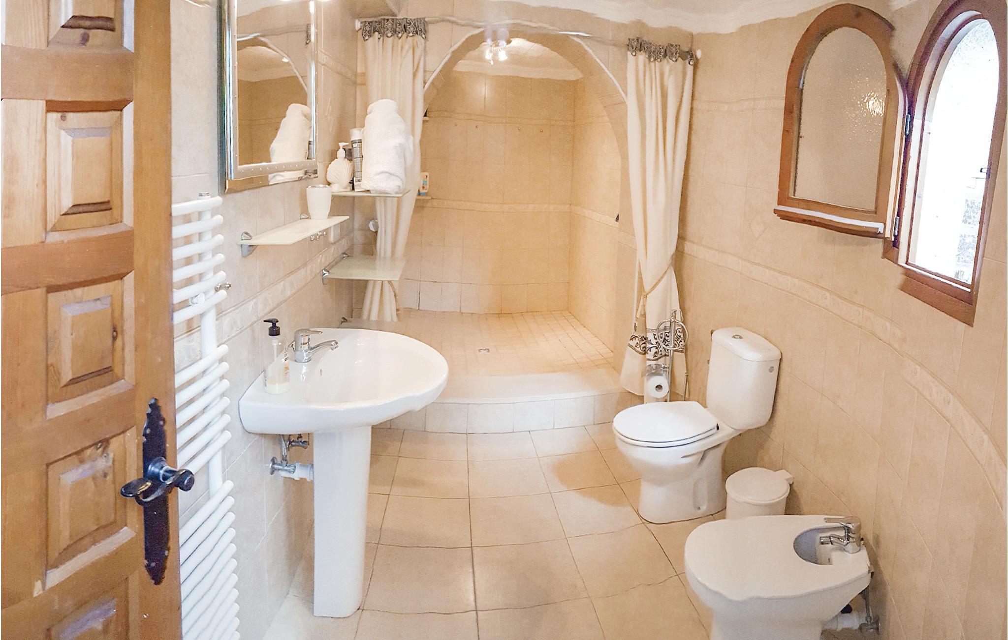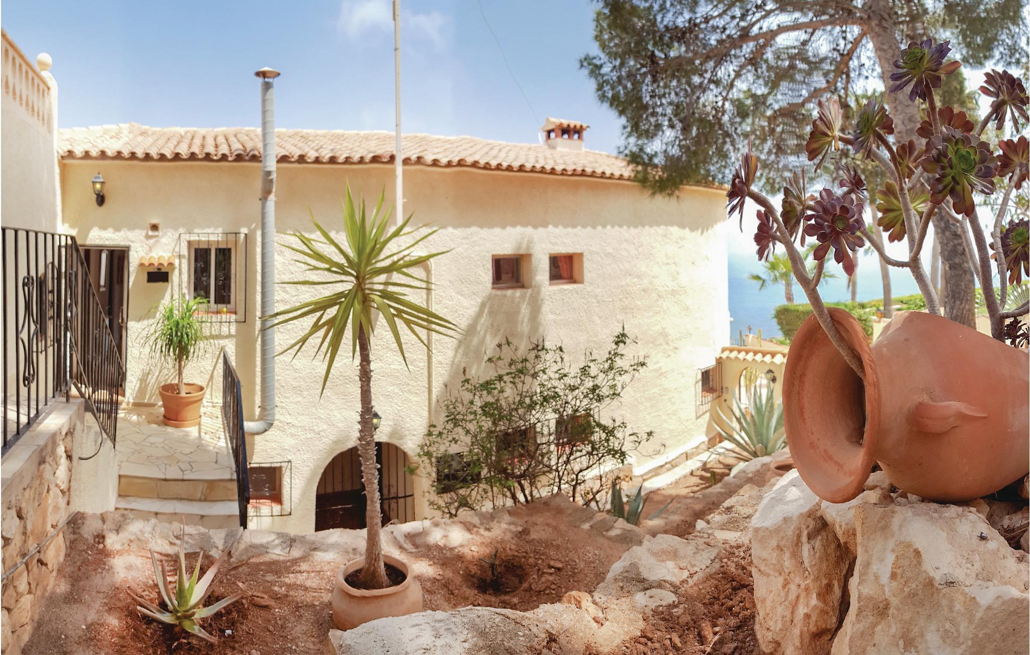 Nyd den fabelagtige panoramaudsigt ud over havet og Penon de Ifach fra dette store hus, som ligger på en rolig, blind vej i Maryvilla. Det består af separate boliger, hvilket også gør huset attraktivt for flere familier, der holder ferie sammen. På 1. sal finder I tre soverum, et bad, et køkken og en stue. Stueetagen, der ligger i niveau med swimmingpoolen, rummer to boligenheder med hver et soverum, en stue, et bad og et køkken. Kælderetagen består af to soverum, et bad samt et køkken i åben forbindelse med stuen. Huset er hyggeligt og rustikt indrettet. Ved den skønne swimmingpool er der rigelig plads, hvor I kan solbade samt et hyggeligt hjørne, hvor I kan nyde de fælles grillaftener. Der er gode tennisbaner i umiddelbar nærhed, og den nærmeste golfplads ligger blot 1.5 km. væk fra huset. Der tilbydes forskellige sejlture fra havnen i Calpe, og om aftenen afholdes der fiskeaktioner på havnen. Og sidst men ikke mindst er fiskerestauranterne ved havnen selvfølgelig også altid et besøg værd. Smag også på den spanske nationalret paella. Calpe har en meget fin sandstrand, men nogle steder er der dog også klipper, som I skal være opmærksomme på. Derudover er det oplagt at se det spændende saltmine-naturreservatet i området og at tage på ture rundt i hele Costa Blanca-regionen. I januar og februar - når Mellemeuropa er sneklædt - blomstrer mandel- og appelsintræerne i Costa Blanca, så på denne tid af året er det bestemt også værd at besøge regionen.