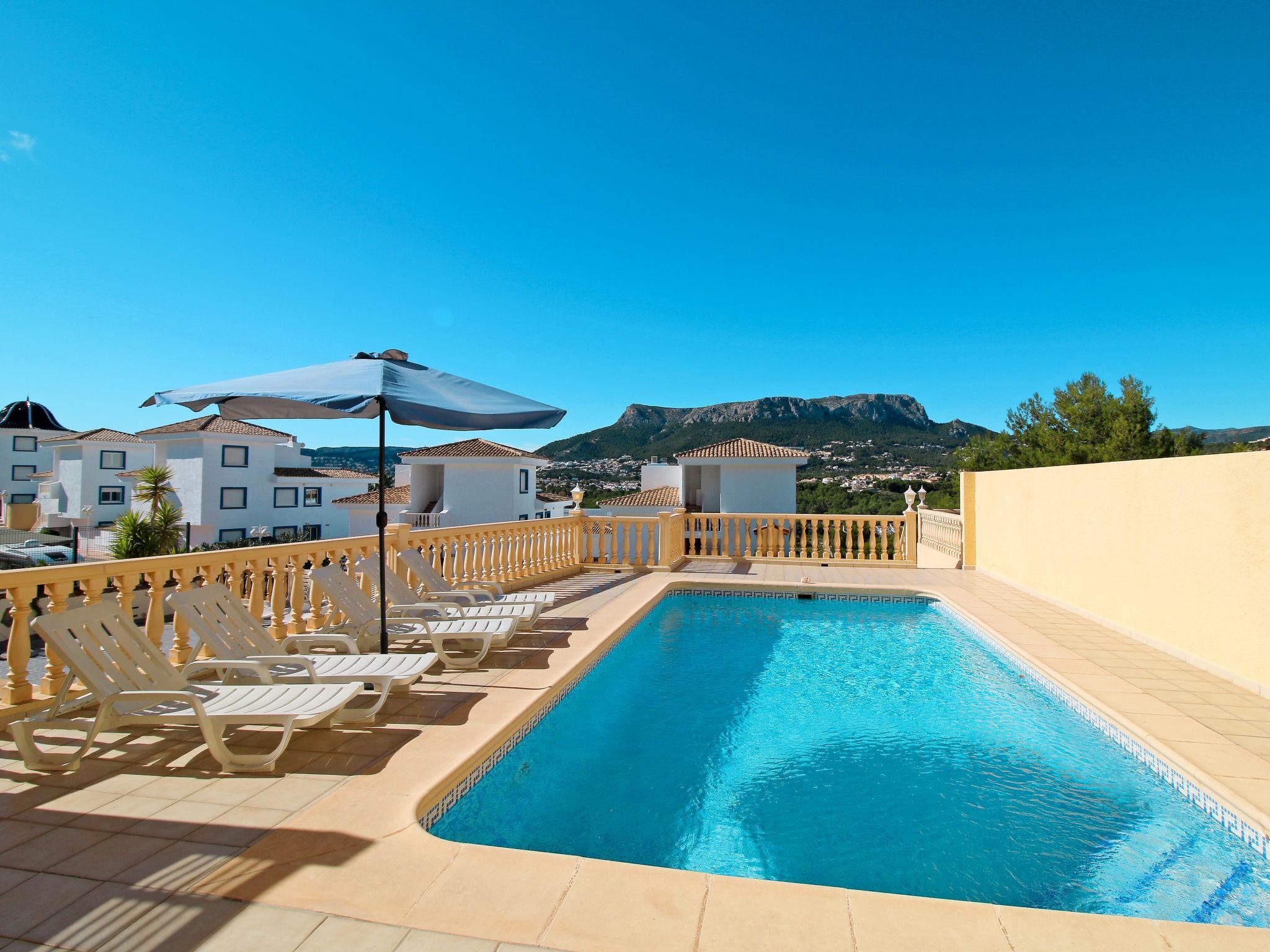 Casanova 1 km from Calpe: Cosy, comfortable villa "Altamar", 2 storeys. In the district of Casanova 2 km from the centre of Calpe, 60 km from the centre of Alicante, 120 km from the centre of Valencia, on a slope, 2.3 km from the sea, 2.3 km from the beach. Private: property 550 m2 (fenced) with wildlife garden, swimming pool angular (8 x 4 m, seasonal availability: 01.Jan. - 31.Dec.). Outdoor shower, parking (for 3 cars) on the premises. Supermarket 1.8 km, restaurant 1.4 km, bus stop 350 m, sandy beach "Playa del Arenal" 2.3 km. Tennis 1.4 km. Nearby attractions: Parque de atracciones Terra Mítica 35 km, Parque acuático Aqualandia 25 km. Hiking paths: Parque natural Peñon de Ifach 3 km.
