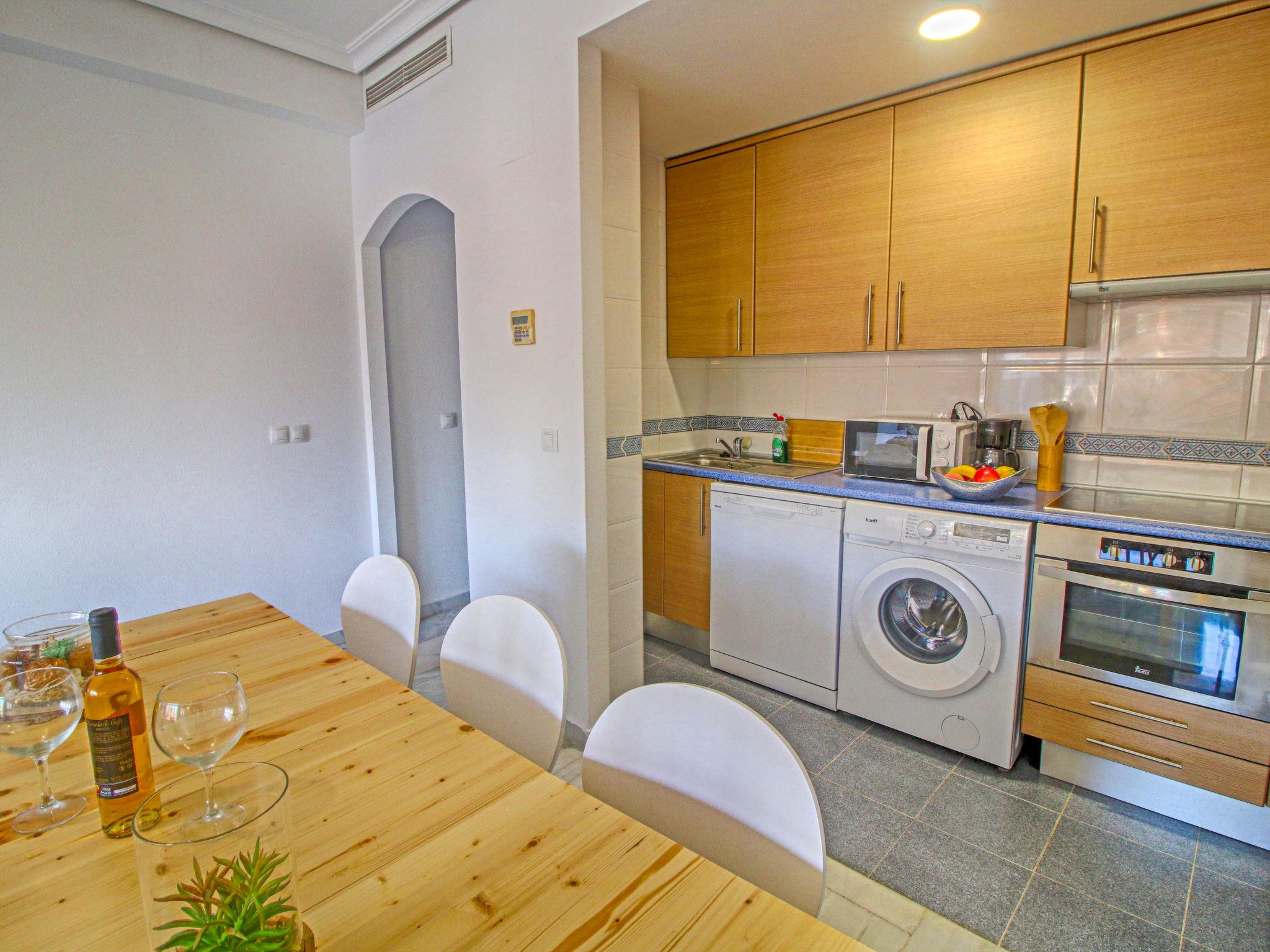 Calpe: Beautiful apartment block "Calpe Bay", 4 storeys. 400 m from the centre of Centro Historico, in a central position, 700 m from the sea, 700 m from the beach. For shared use: swimming pool (20 x 5 m, seasonal availability: 15.May. - 30.Sep.) with internal staircase. Children's pool, outdoor shower. In the house: lift. Shop 100 m, supermarket 170 m, restaurant 50 m, café 20 m, pedestrian zone 80 m, 5 minute walk to the centre, bus stop 50 m, sandy beach "Playa Arenal" 700 m. Sports harbour 3 km, marina 3 km, tennis 1.8 km. Nearby attractions: Aqualandia, Mundomar, Terra Mítica, Terra Natura, Benidorm Palace (Benidorm), Les Fonts de l'Algar. The owner does not accept any youth groups.